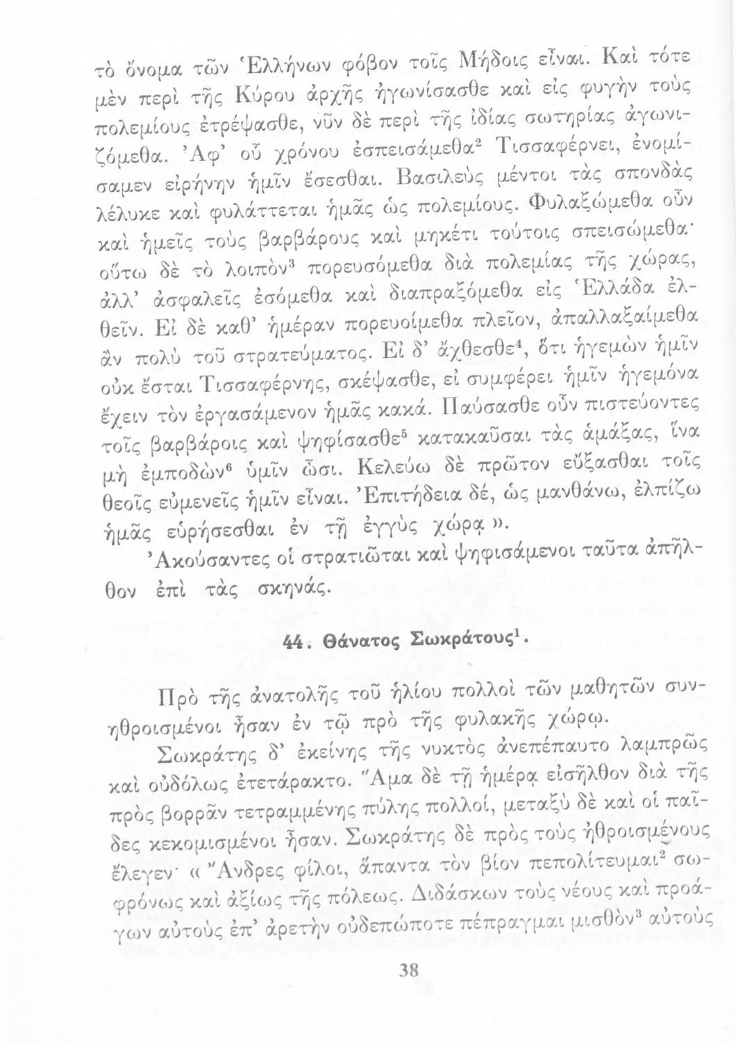 Σχολικό Εγχειρίδιο Αρχαίων Ελληνικών που περιλαμβάνει κείμενα προσαρμοσμένα στη διδασκαλία των γραμματικών και συντακτικών φαινομένων, και ερμηνευτικές και λεξιλογικές σημειώσεις. Φέρει το σύμβολο της ...