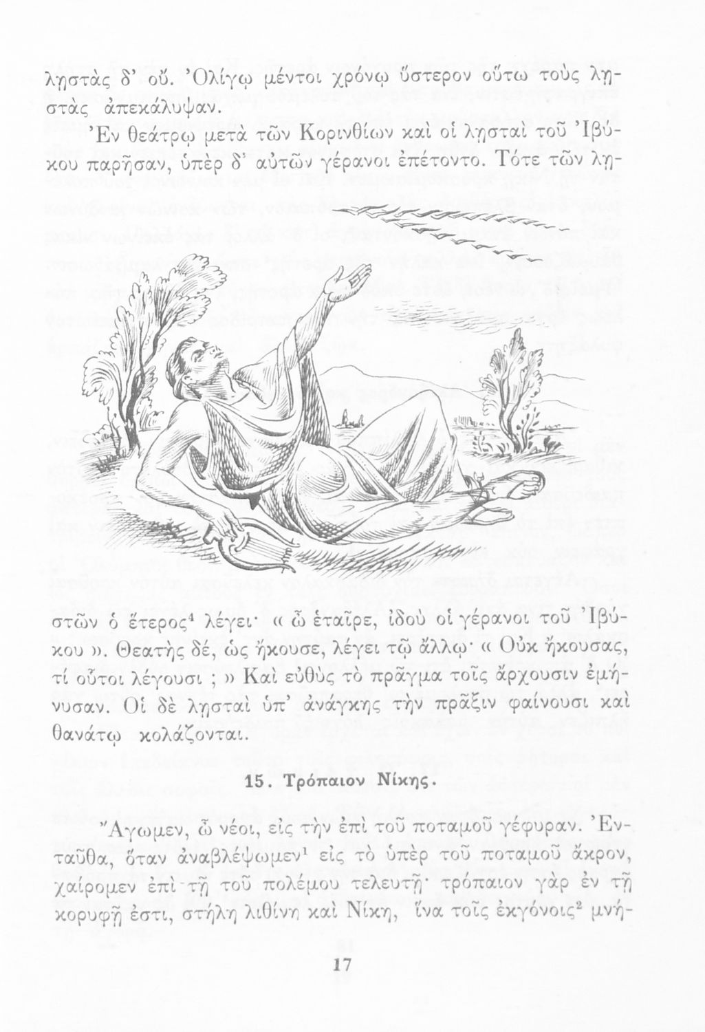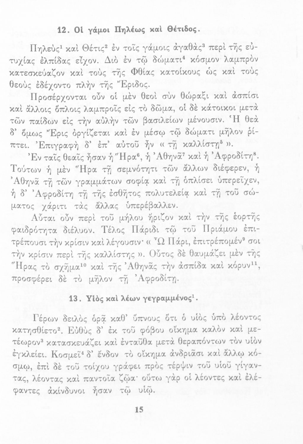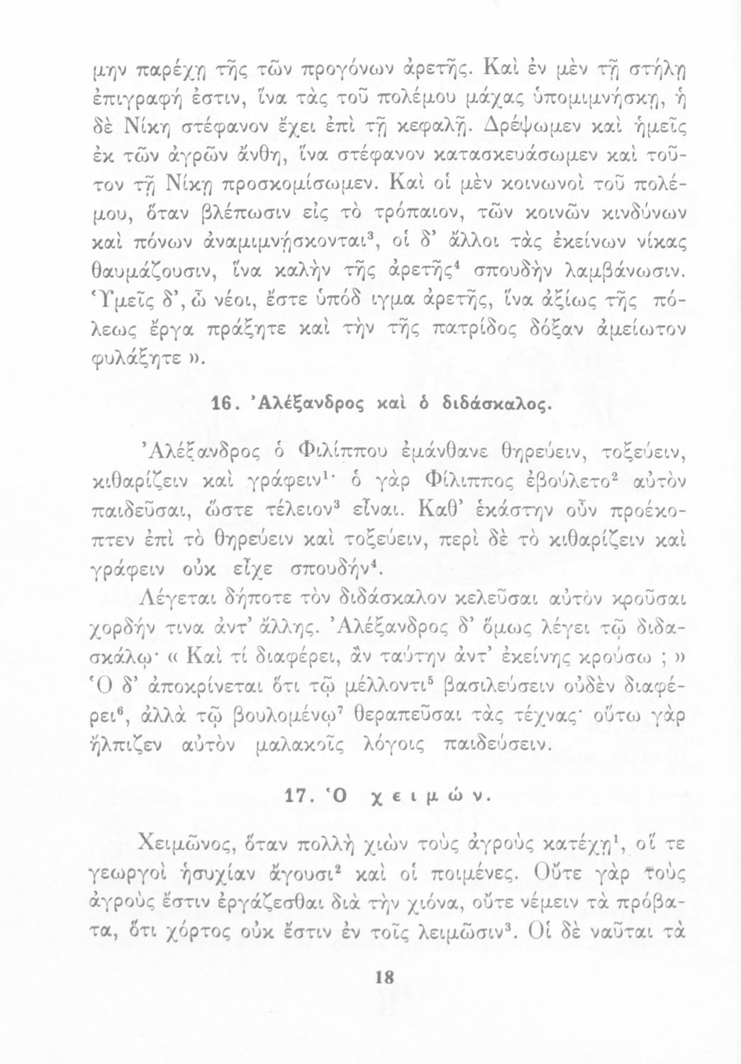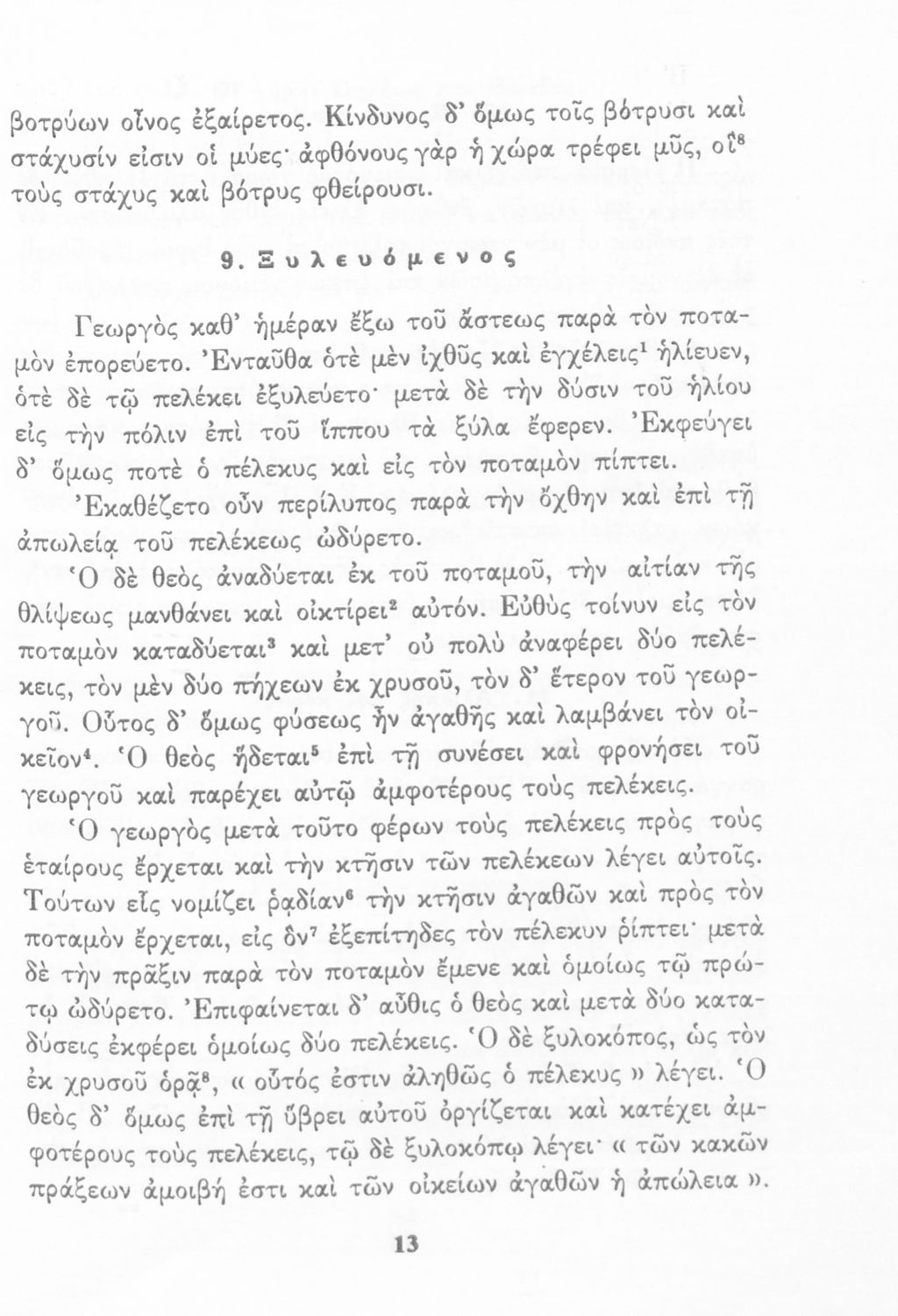 Σχολικό Εγχειρίδιο Αρχαίων Ελληνικών Α' και Β΄ Γυμνασίου που περιλαμβάνει κείμενα προσαρμοσμένα στη διδασκαλία των γραμματικών και συντακτικών φαινομένων, και ερμηνευτικές και λεξιλογικές σημειώσεις. Φέρει το σύμβολο της δικτατορίας.