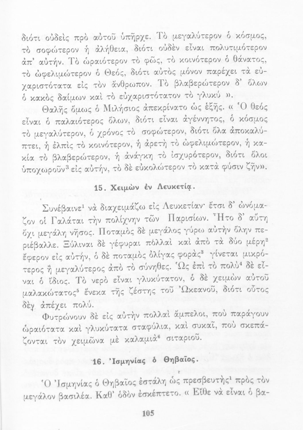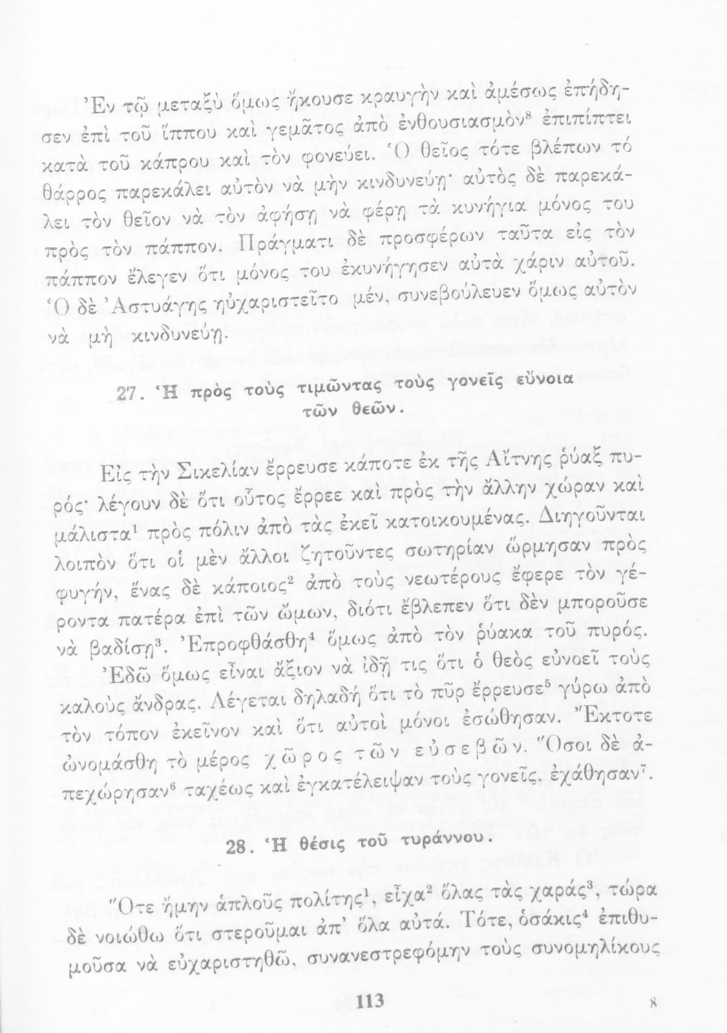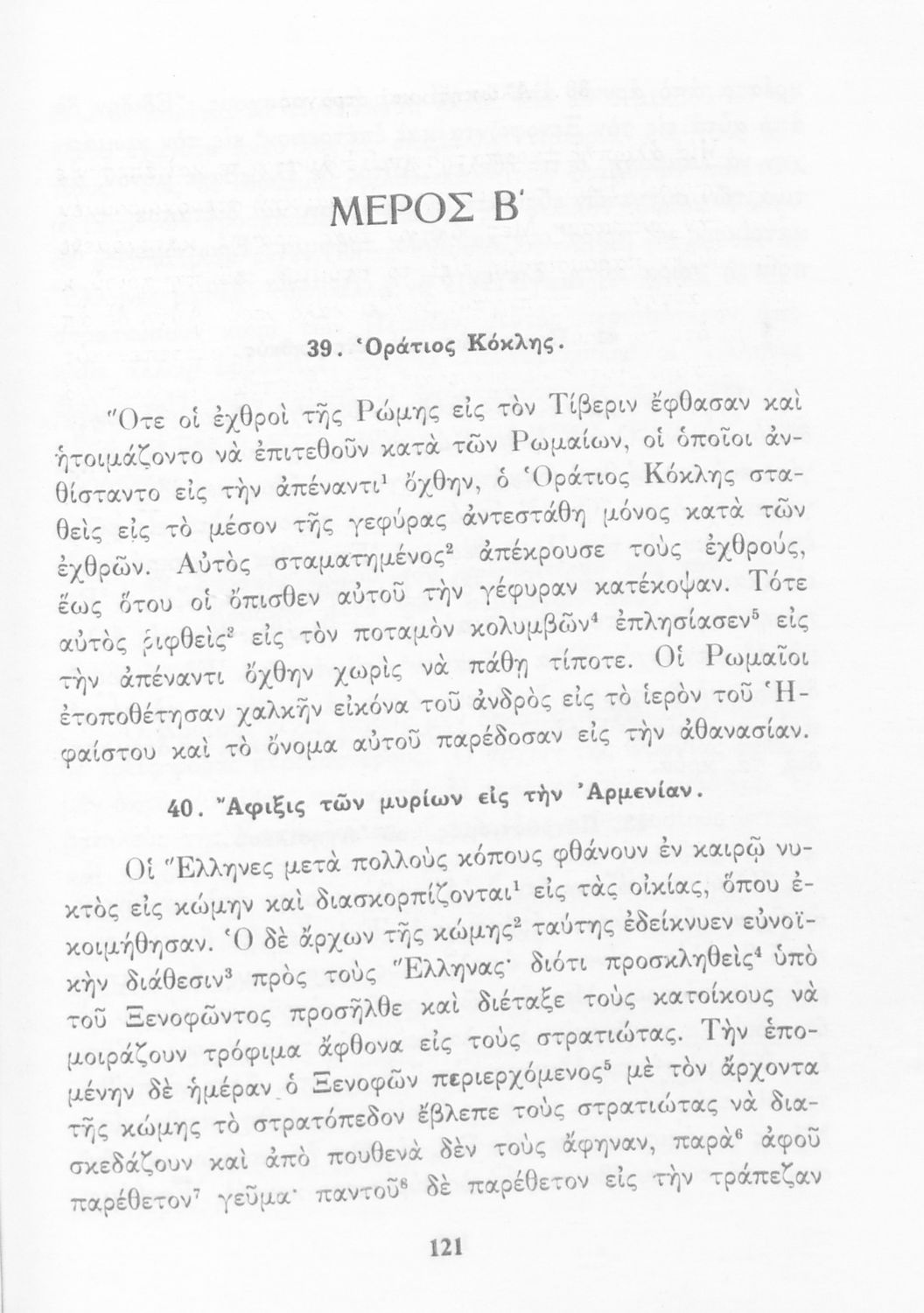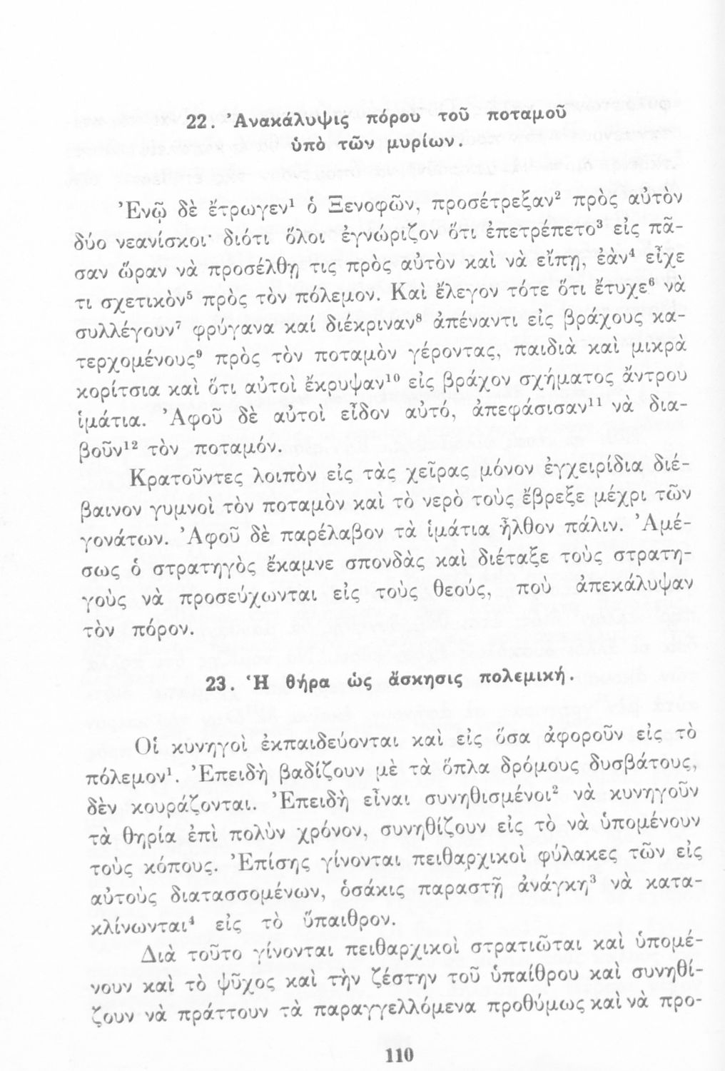 Σχολικό Εγχειρίδιο Αρχαίων Ελληνικών Α' και Β΄ Γυμνασίου που περιλαμβάνει κείμενα προσαρμοσμένα στη διδασκαλία των γραμματικών και συντακτικών φαινομένων, και ερμηνευτικές και λεξιλογικές σημειώσεις.