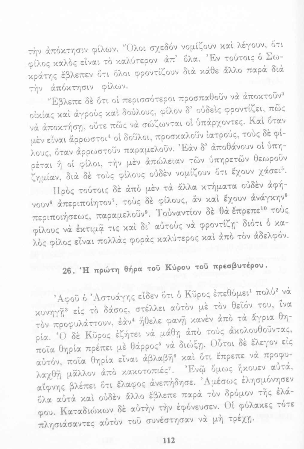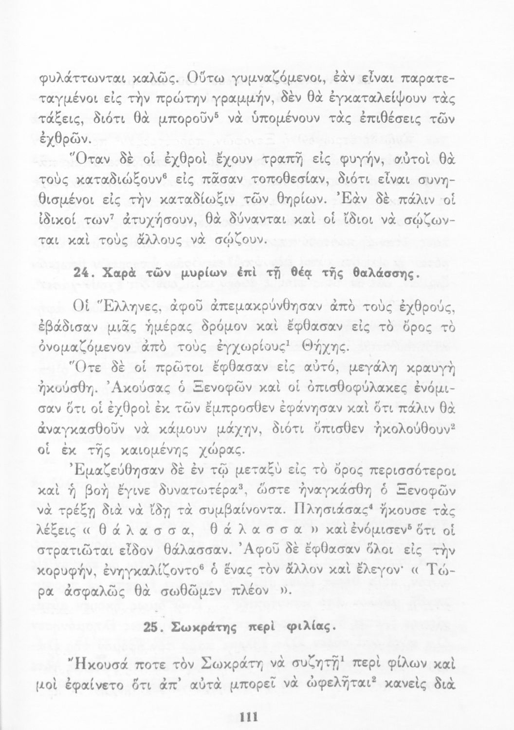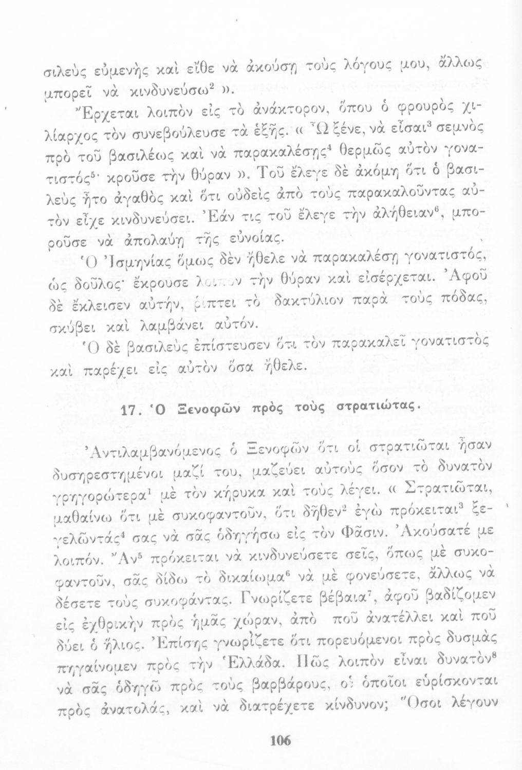 Σχολικό Εγχειρίδιο Αρχαίων Ελληνικών που περιλαμβάνει κείμενα προσαρμοσμένα στη διδασκαλία των γραμματικών και συντακτικών φαινομένων, και ερμηνευτικές και λεξιλογικές σημειώσεις. Φέρει το σύμβολο της ...