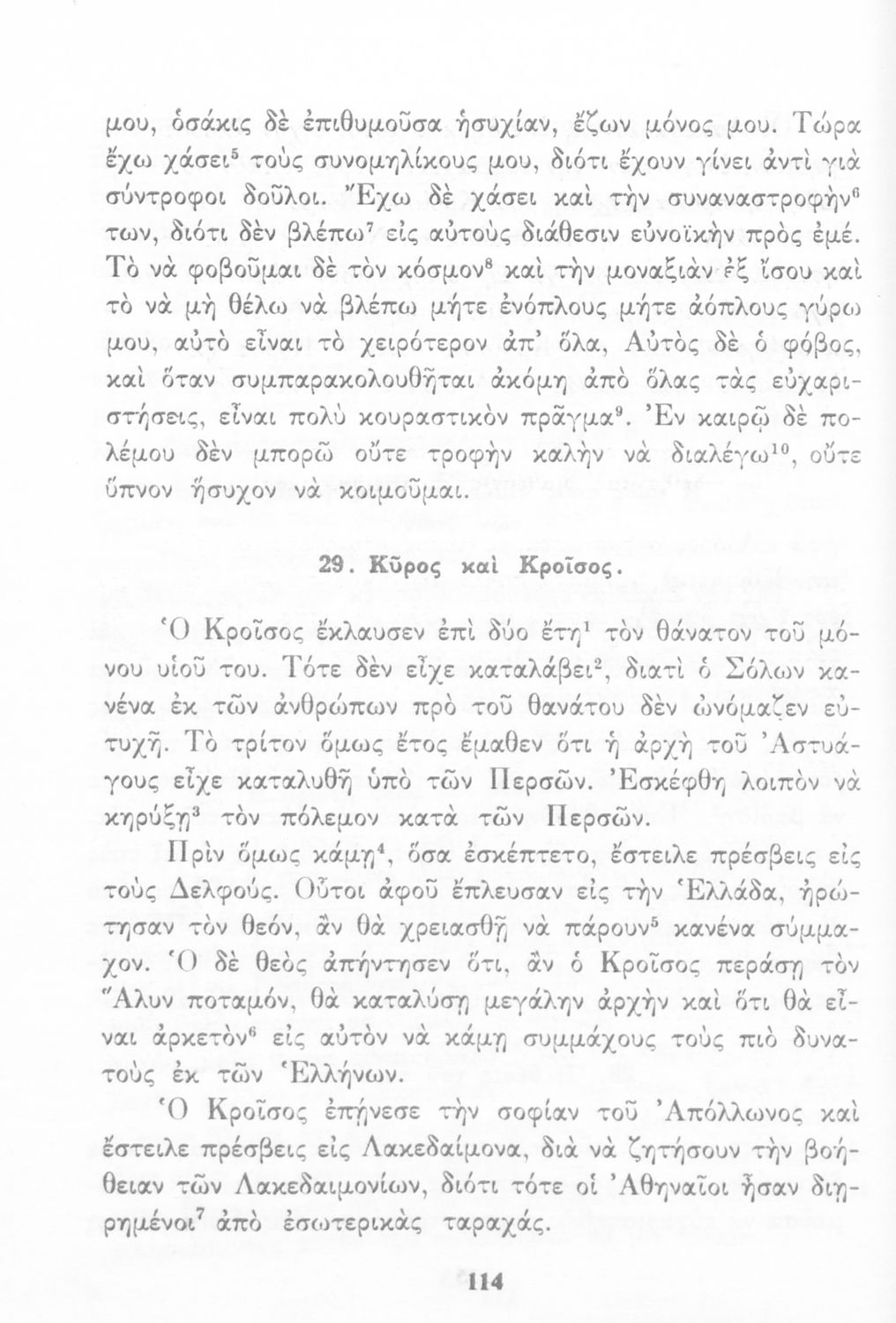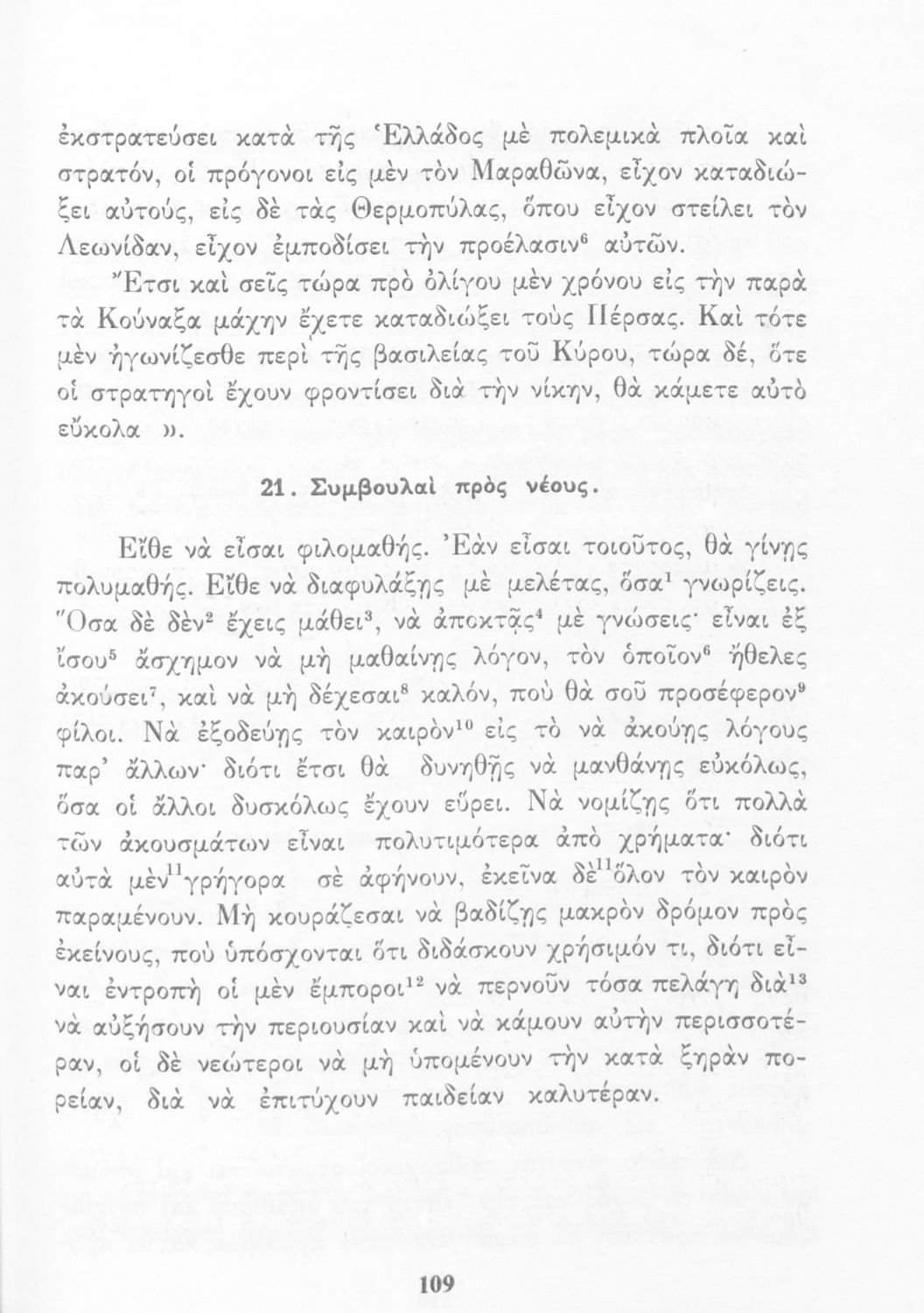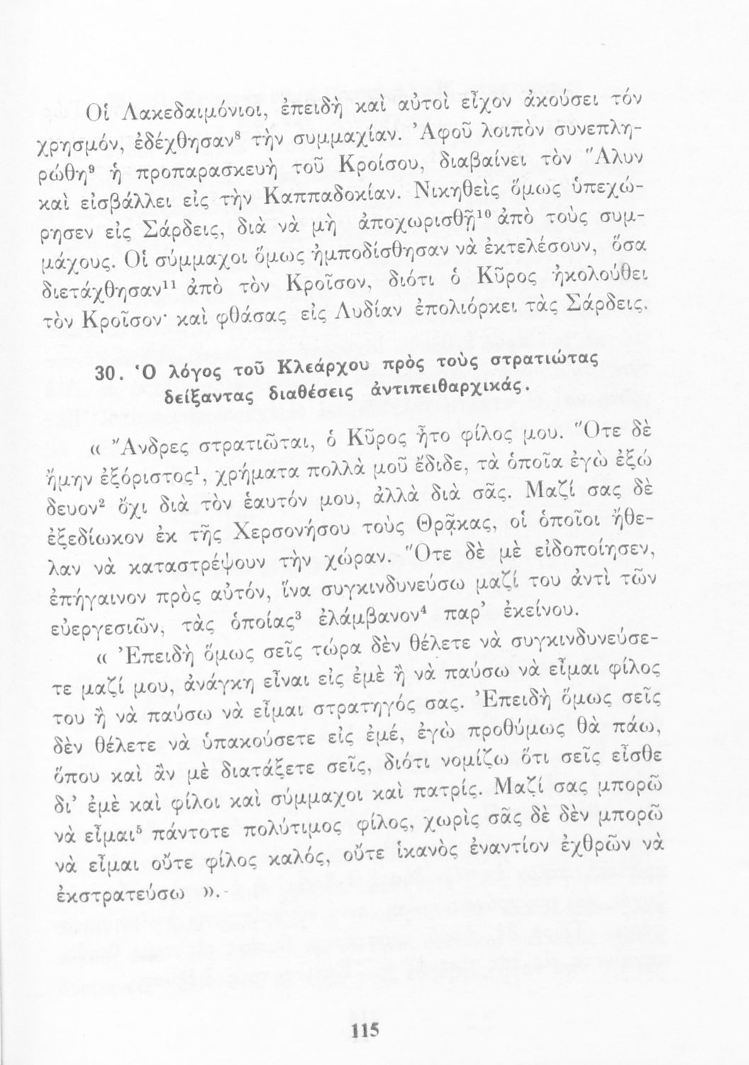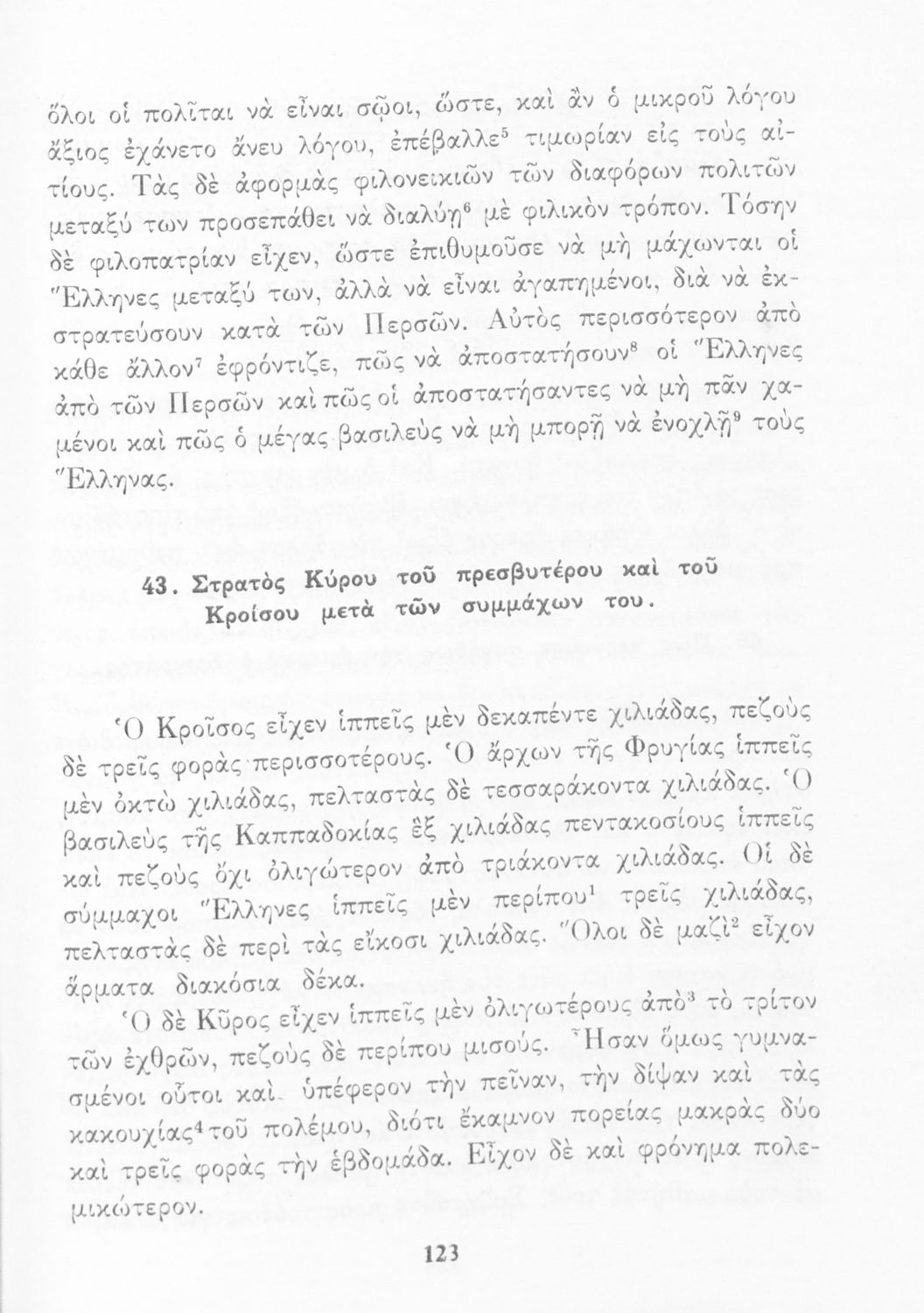 Σχολικό Εγχειρίδιο Αρχαίων Ελληνικών που περιλαμβάνει κείμενα προσαρμοσμένα στη διδασκαλία των γραμματικών και συντακτικών φαινομένων, και ερμηνευτικές και λεξιλογικές σημειώσεις. Φέρει το σύμβολο της ...