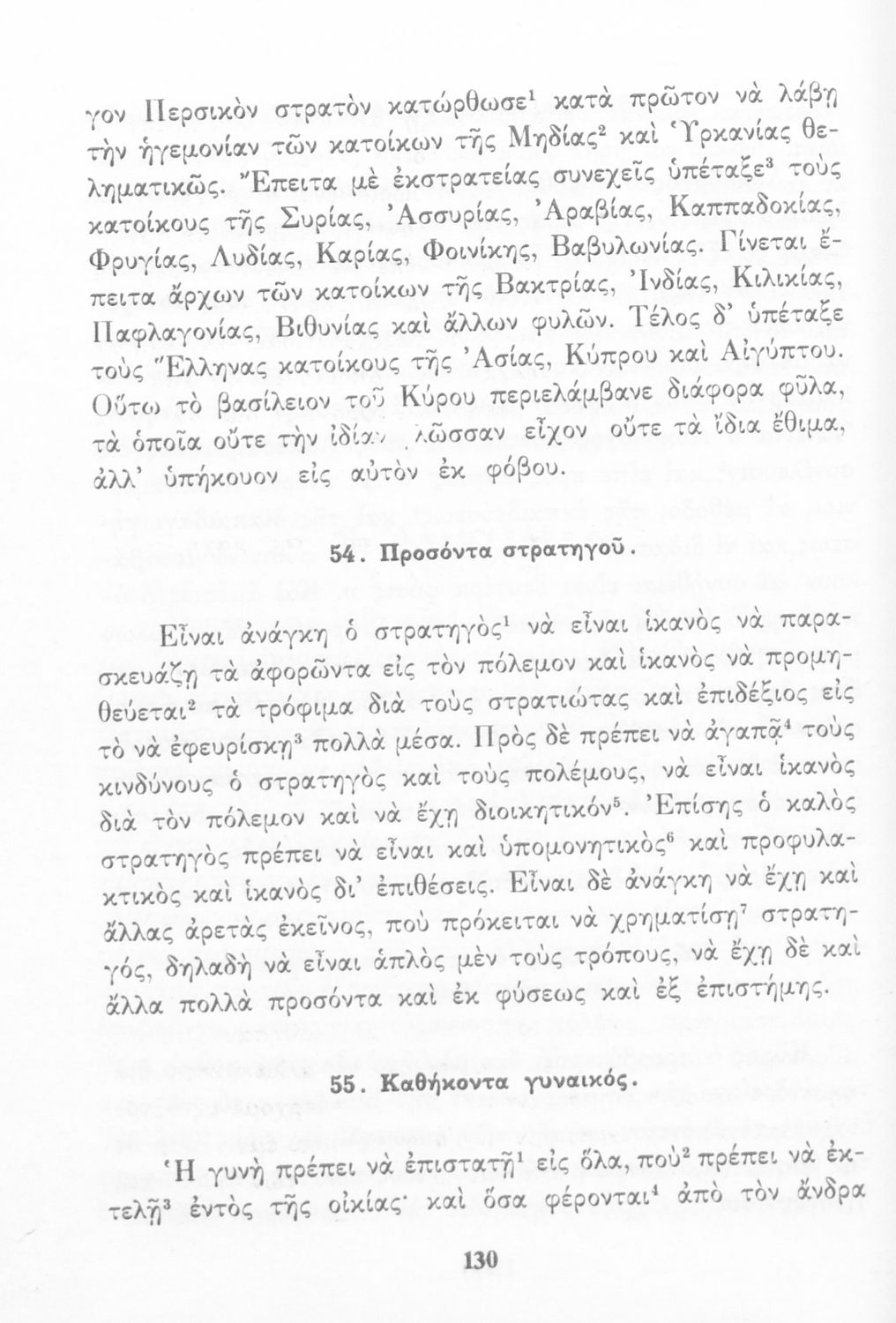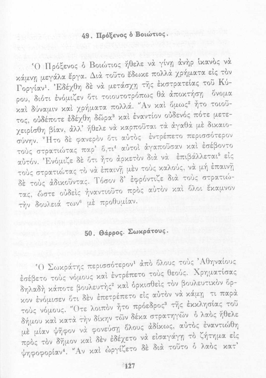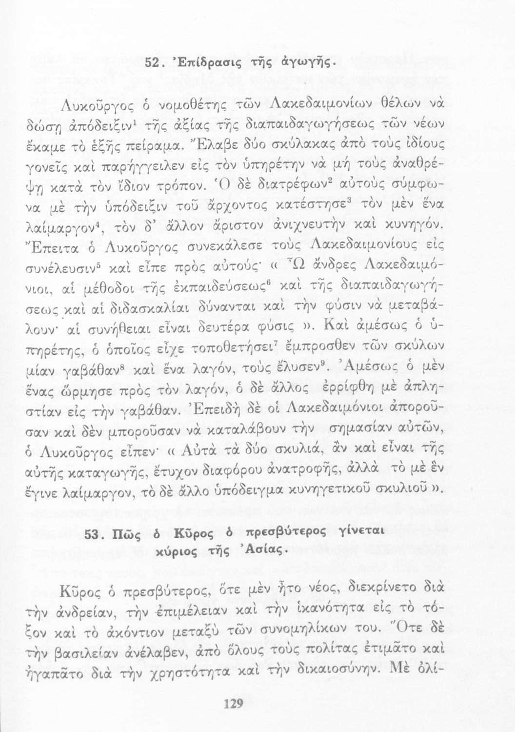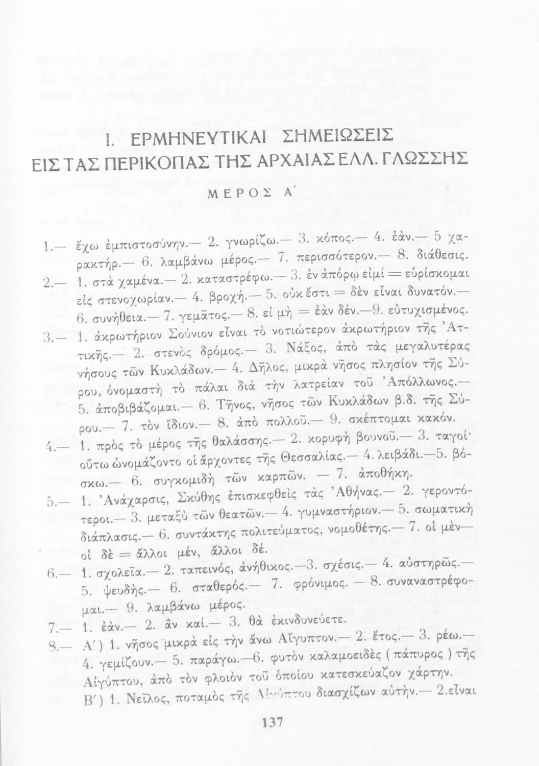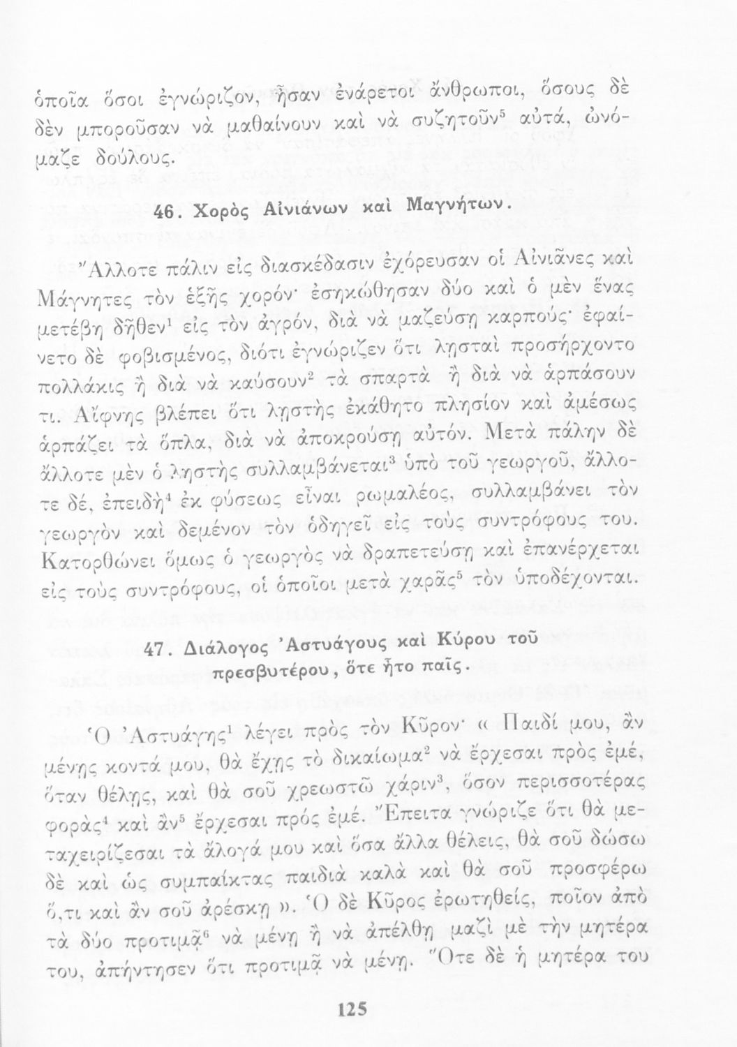 Σχολικό Εγχειρίδιο Αρχαίων Ελληνικών Α' και Β΄ Γυμνασίου που περιλαμβάνει κείμενα προσαρμοσμένα στη διδασκαλία των γραμματικών και συντακτικών φαινομένων, και ερμηνευτικές και λεξιλογικές σημειώσεις.
