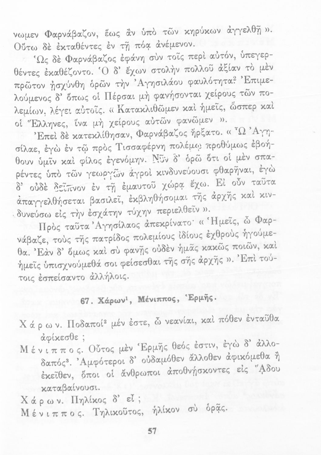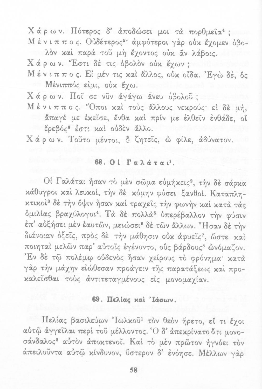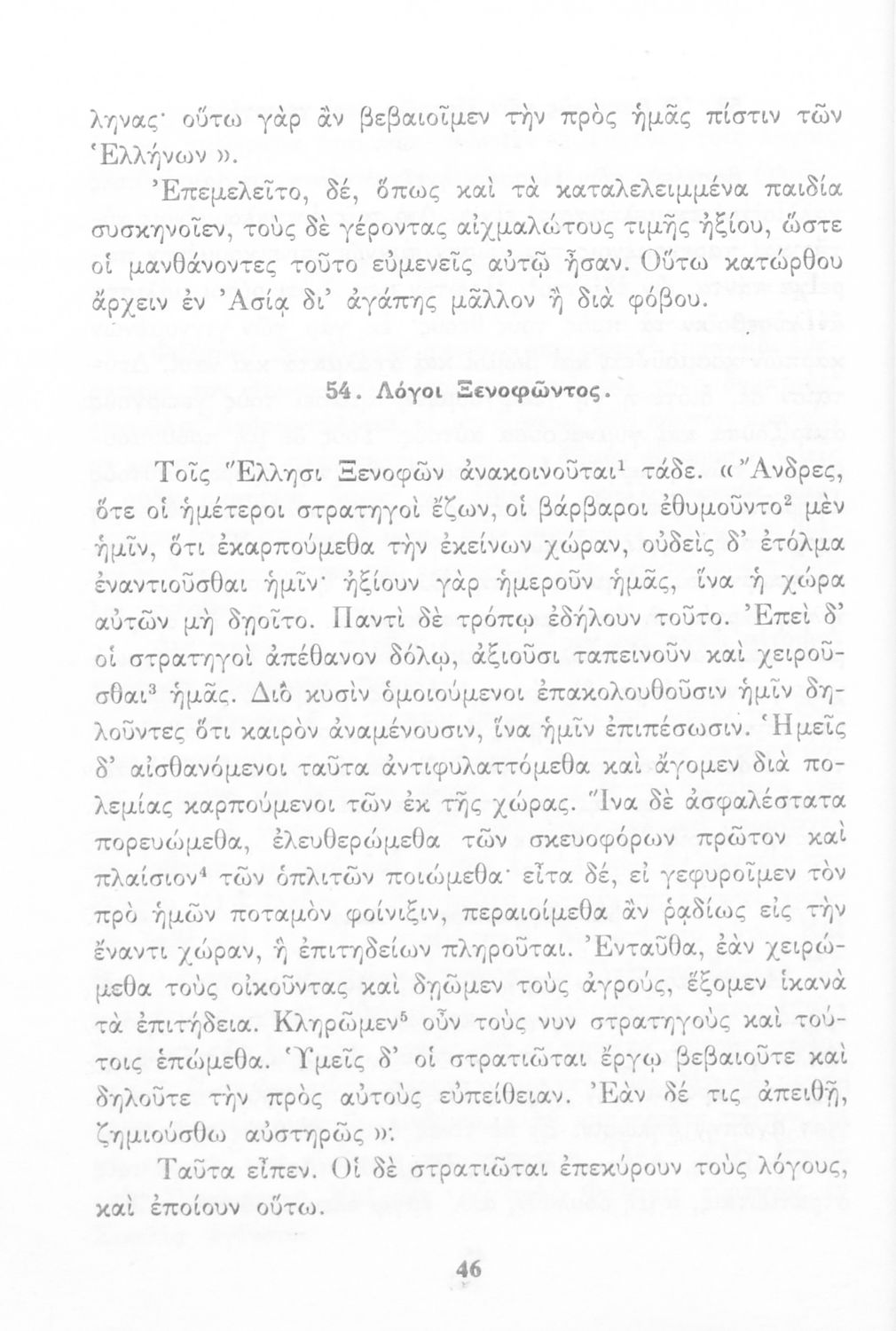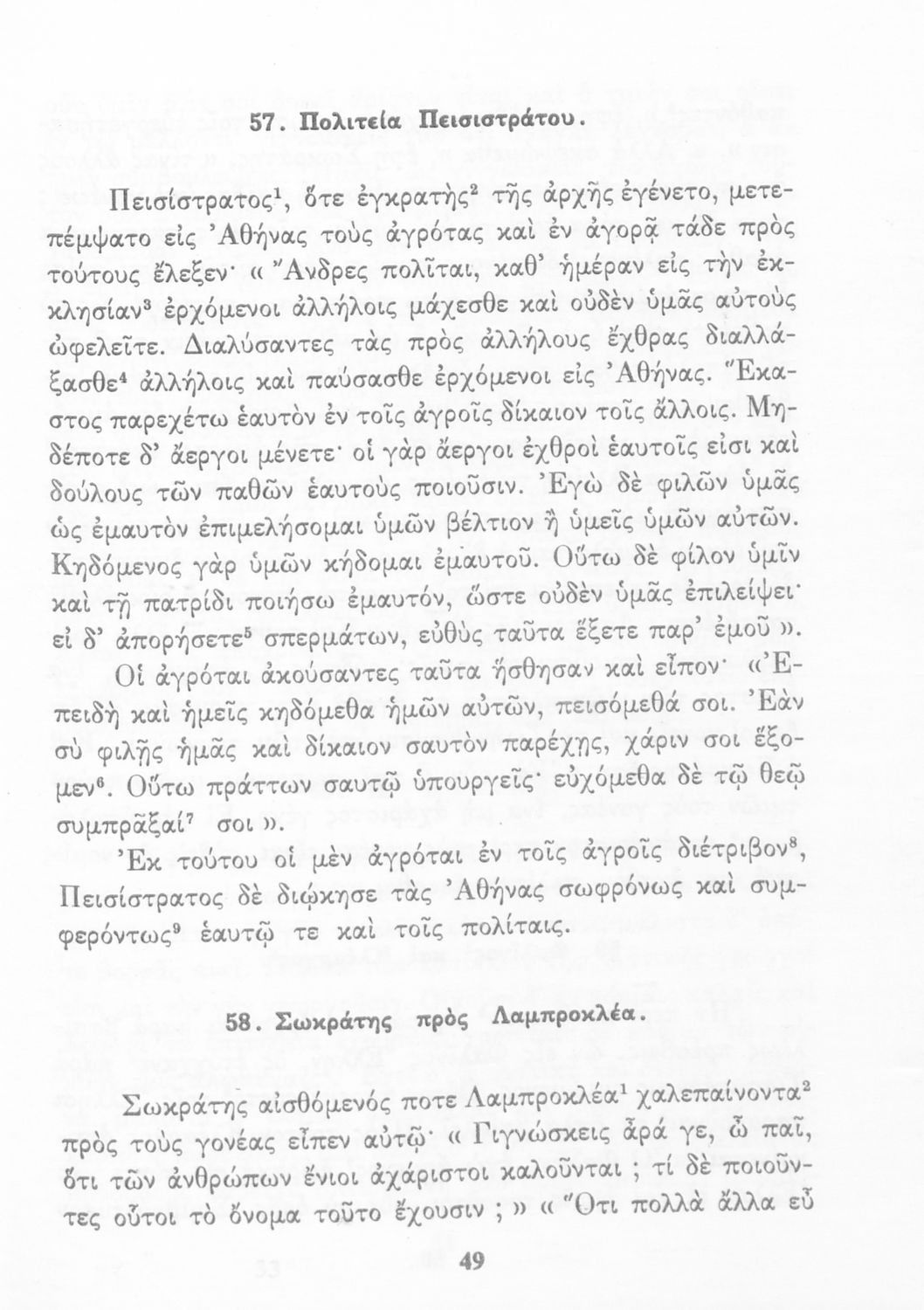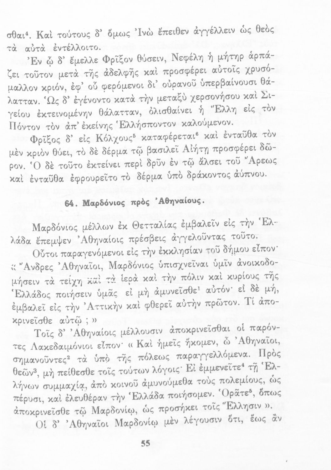 Σχολικό Εγχειρίδιο Αρχαίων Ελληνικών Α' και Β΄ Γυμνασίου που περιλαμβάνει κείμενα προσαρμοσμένα στη διδασκαλία των γραμματικών και συντακτικών φαινομένων, και ερμηνευτικές και λεξιλογικές σημειώσεις.