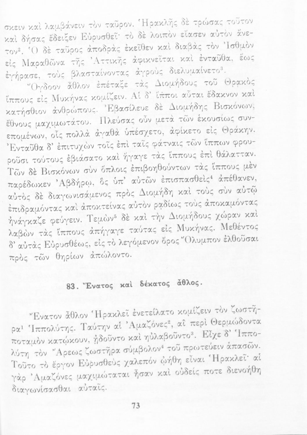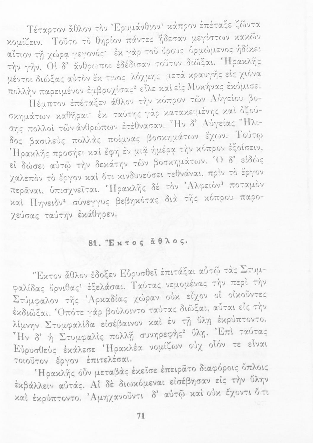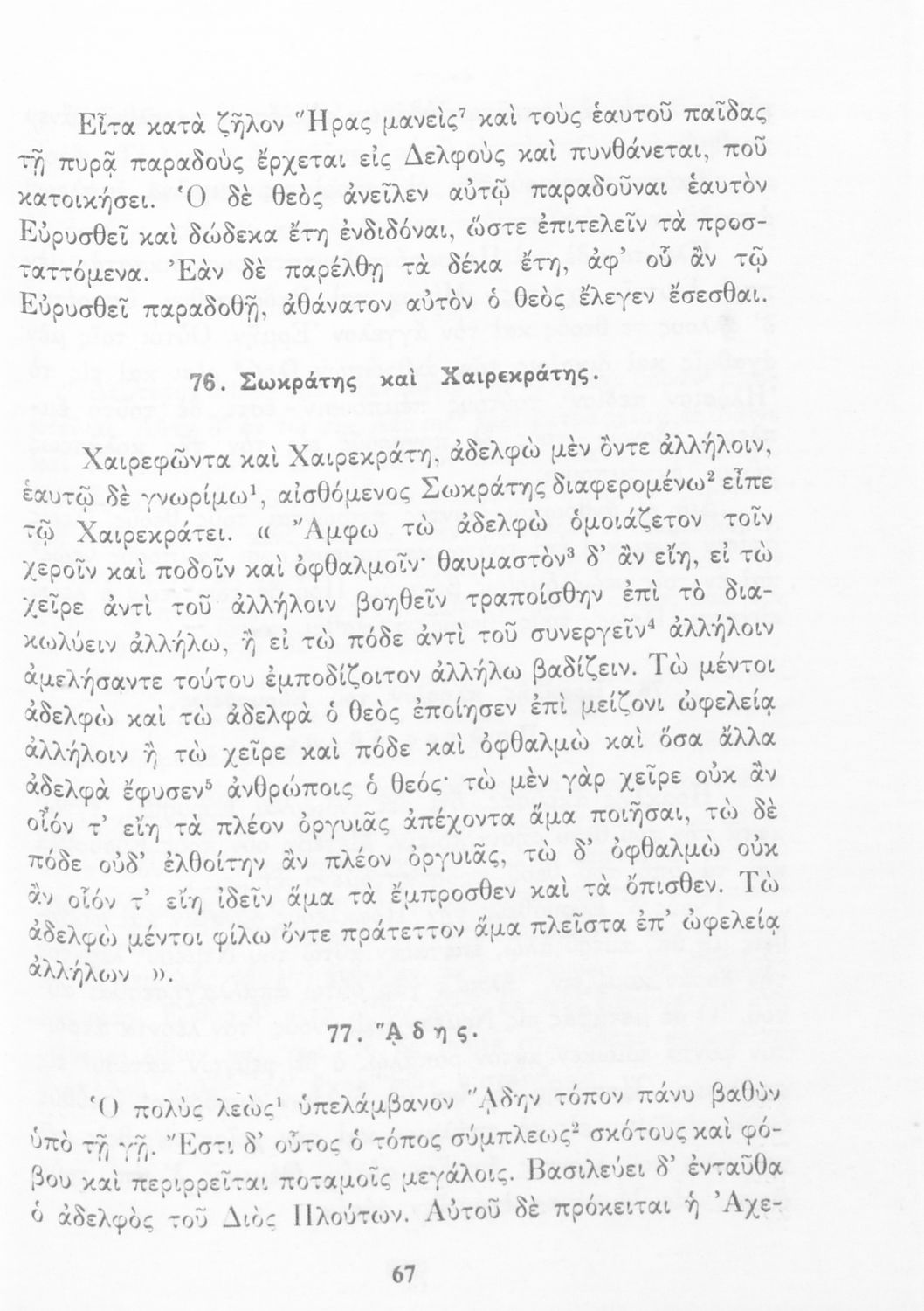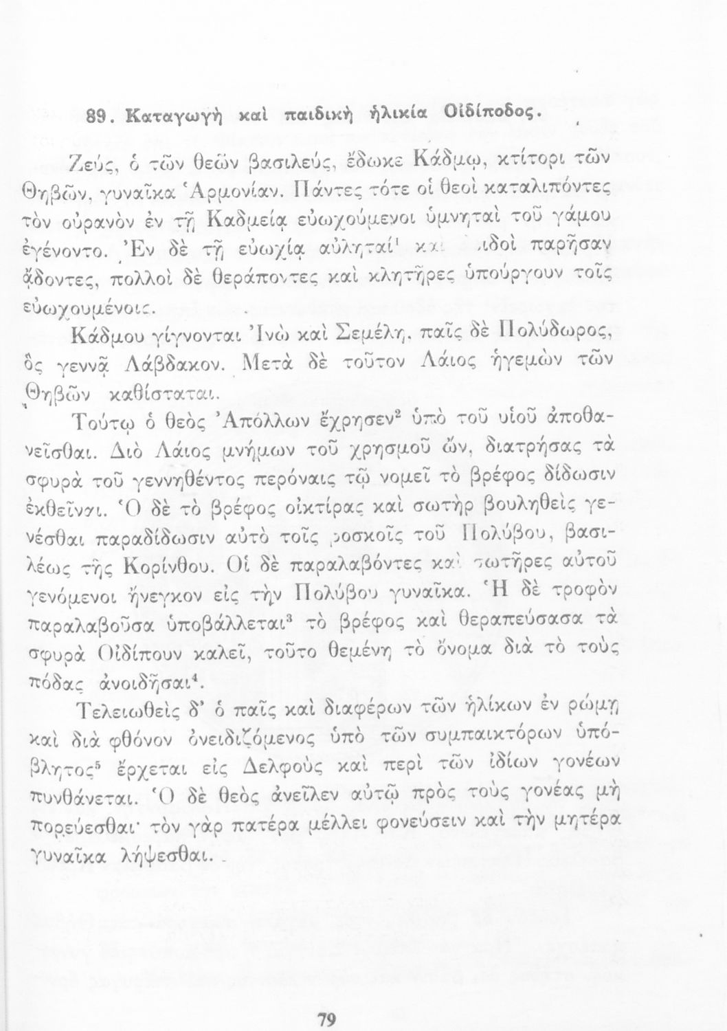 Σχολικό Εγχειρίδιο Αρχαίων Ελληνικών Α' και Β΄ Γυμνασίου που περιλαμβάνει κείμενα προσαρμοσμένα στη διδασκαλία των γραμματικών και συντακτικών φαινομένων, και ερμηνευτικές και λεξιλογικές σημειώσεις.