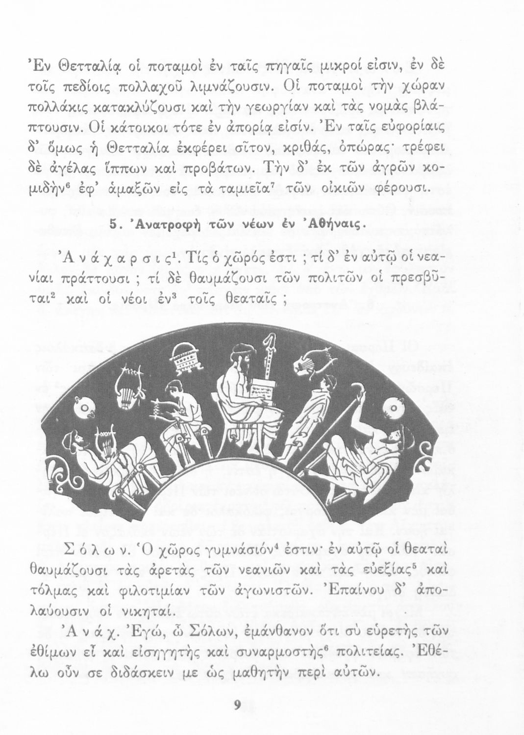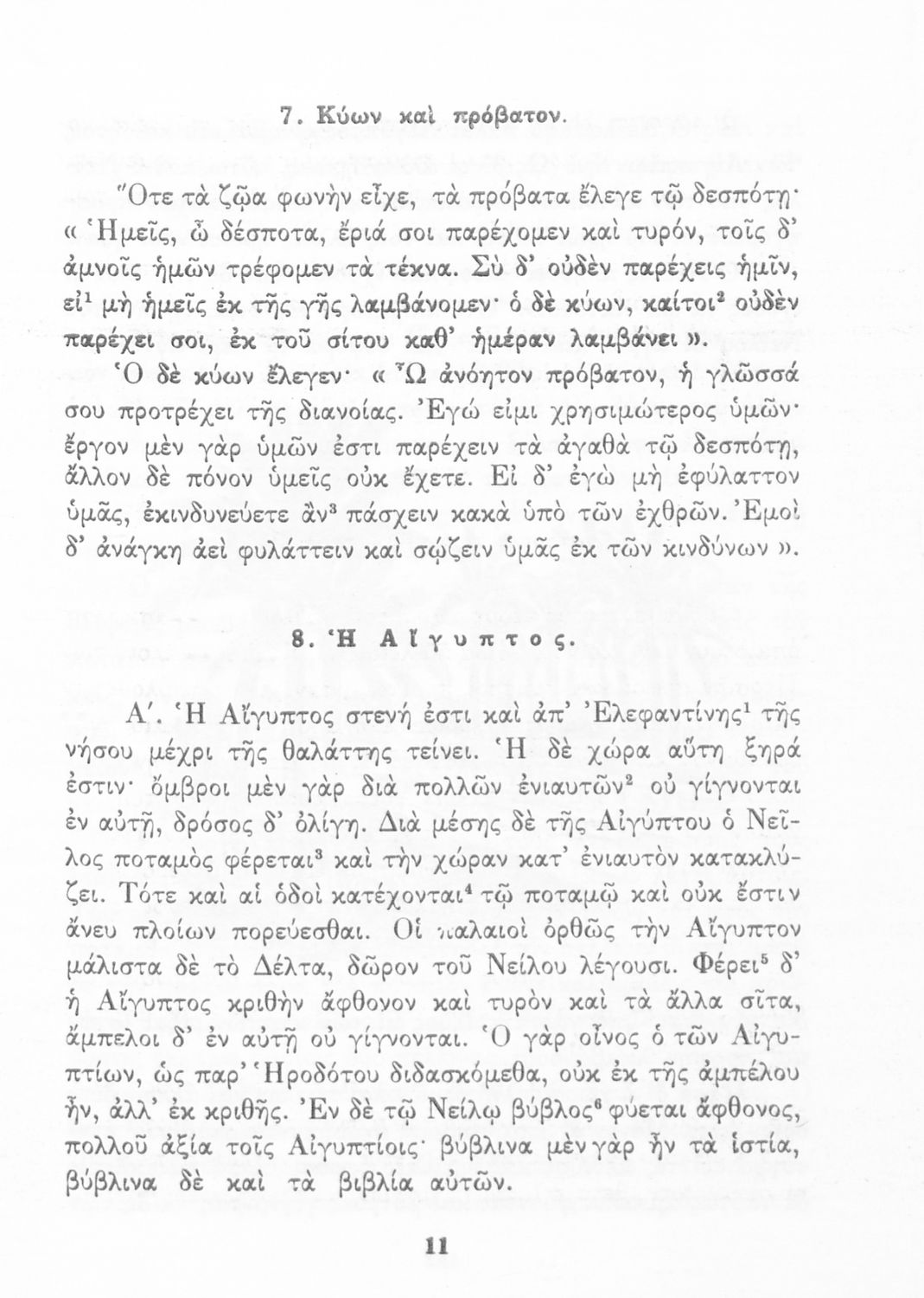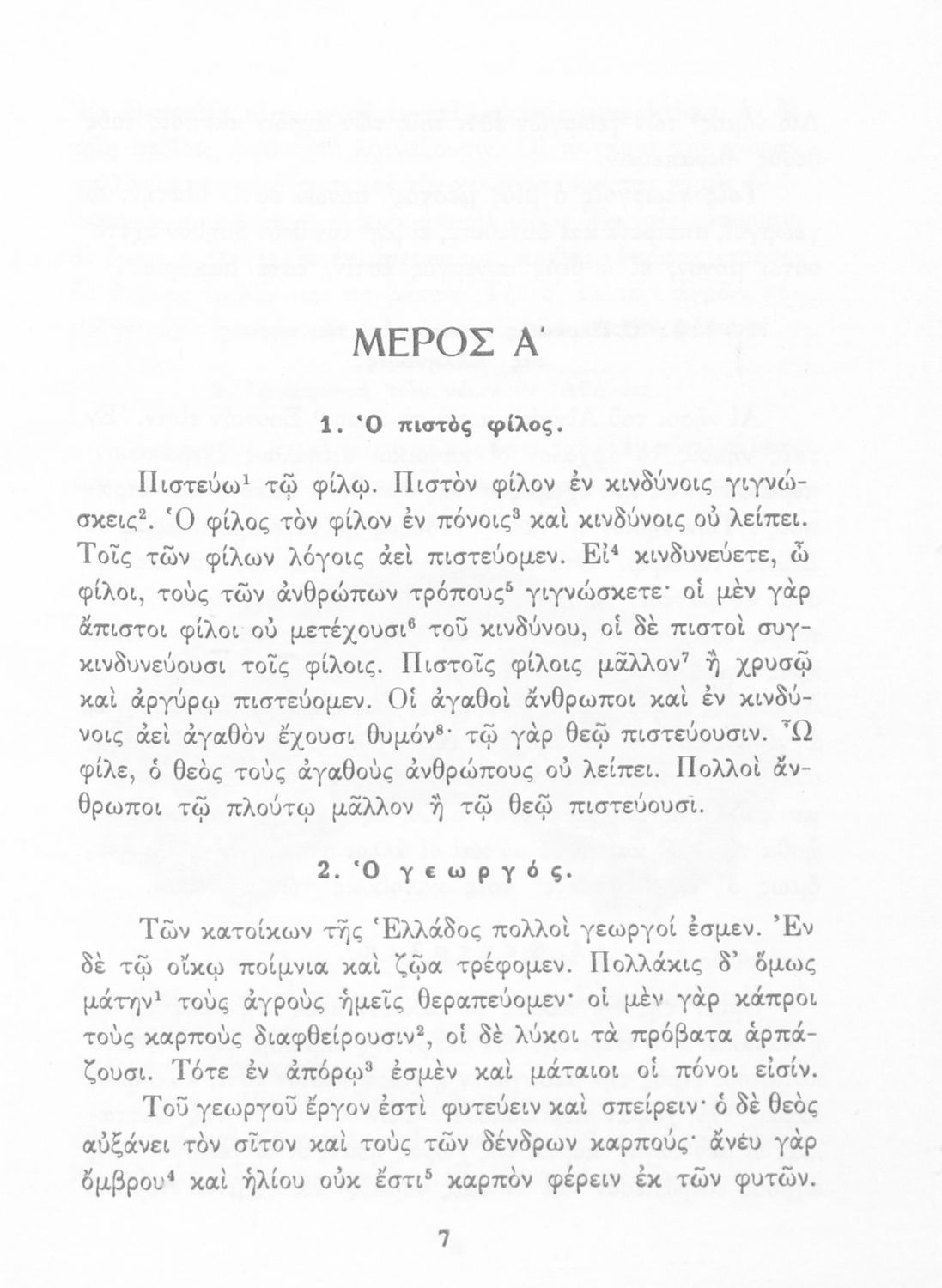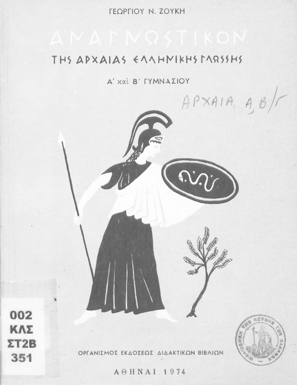 Σχολικό Εγχειρίδιο Αρχαίων Ελληνικών Α' και Β΄ Γυμνασίου που περιλαμβάνει κείμενα προσαρμοσμένα στη διδασκαλία των γραμματικών και συντακτικών φαινομένων, και ερμηνευτικές και λεξιλογικές σημειώσεις.