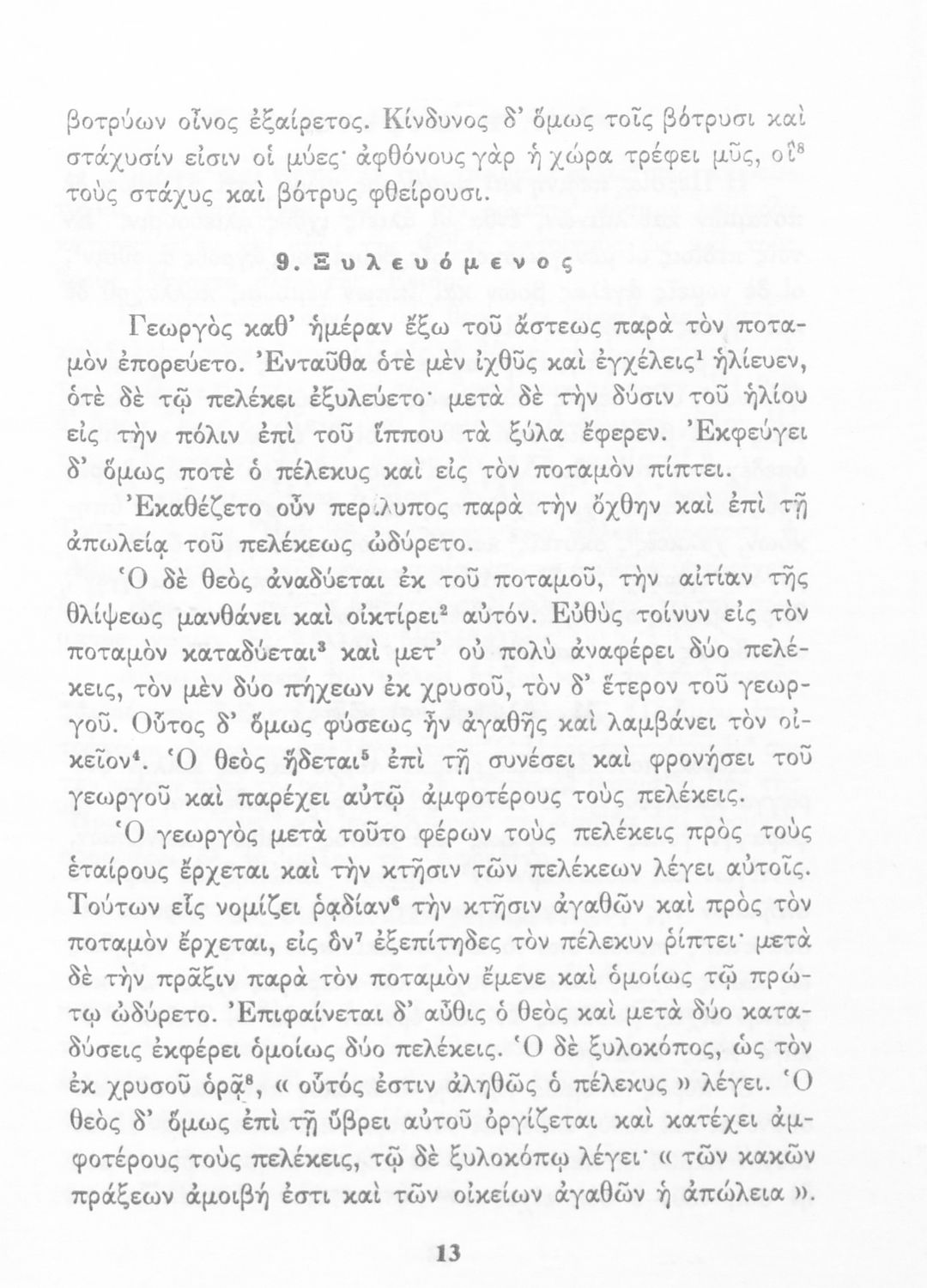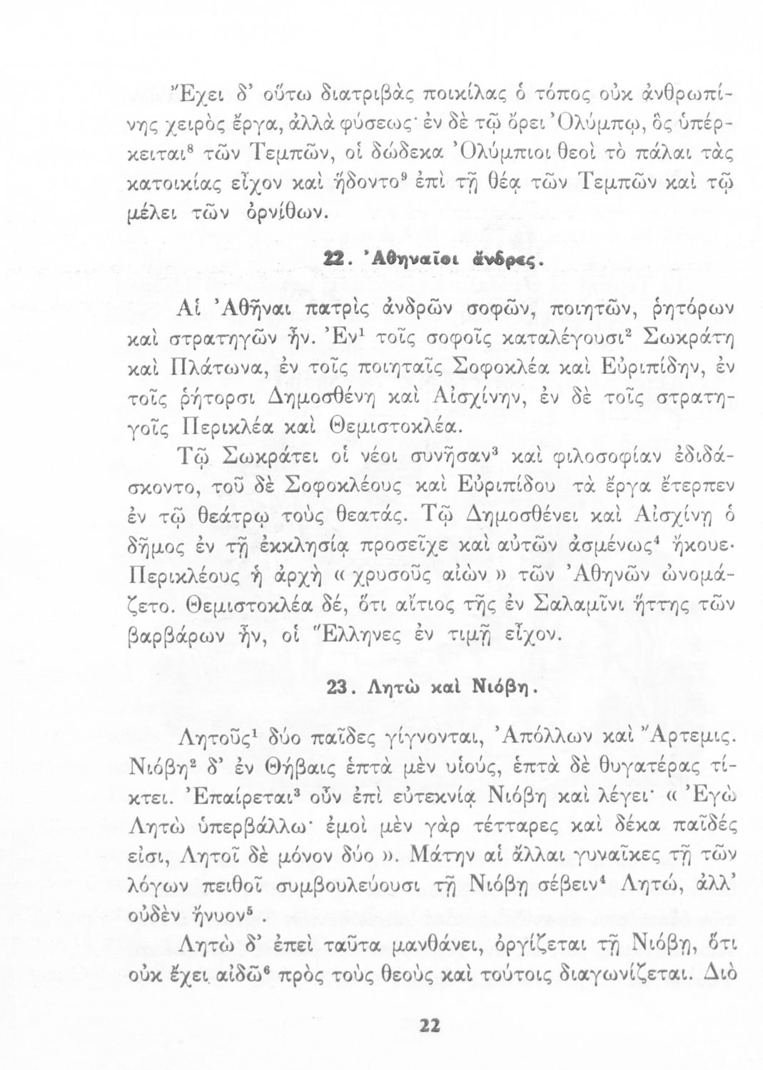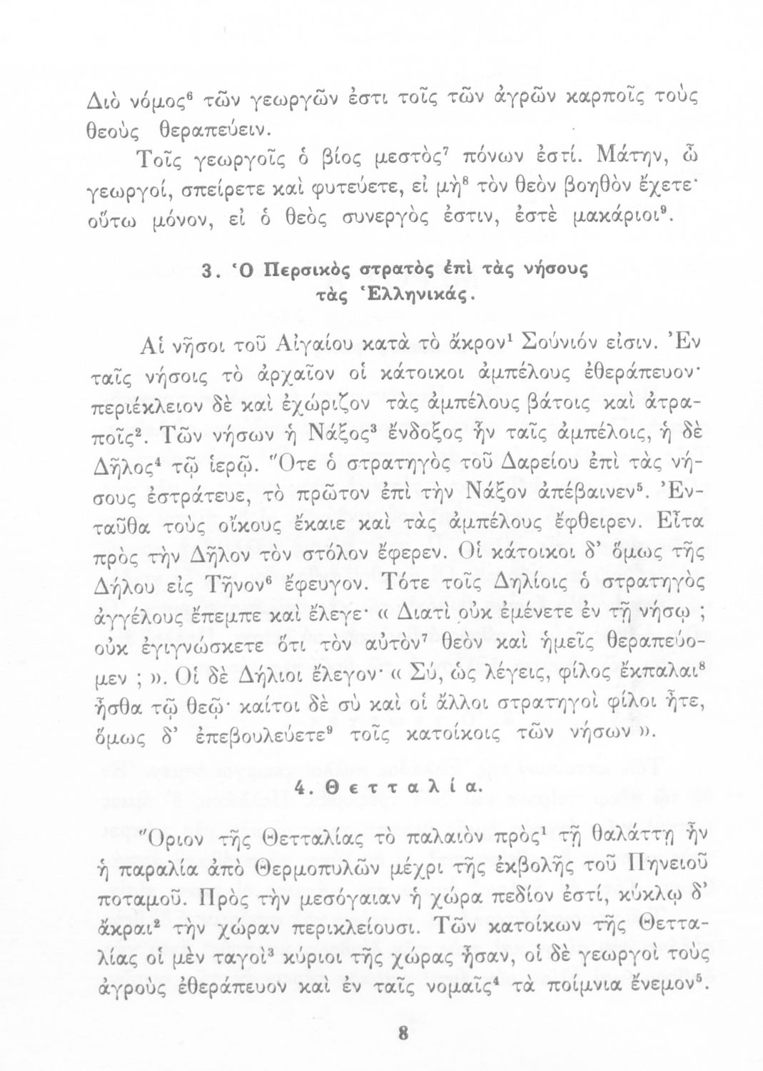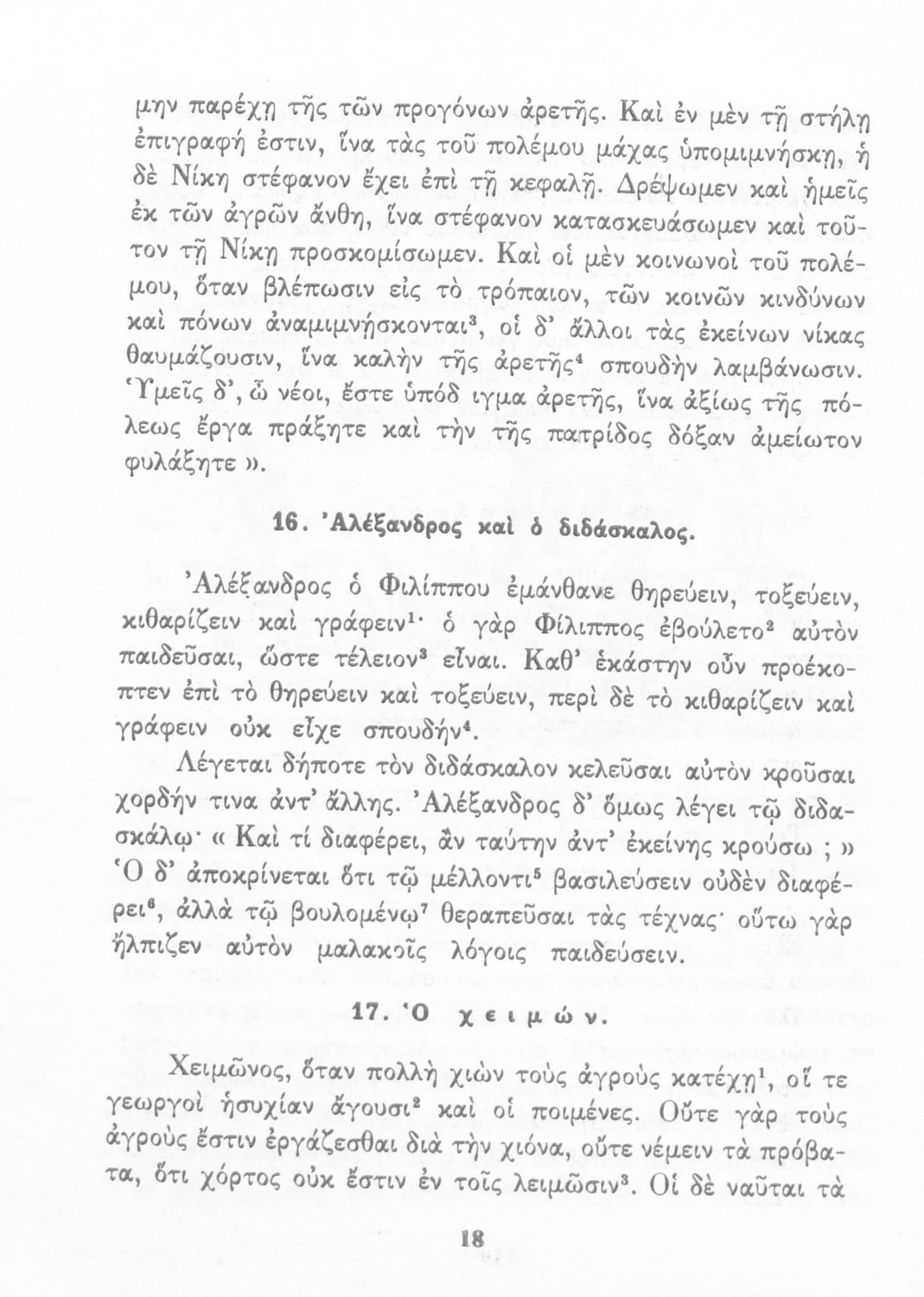 Σχολικό Εγχειρίδιο Αρχαίων Ελληνικών Α' και Β΄ Γυμνασίου που περιλαμβάνει κείμενα προσαρμοσμένα στη διδασκαλία των γραμματικών και συντακτικών φαινομένων, και ερμηνευτικές και λεξιλογικές σημειώσεις.