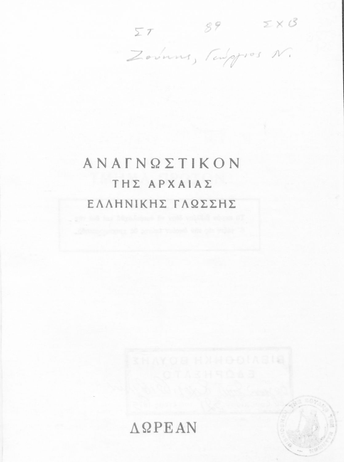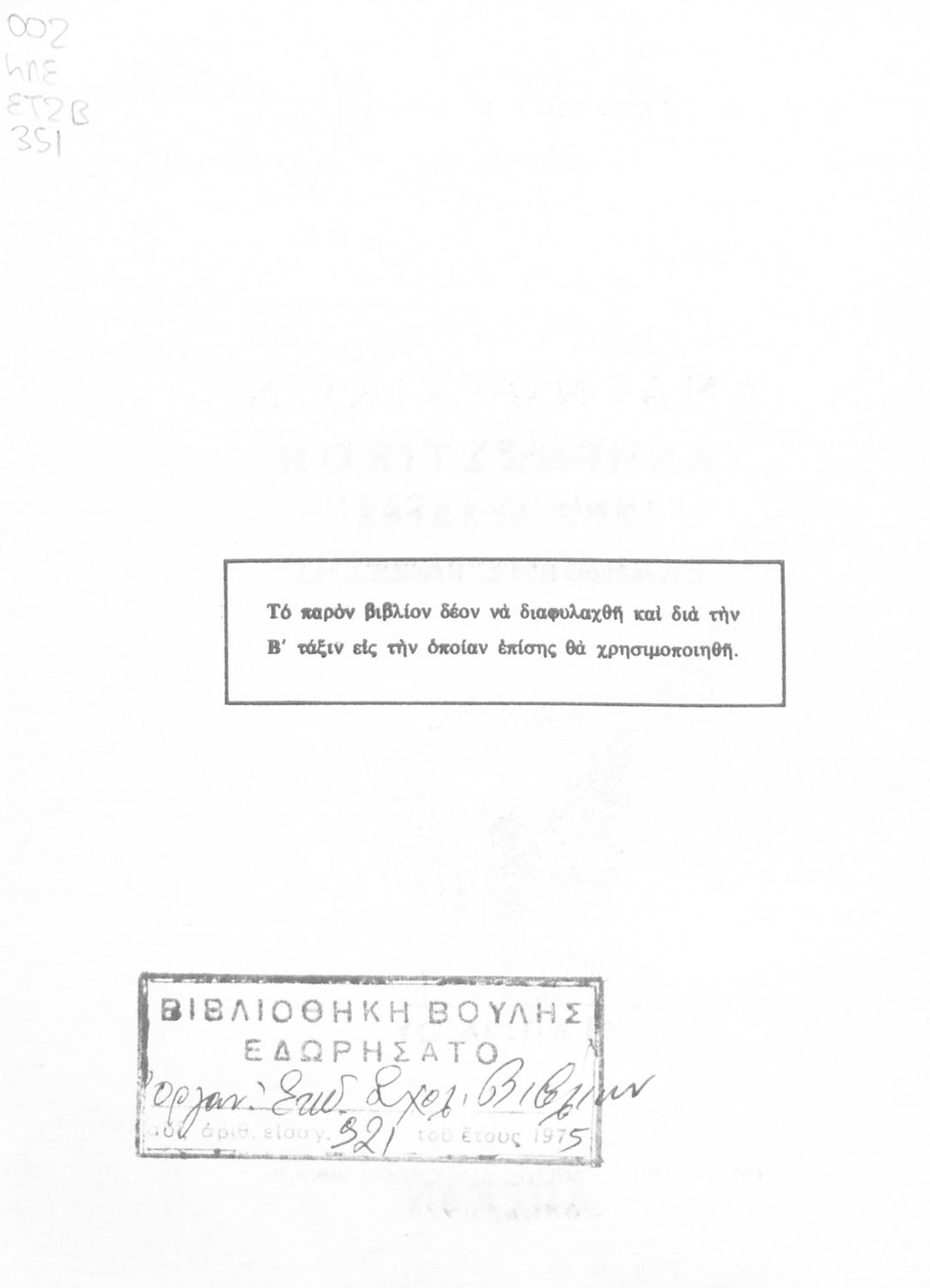 Εντοπισμός πρωτοτύπου: Βιβλιοθήκη της Βουλής των Ελλήνων