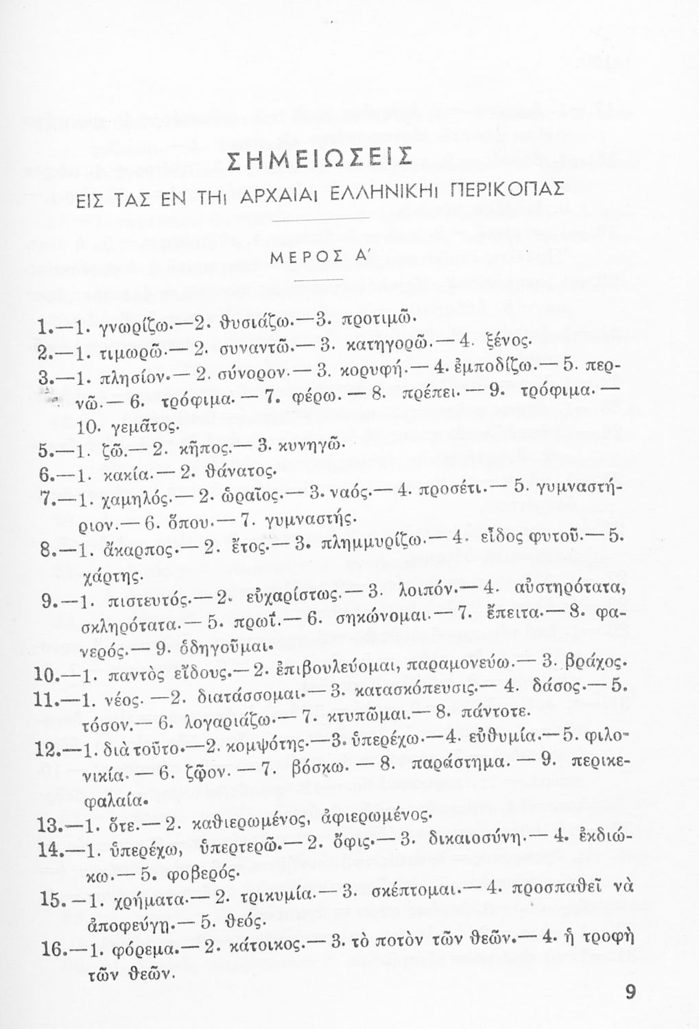Σχολικό εγχειρίδιο Αρχαίων Ελληνικών Γυμνασίου που περιέχει τους κανόνες γραμματικής και είναι χωρισμένο σε φθογγολογικό, τυπολογικό και ετυμολογικό μέρος. Περιέχει και κατάλογο ανωμάλων ρημάτων.