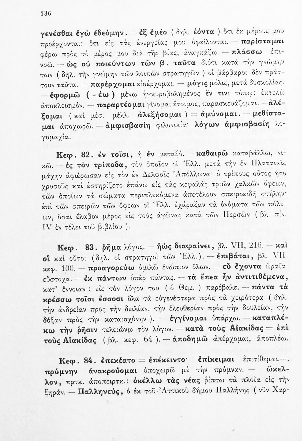 Σχολικό εγχειρίδιο Αρχαίων Ελληνικών Γ΄ Γυμνασίου που περιλαμβάνει εισαγωγή στη ζωή και το έργο του Ηρόδοτου, αποσπάσματα από την Ιστορία του, ερμηνευτικές σημειώσεις και τοπογραφικούς πίνακες με εικόνες και χάρτες. Φέρει το σύμβολο της δικτατορίας.