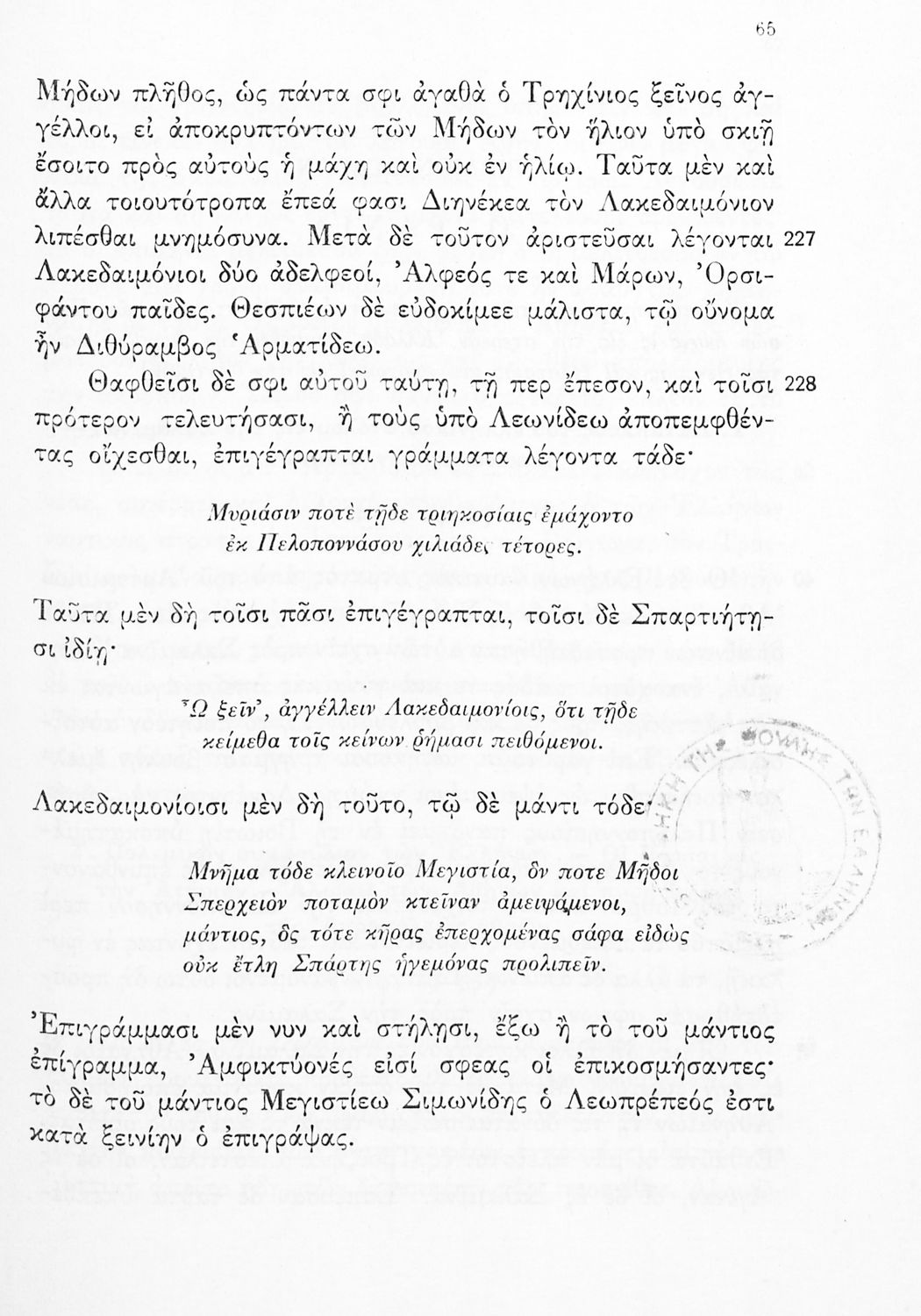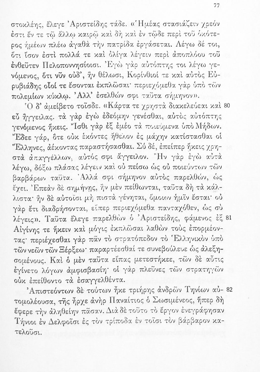 Μαθητικό βοήθημα Αρχαίων Ελληνικών Γ΄ Γυμνασίου που περιλαμβάνει εισαγωγή στη διάλεκτο του Ηρόδοτου, κείμενο, ερμηνευτικά, γραμματικά και συντακτικά σχόλια.