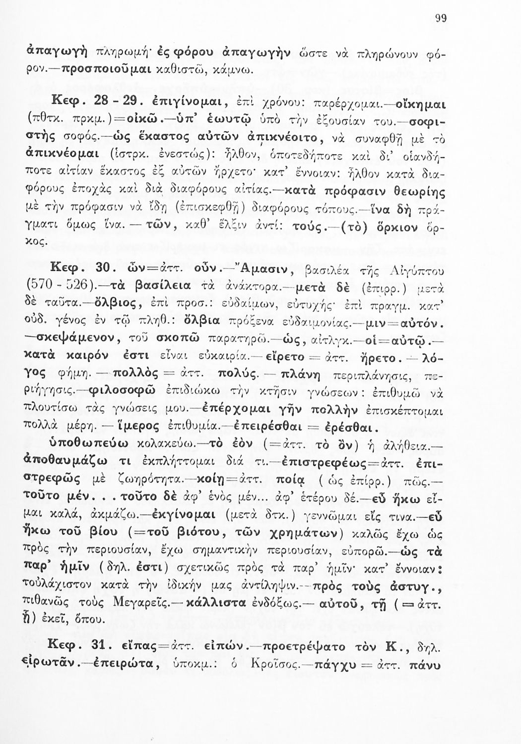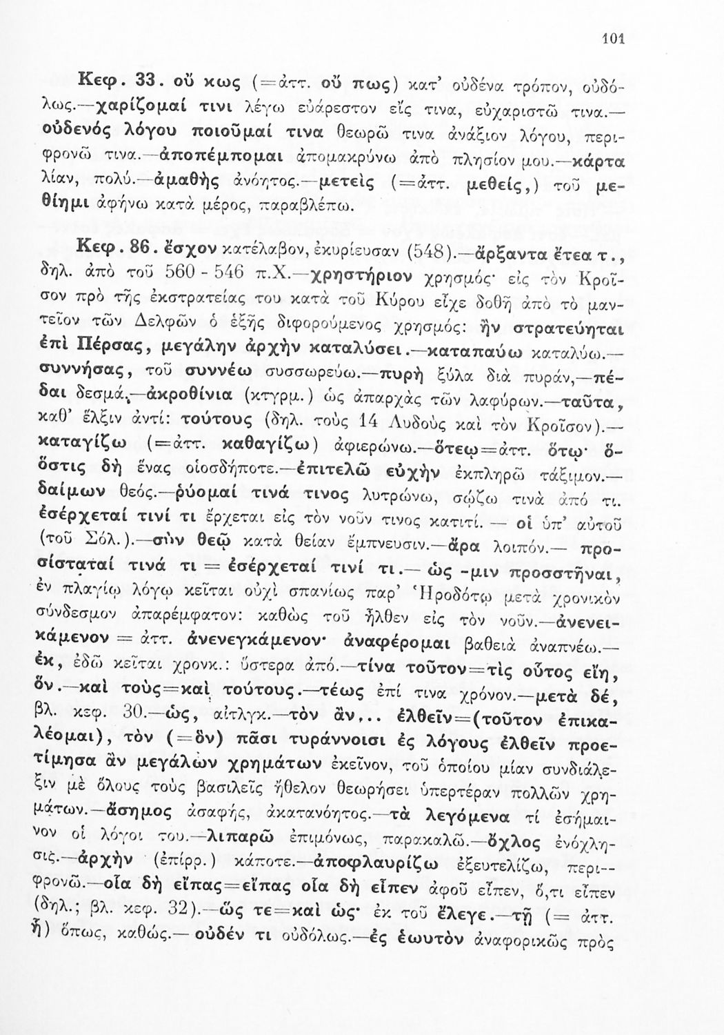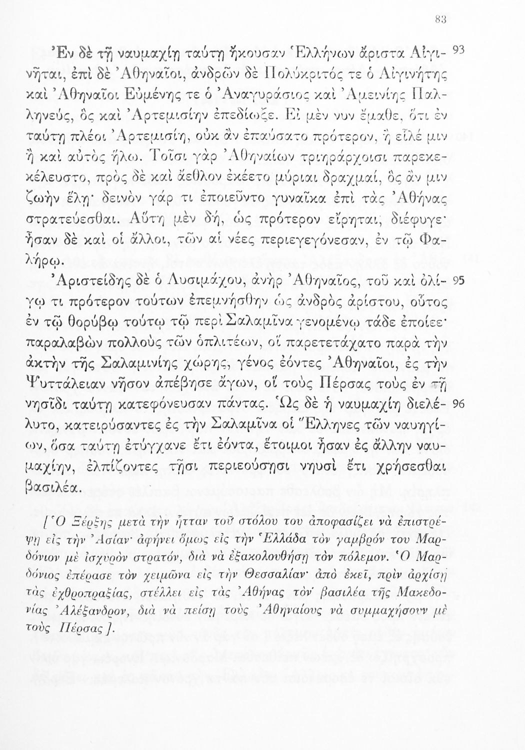 Μαθητικό βοήθημα Αρχαίων Ελληνικών Γ΄ Γυμνασίου που περιλαμβάνει εισαγωγή στη διάλεκτο του Ηρόδοτου, κείμενο, ερμηνευτικά, γραμματικά και συντακτικά σχόλια.