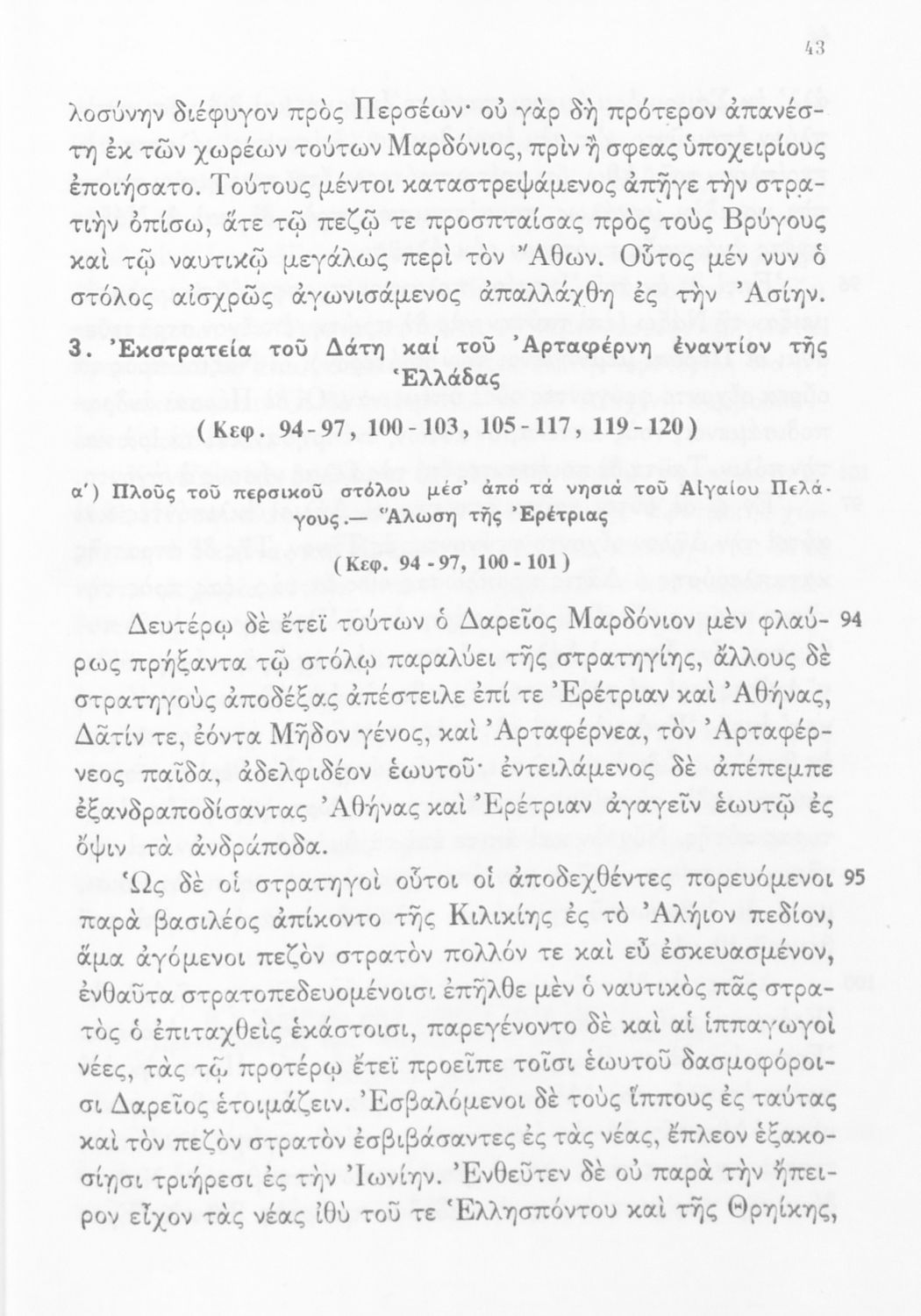 Σχολικό εγχειρίδιο Αρχαίων Ελληνικών Γ΄ Γυμνασίου που περιλαμβάνει εισαγωγή στη ζωή και το έργο του Ηρόδοτου, αποσπάσματα από την Ιστορία του, ερμηνευτικές σημειώσεις και τοπογραφικούς πίνακες με εικόνες και χάρτες.