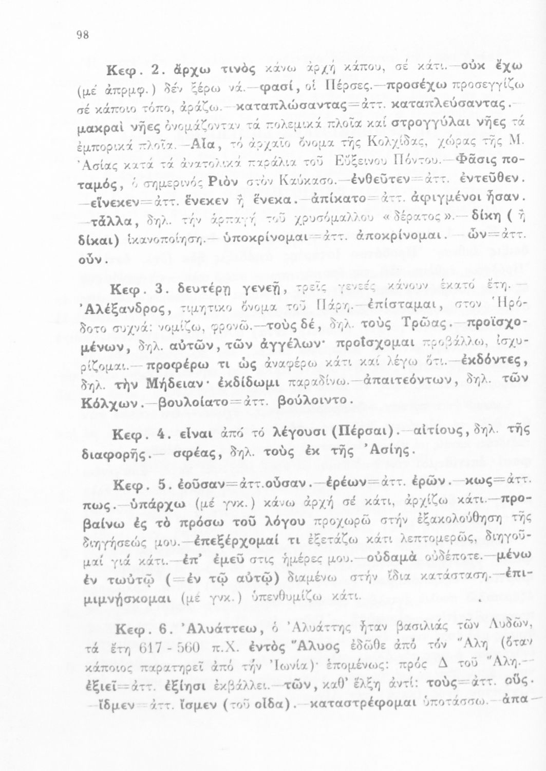Σχολικό εγχειρίδιο Αρχαίων Ελληνικών Α΄ Γυμνασίου που περιλαμβάνει αποσπάσματα από την Ιστορία του Ηρόδοτου σε μετάφραση, εισαγωγή στη ζωή, το έργο και τη διάλεκτό του και ερμηνευτικά και πραγματολογικά σχόλια.