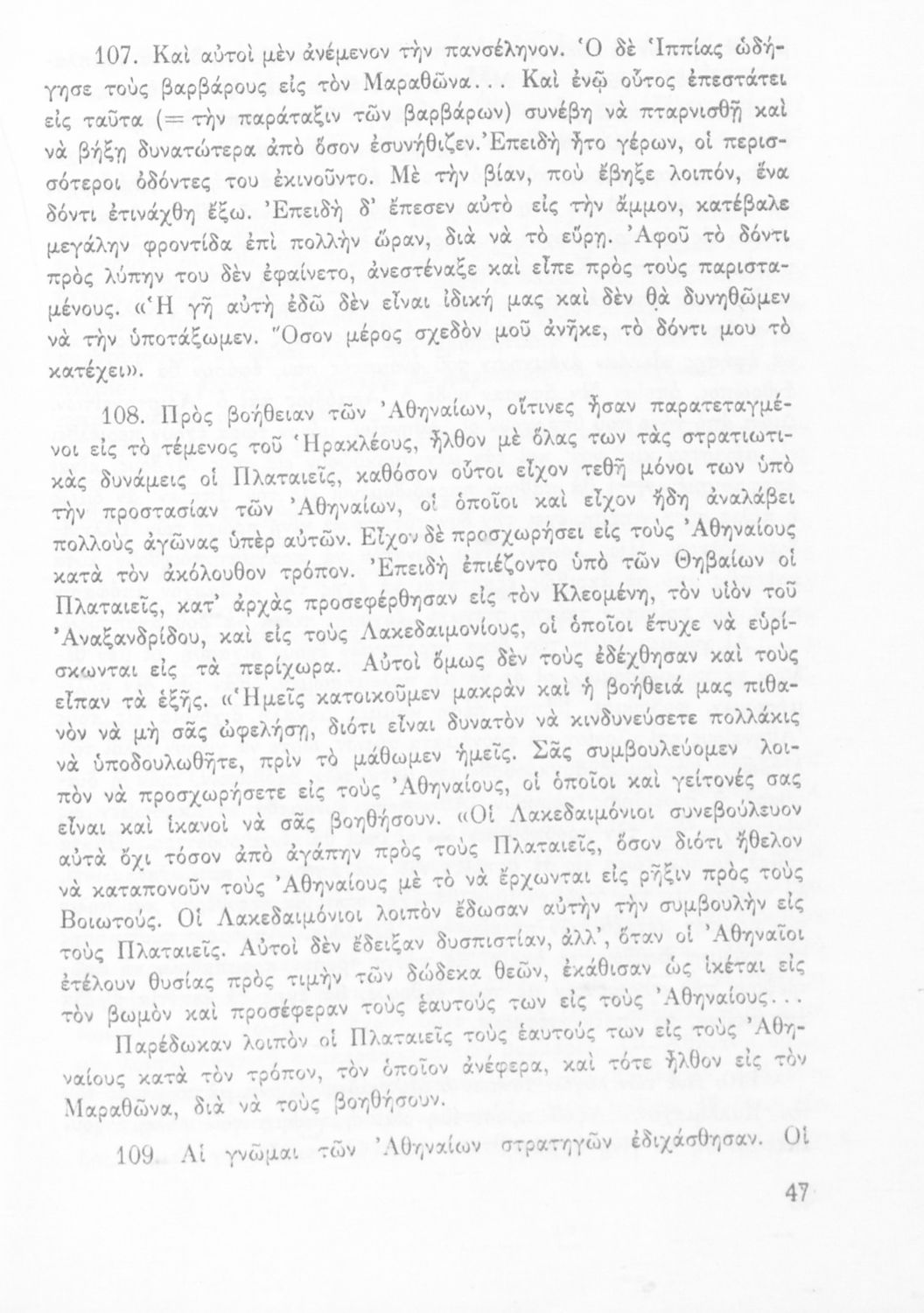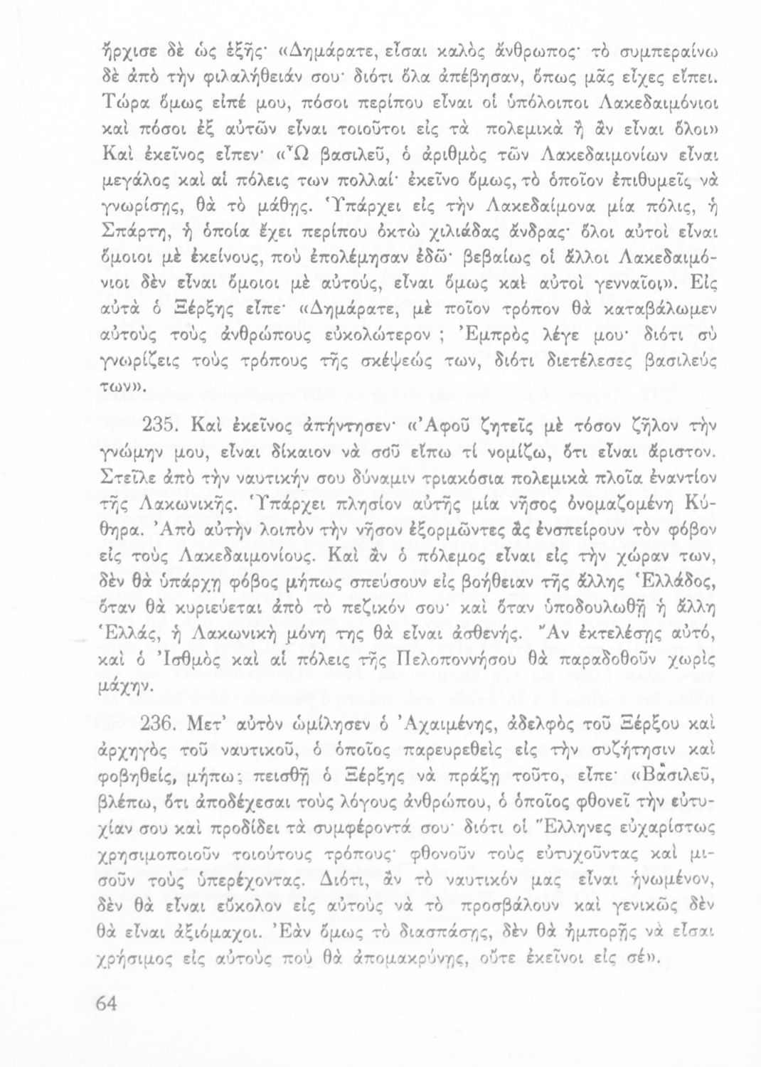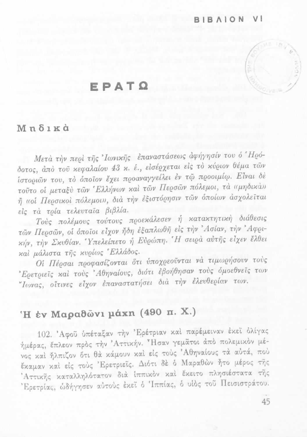 Σχολικό εγχειρίδιο Αρχαίων Ελληνικών Α΄ Γυμνασίου που περιλαμβάνει εισαγωγή στη ζωή και το έργο του Ηρόδοτου, και αποσπάσματα από τα 9 βιβλία της Ιστορίας του σε μετάφραση. Φέρει το σύμβολο της δικτατορίας.