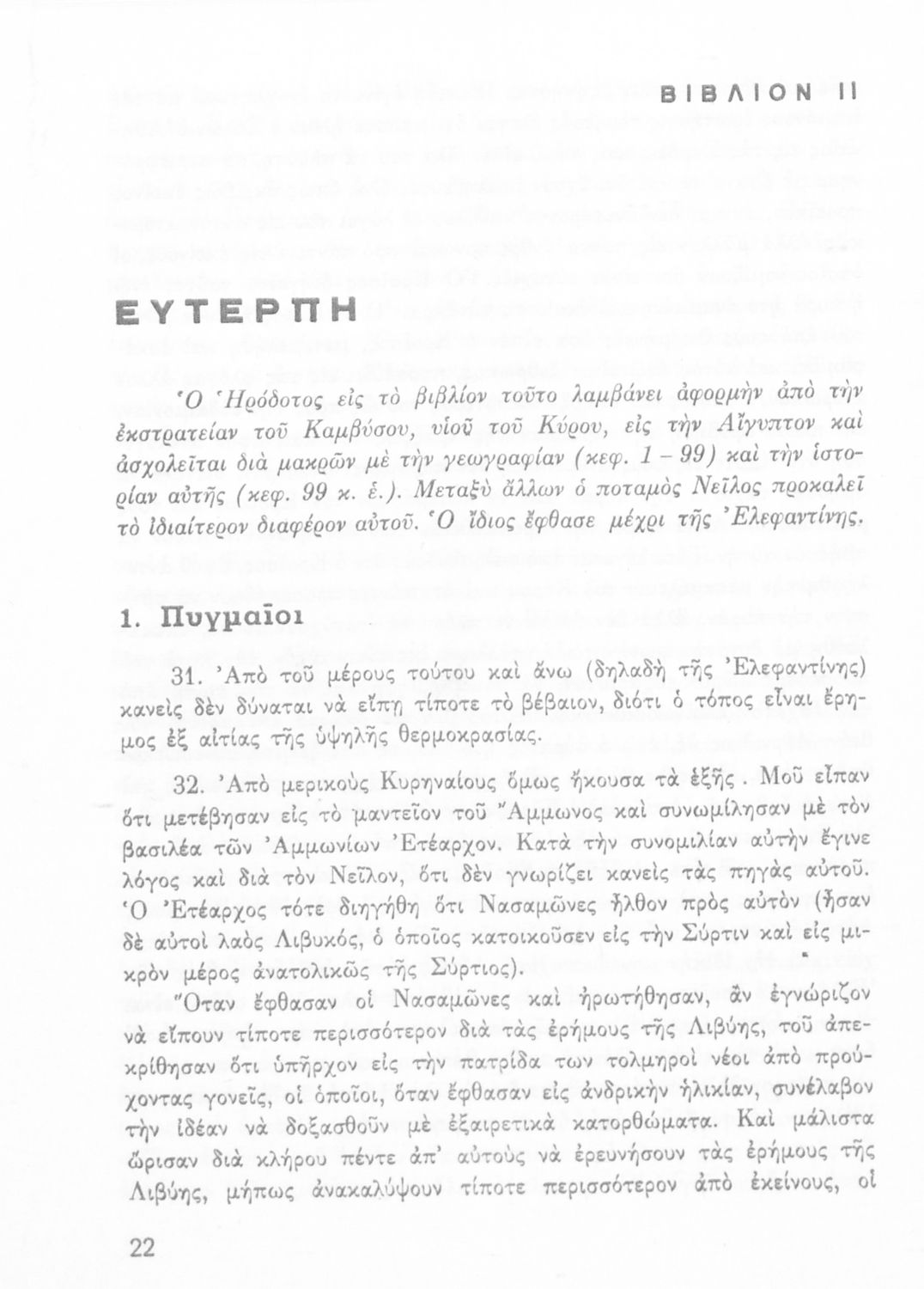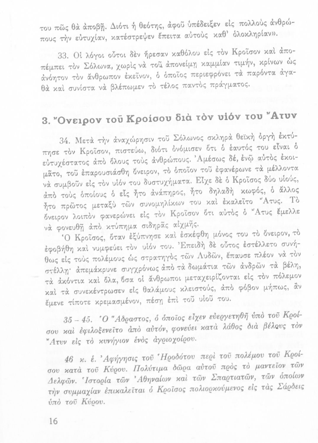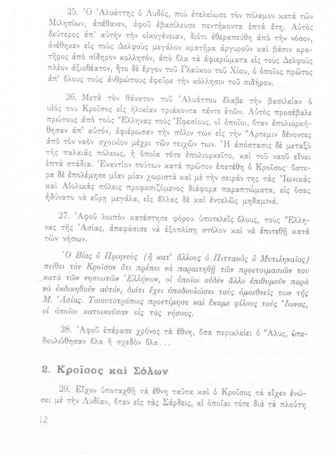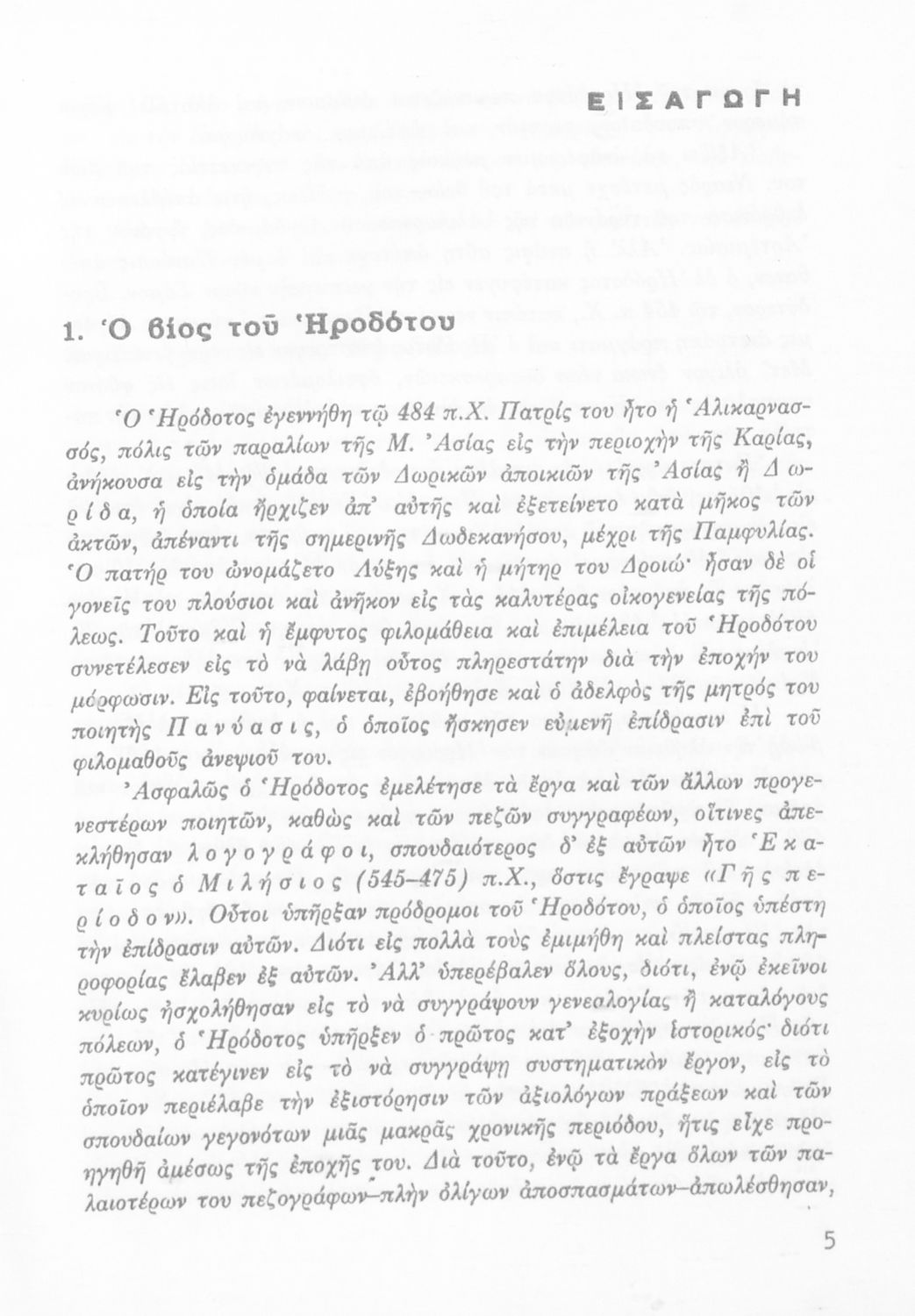 Σχολικό εγχειρίδιο Αρχαίων Ελληνικών Α΄ Γυμνασίου που περιλαμβάνει εισαγωγή στη ζωή και το έργο του Ηρόδοτου, και αποσπάσματα από τα 9 βιβλία της Ιστορίας του σε μετάφραση. Φέρει το σύμβολο της δικτατορίας.