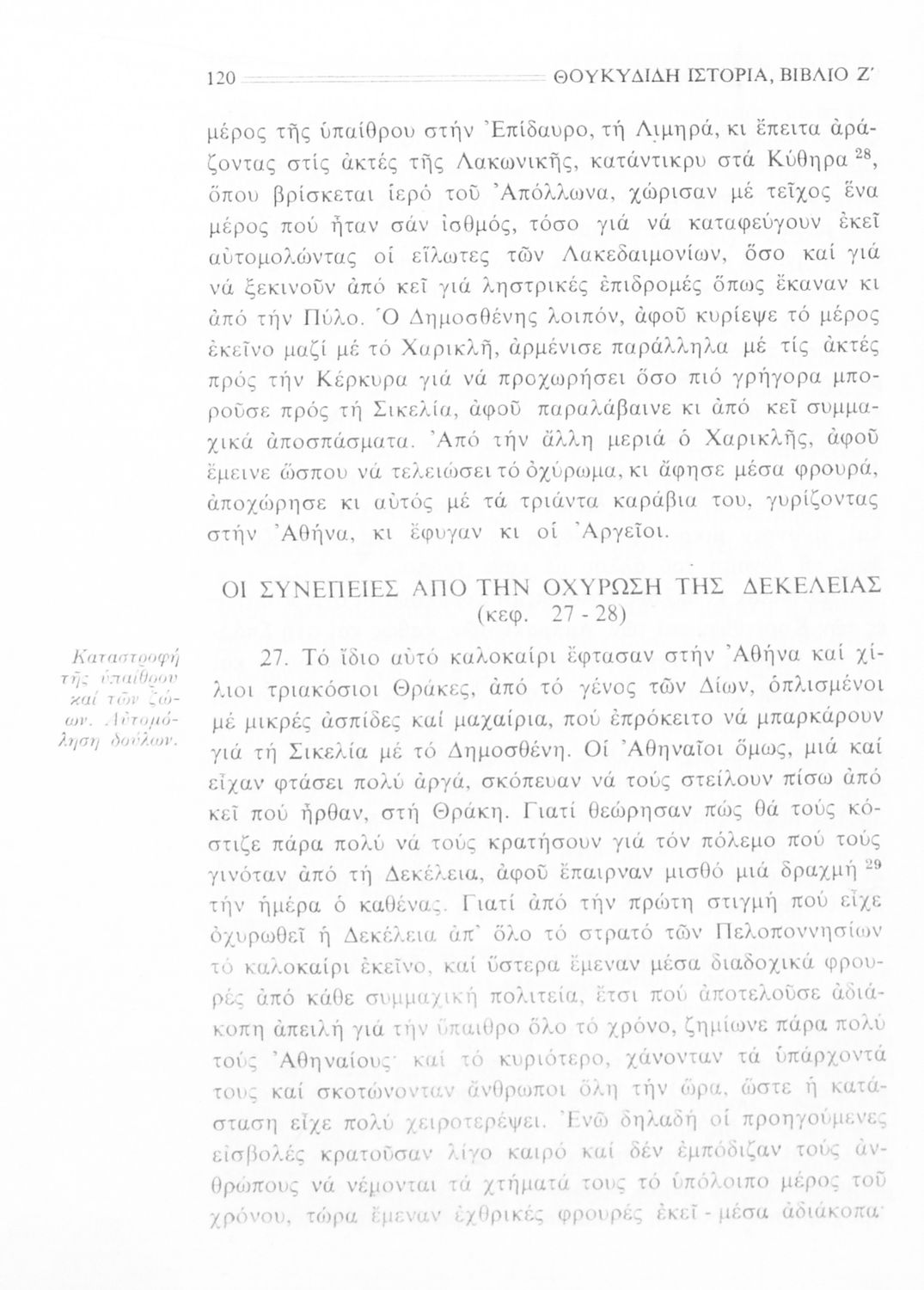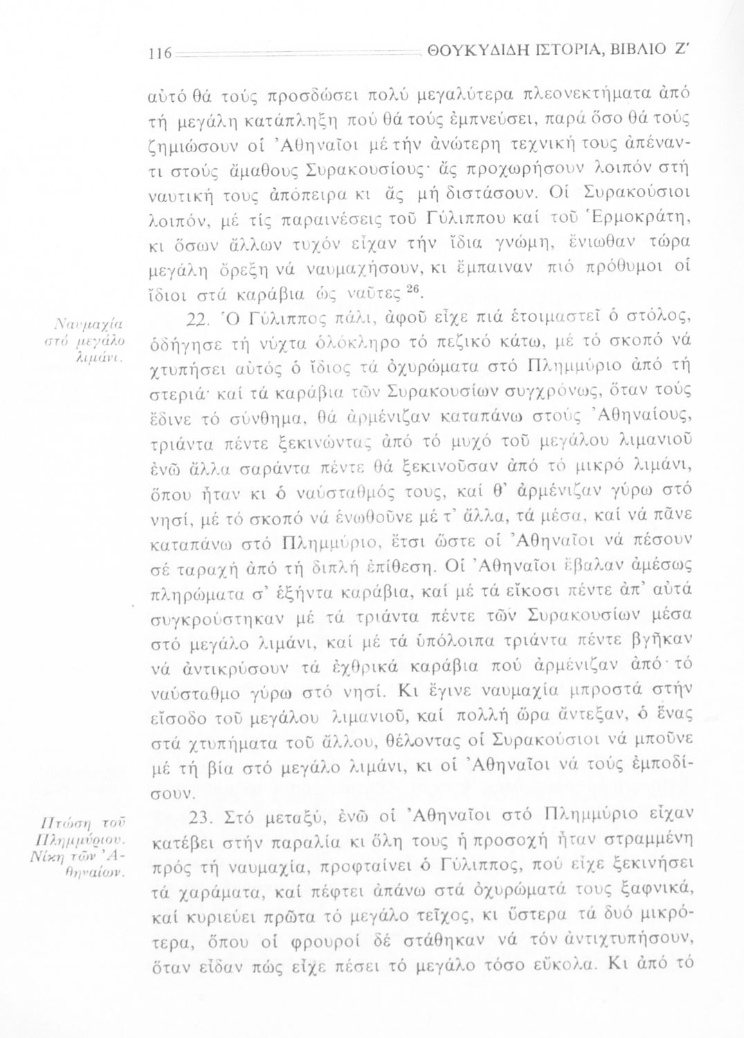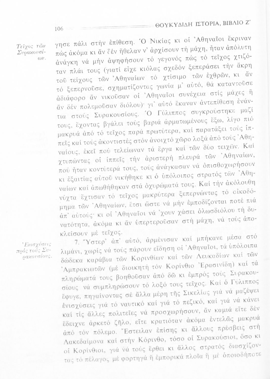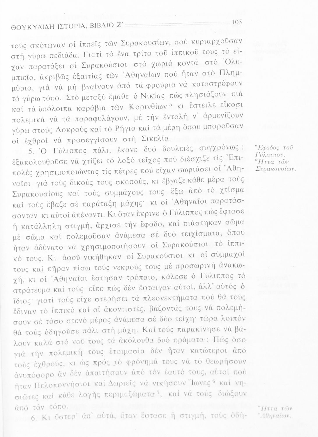 Σχολικό εγχειρίδιο Αρχαίων Ελληνικών Β΄ Γυμνασίου που περιλαμβάνει την μετάφραση των βιβλίων ΣΤ΄ και Ζ΄ της Ιστορίας του Θουκυδίδη, εισαγωγή στη ζωή και το έργο του, και ερμηνευτικά και πραγματολογικά σχόλια.