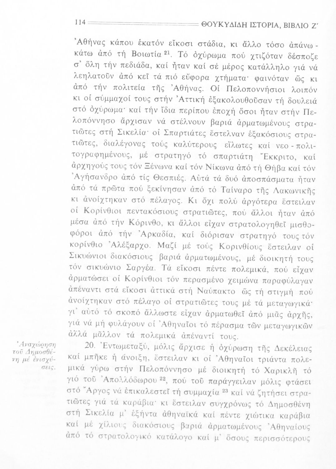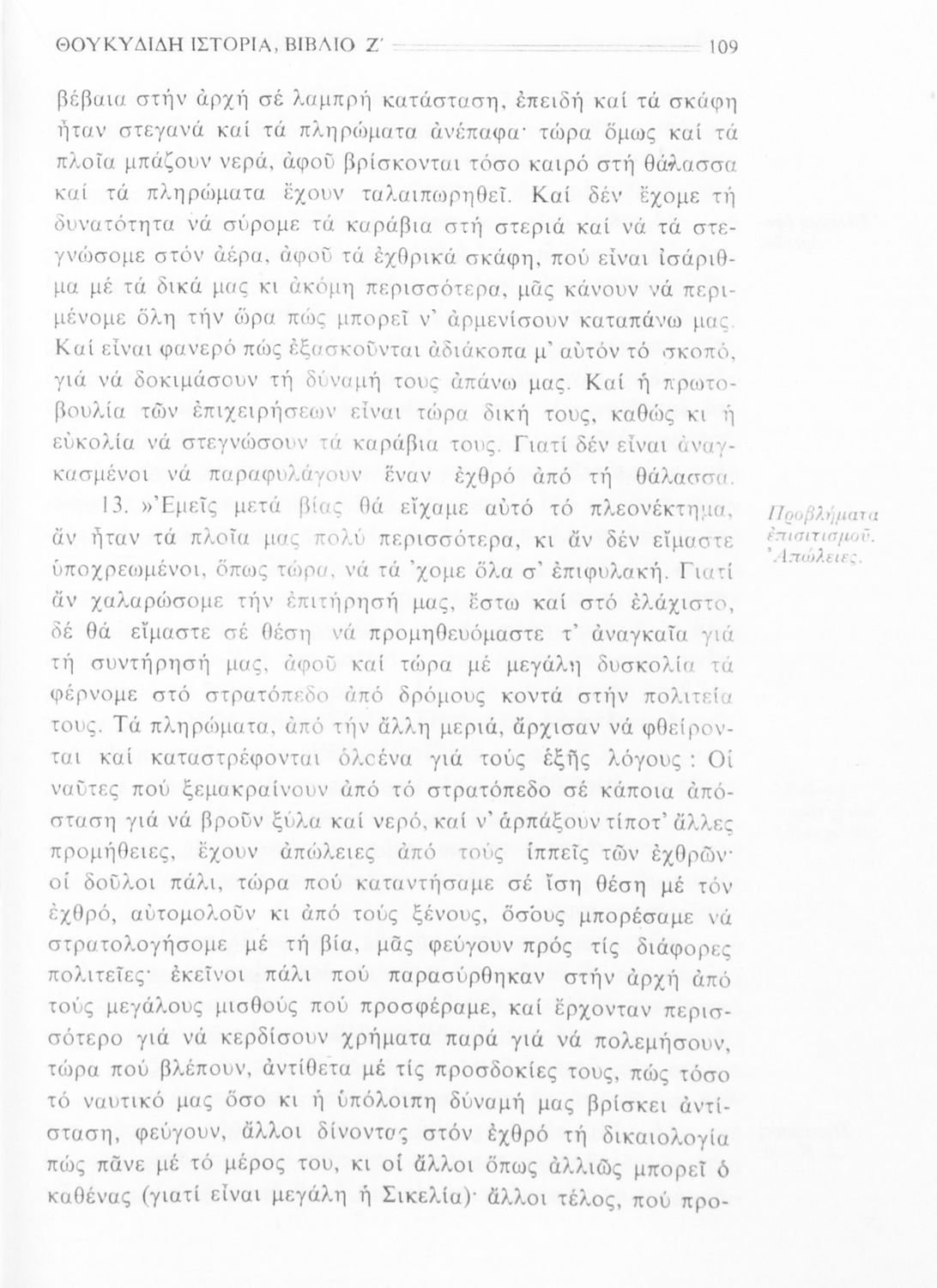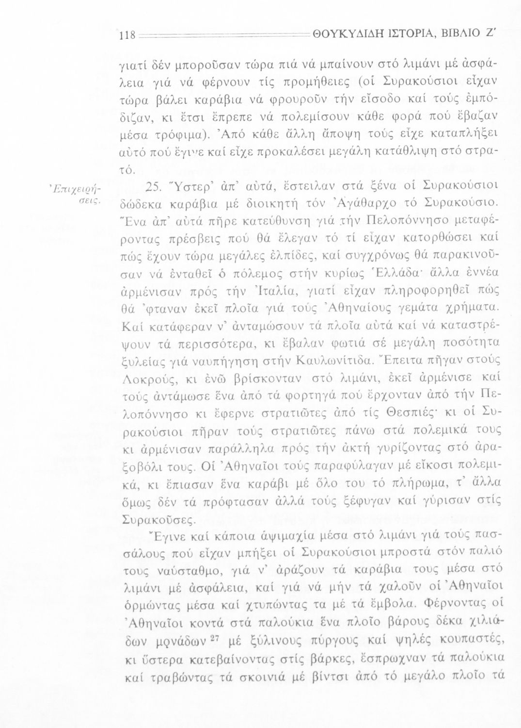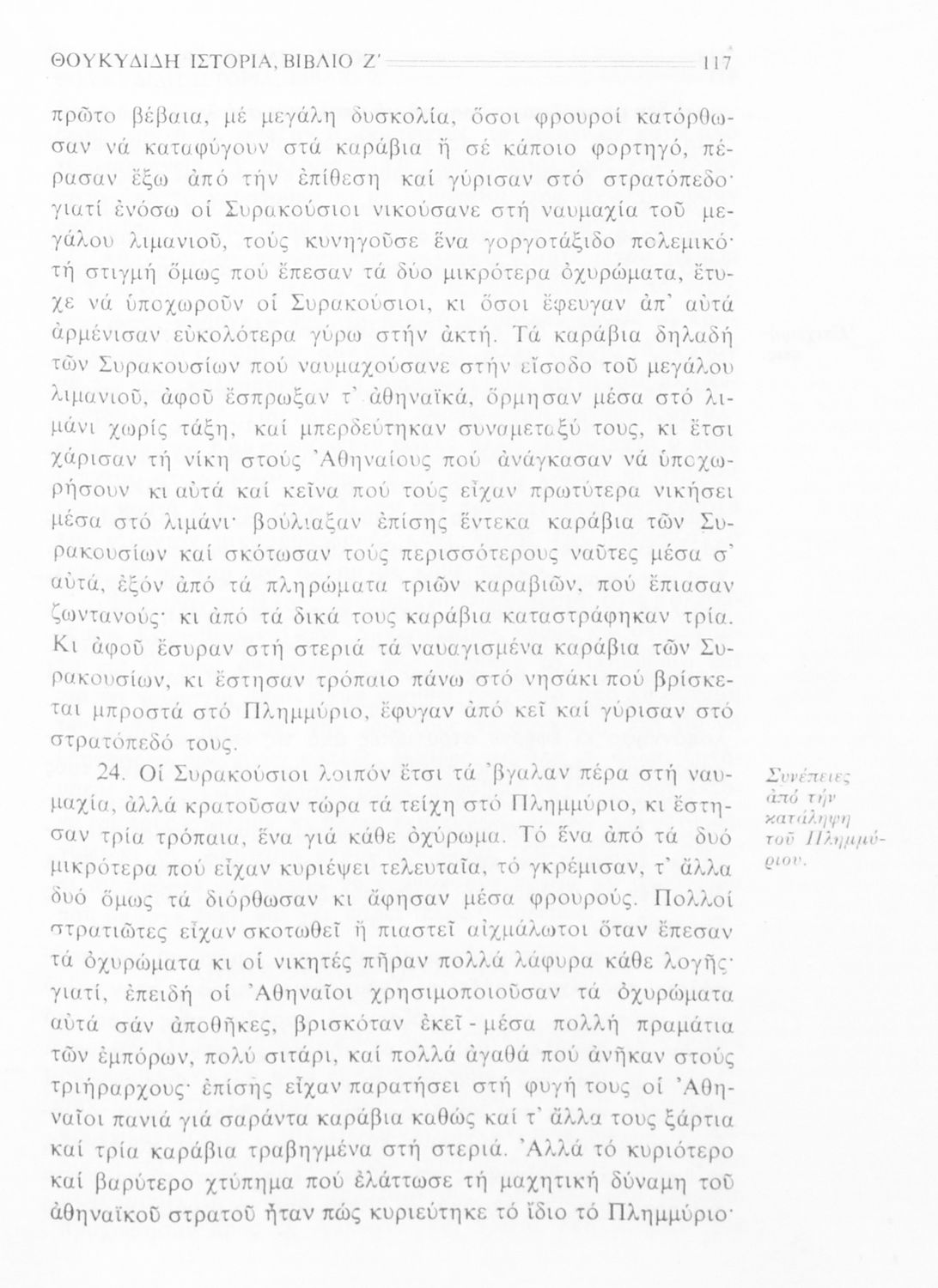 Σχολικό εγχειρίδιο Αρχαίων Ελληνικών Β΄ Γυμνασίου που περιλαμβάνει την μετάφραση των βιβλίων ΣΤ΄ και Ζ΄ της Ιστορίας του Θουκυδίδη, εισαγωγή στη ζωή και το έργο του, και ερμηνευτικά και πραγματολογικά σχόλια.