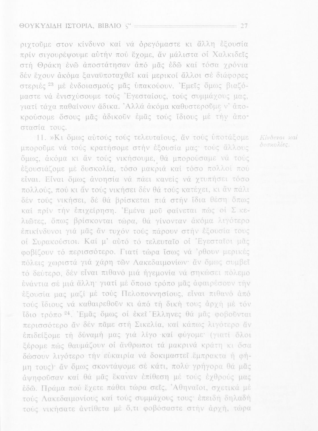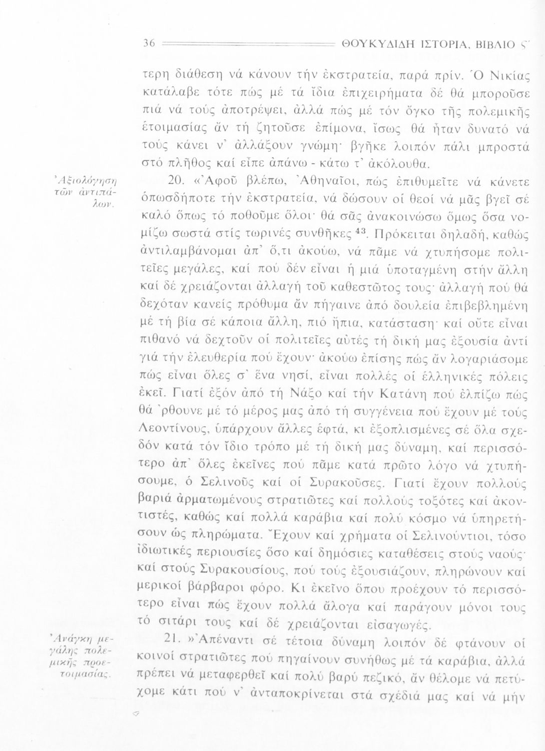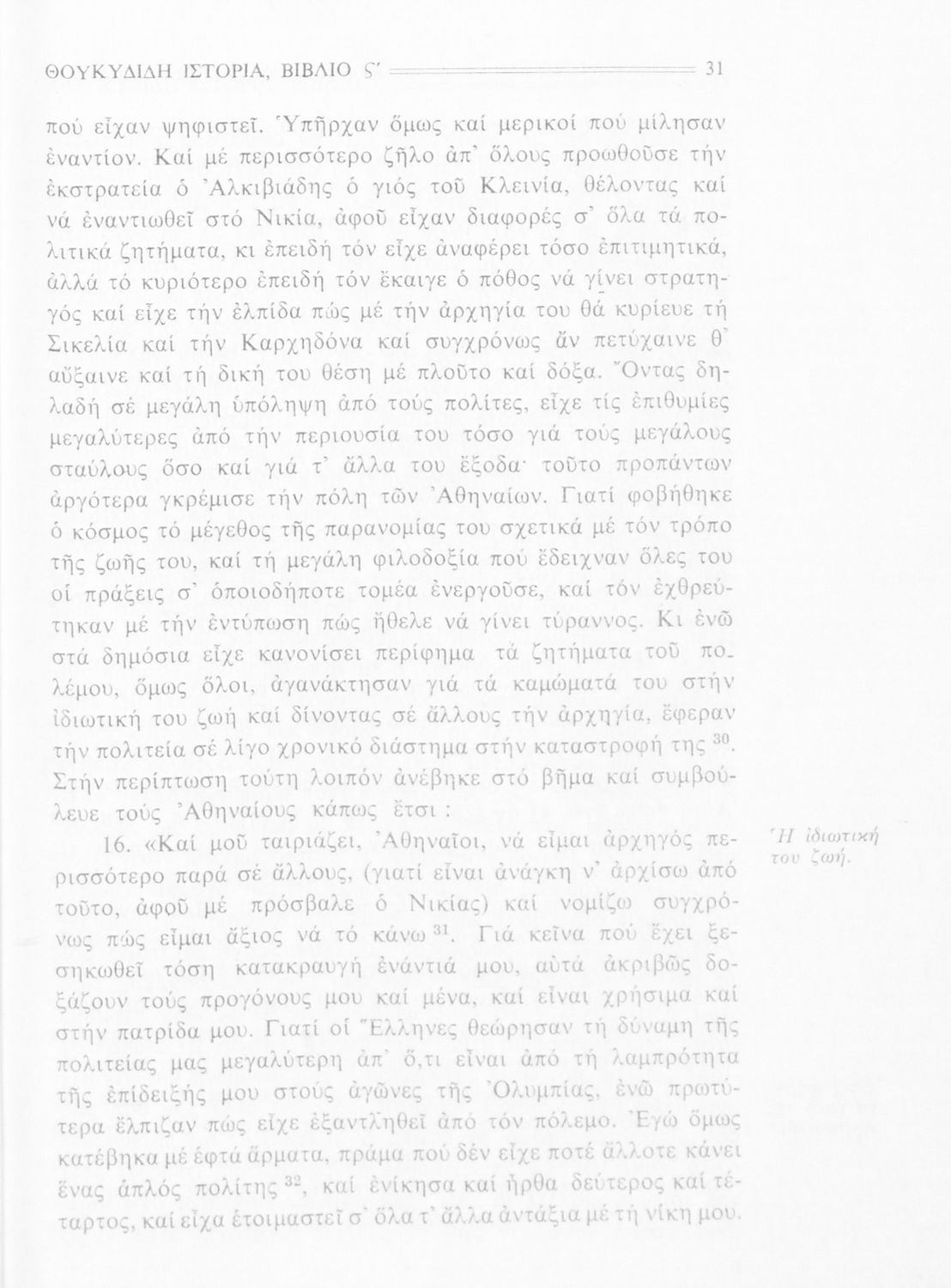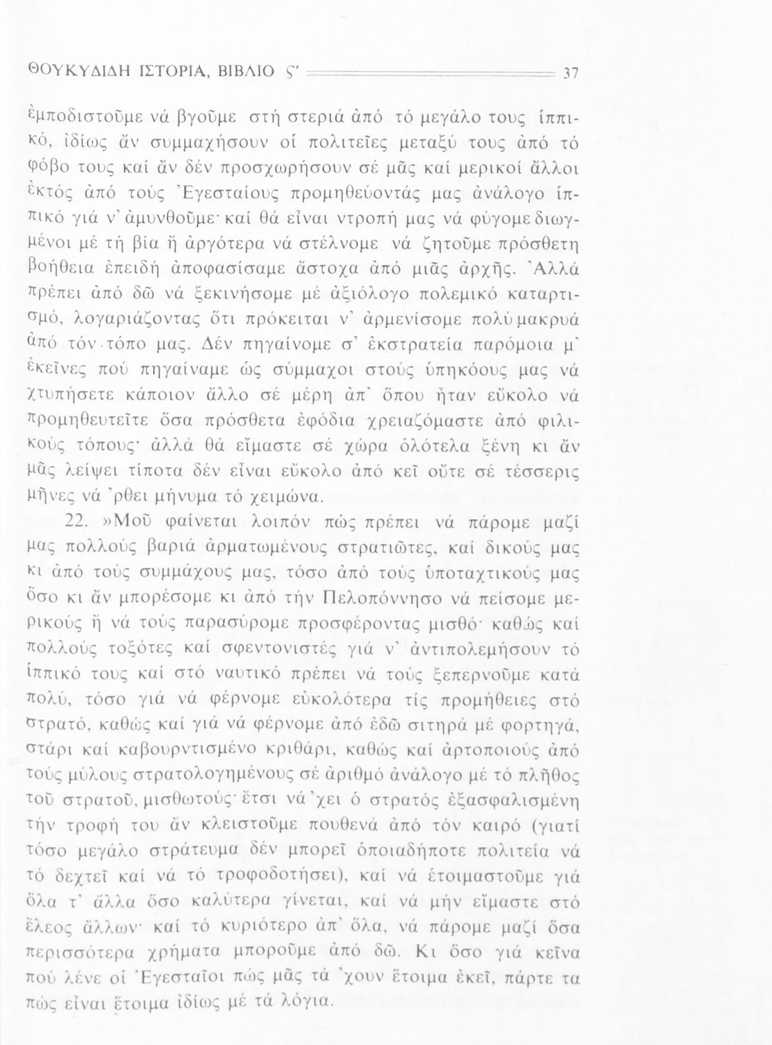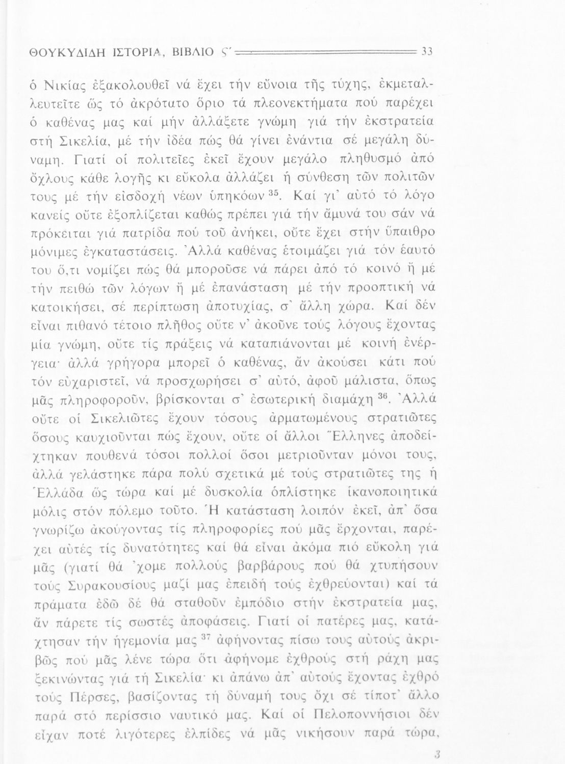 Σχολικό εγχειρίδιο Αρχαίων Ελληνικών Β΄ Γυμνασίου που περιλαμβάνει την μετάφραση των βιβλίων ΣΤ΄ και Ζ΄ της Ιστορίας του Θουκυδίδη, εισαγωγή στη ζωή και το έργο του, και ερμηνευτικά και πραγματολογικά σχόλια.