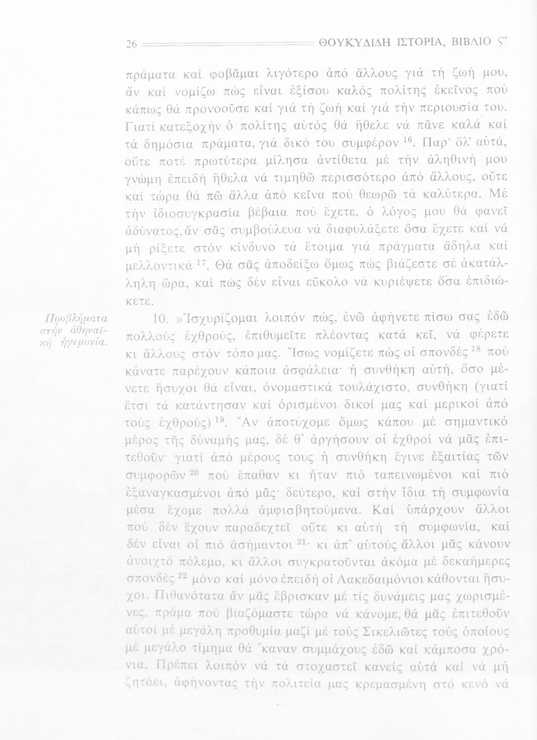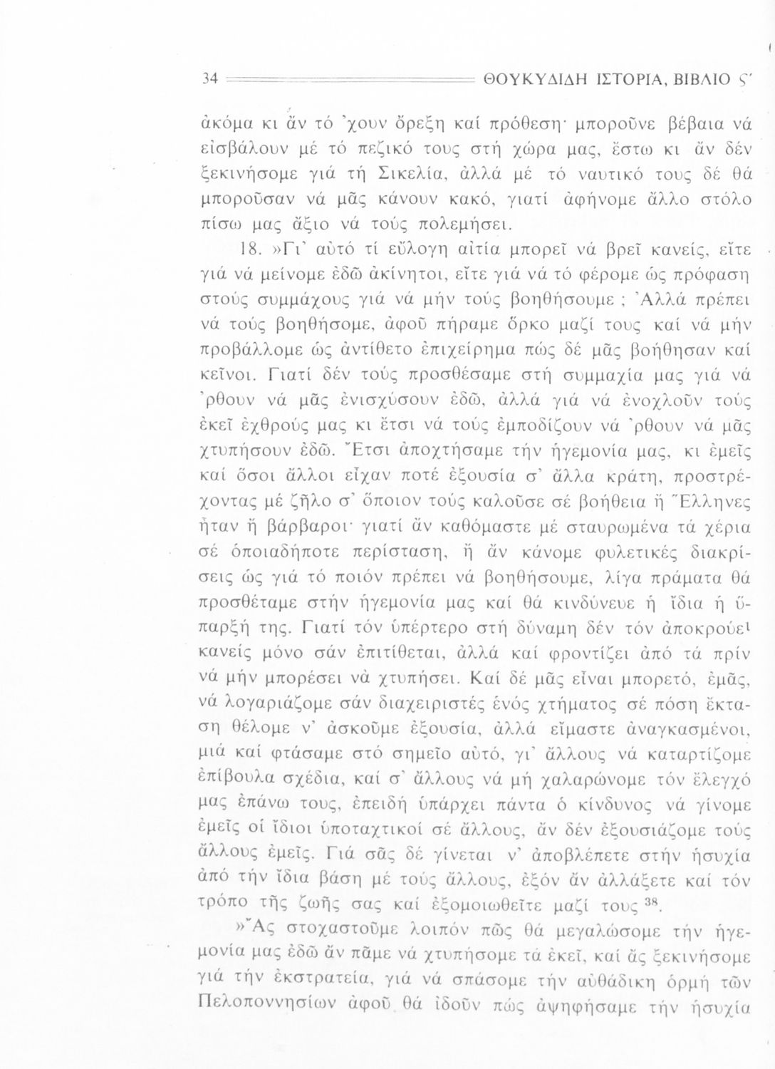 Σχολικό εγχειρίδιο Αρχαίων Ελληνικών Δ΄, Ε΄ και ΣΤ΄ Γυμνασίου που περιέχει αποσπάσματα από το έργο του Θουκυδίδη Ιστορία, ερμηνευτικά και πραγματολογικά σχόλια, και γραμματικές παρατηρήσεις.