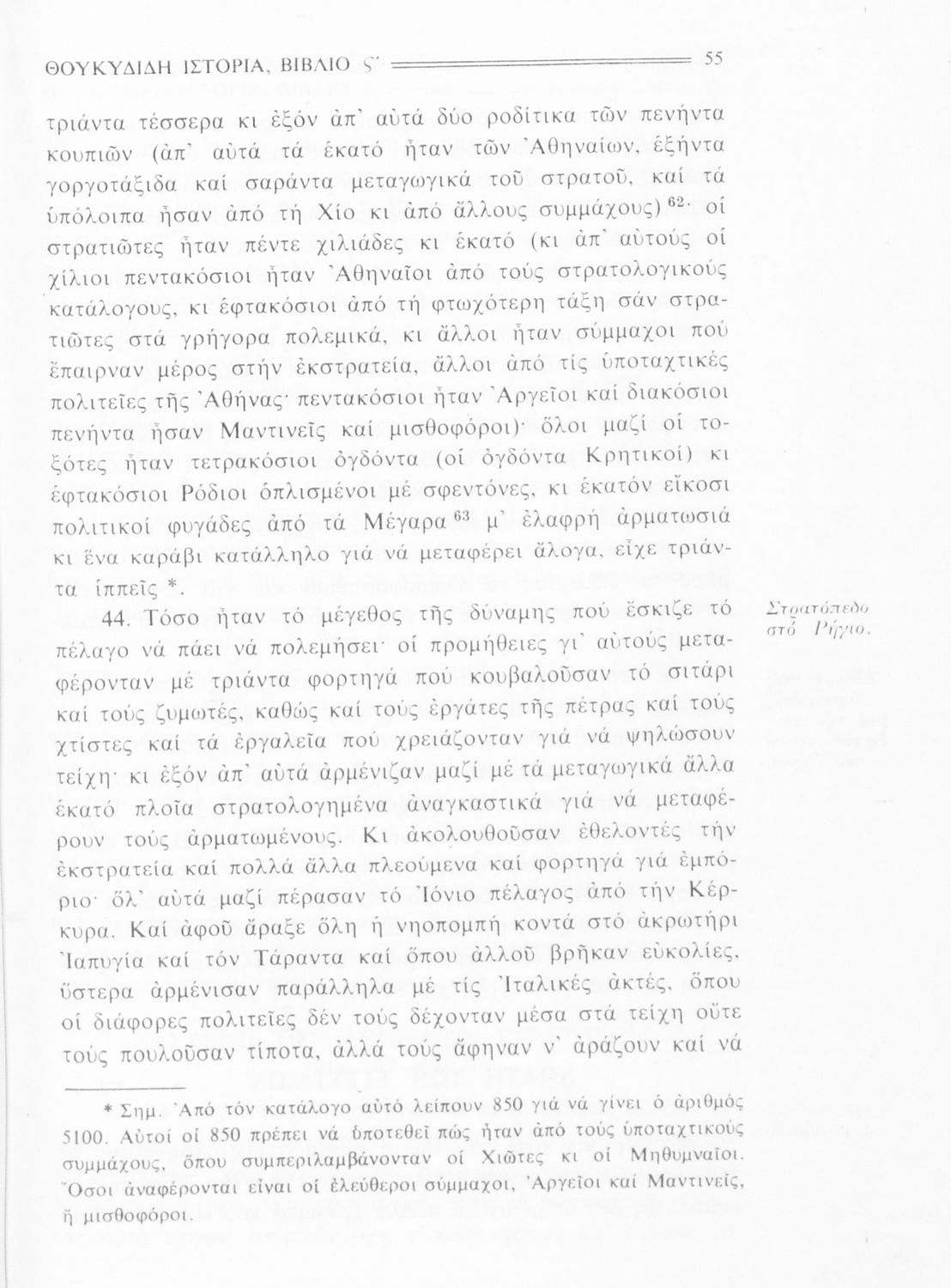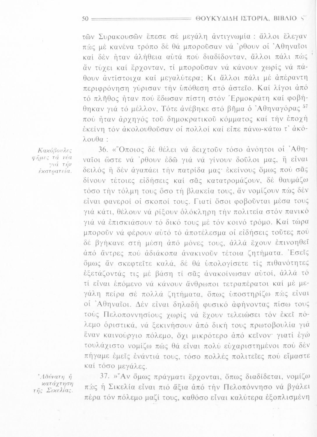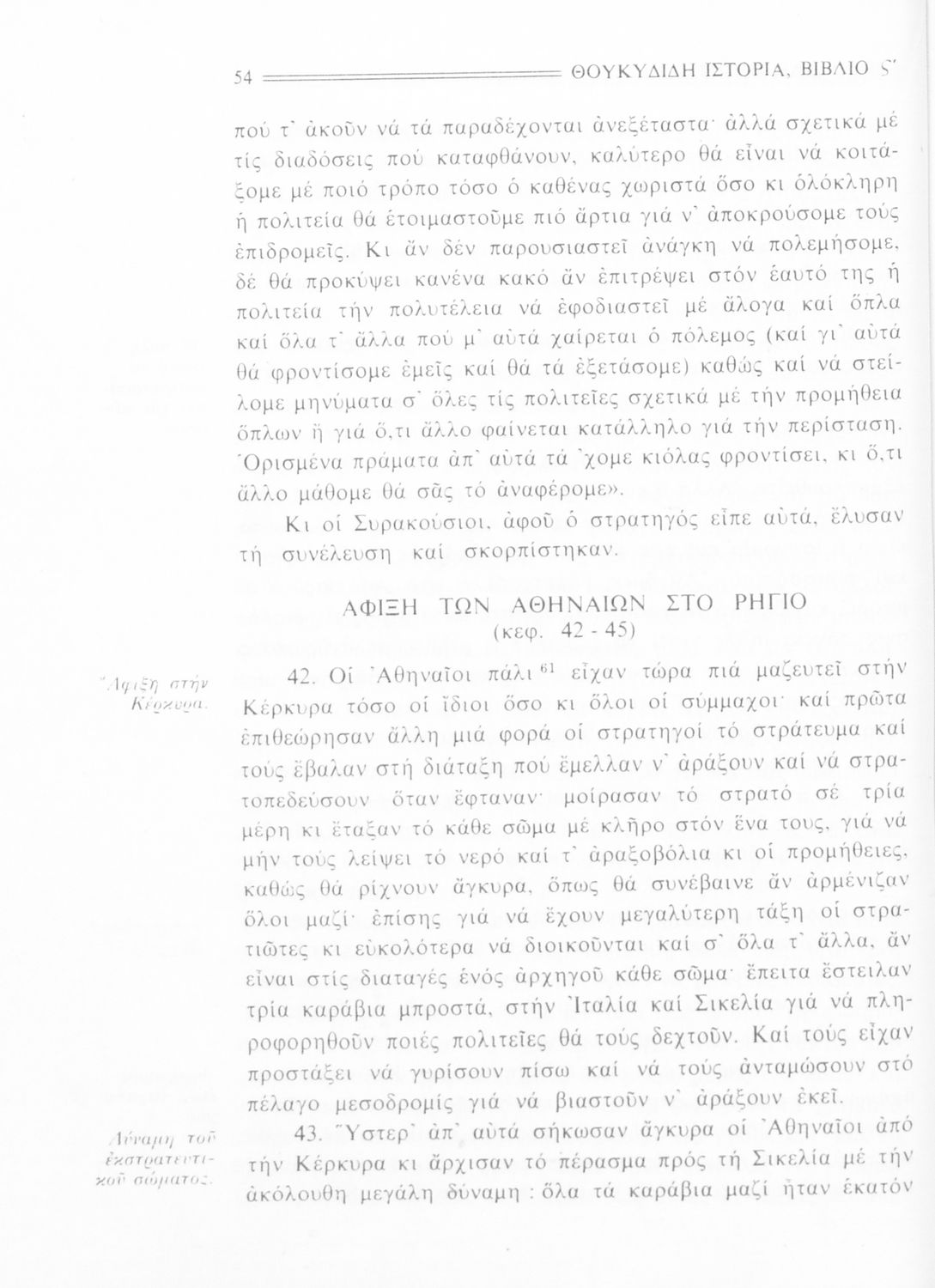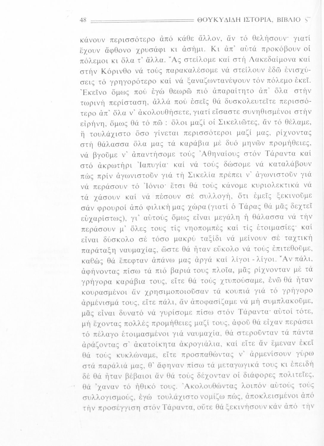 Σχολικό εγχειρίδιο Αρχαίων Ελληνικών Β΄ Γυμνασίου που περιλαμβάνει την μετάφραση των βιβλίων ΣΤ΄ και Ζ΄ της Ιστορίας του Θουκυδίδη, εισαγωγή στη ζωή και το έργο του, και ερμηνευτικά και πραγματολογικά σχόλια.