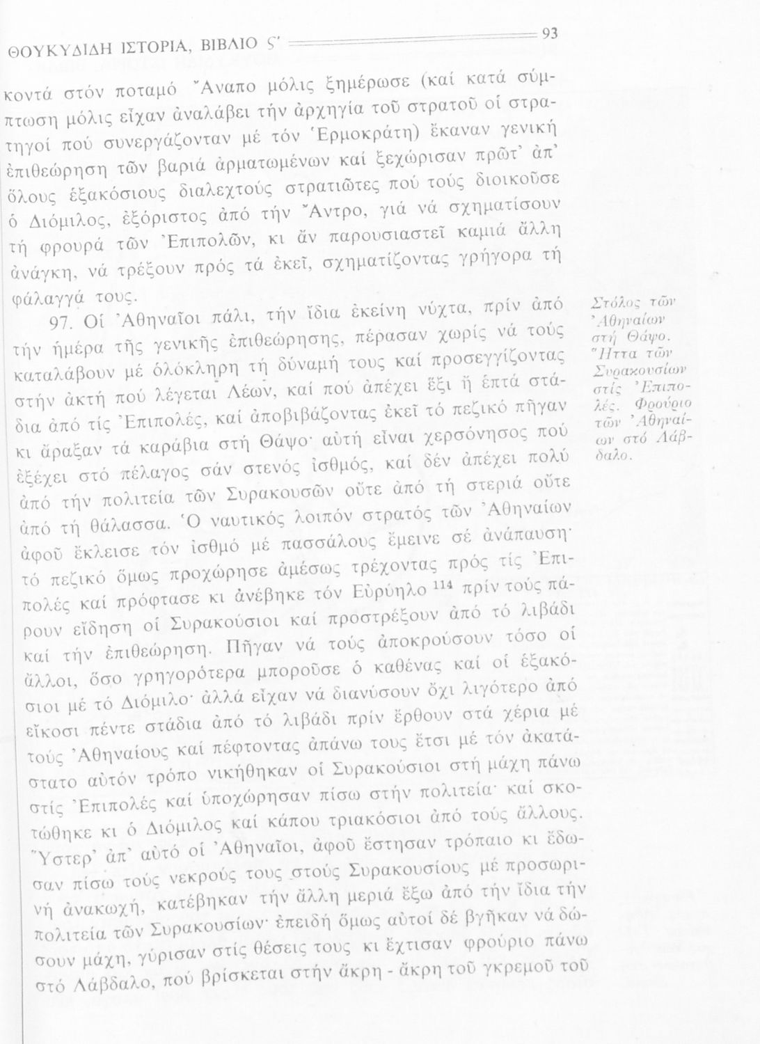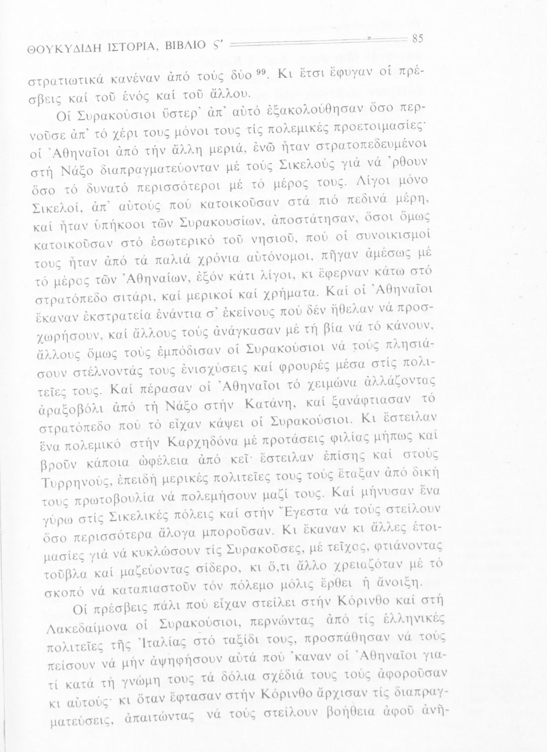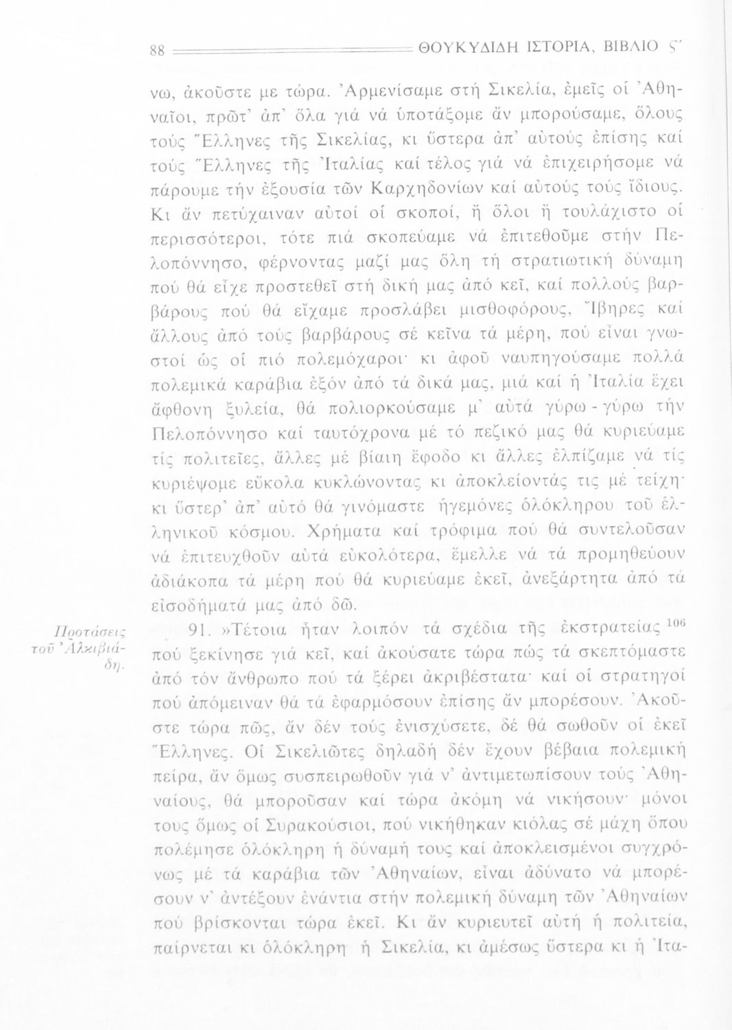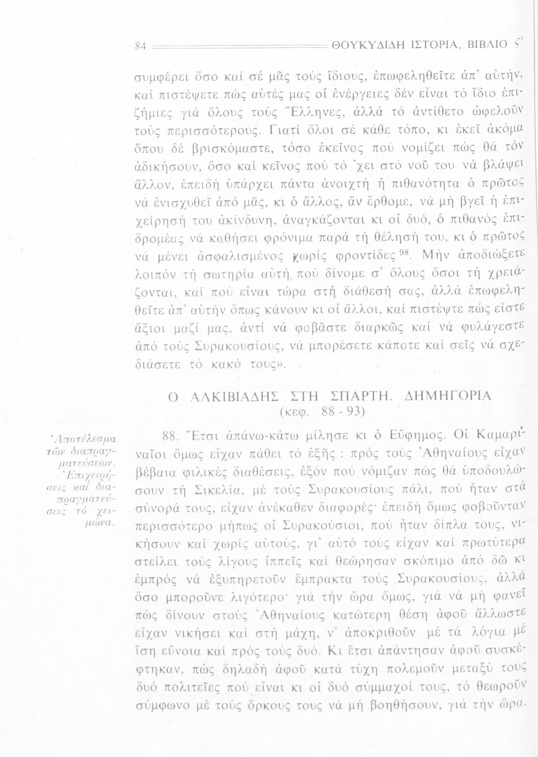 Σχολικό εγχειρίδιο Αρχαίων Ελληνικών Β΄ Γυμνασίου που περιλαμβάνει την μετάφραση των βιβλίων ΣΤ΄ και Ζ΄ της Ιστορίας του Θουκυδίδη, εισαγωγή στη ζωή και το έργο του, και ερμηνευτικά και πραγματολογικά σχόλια.
