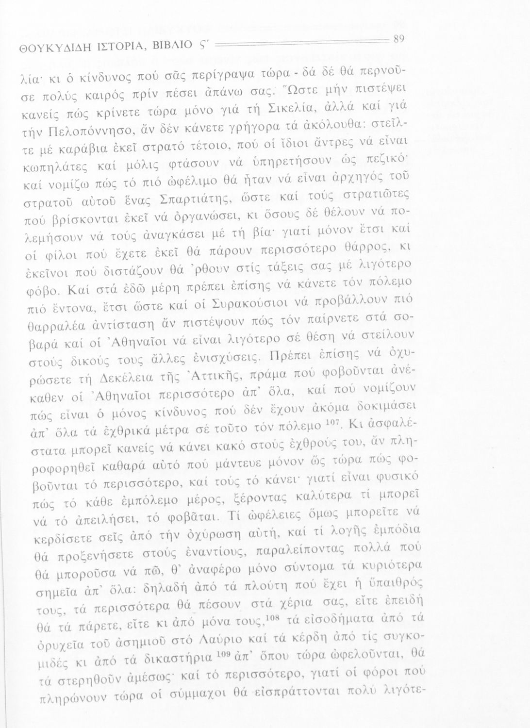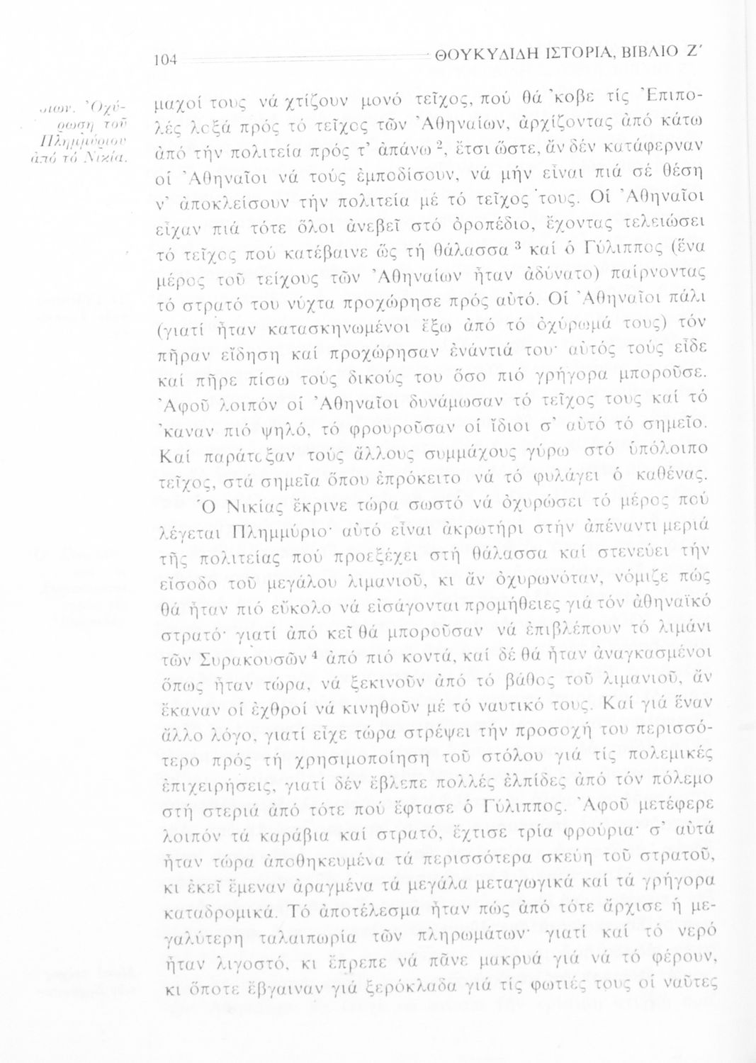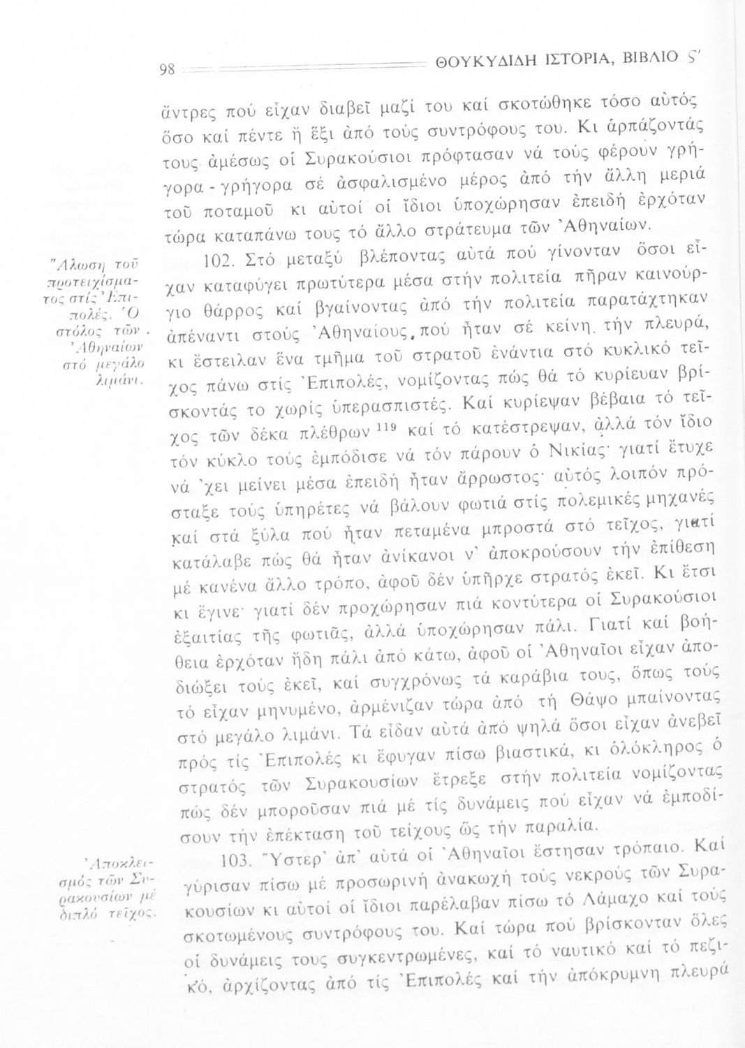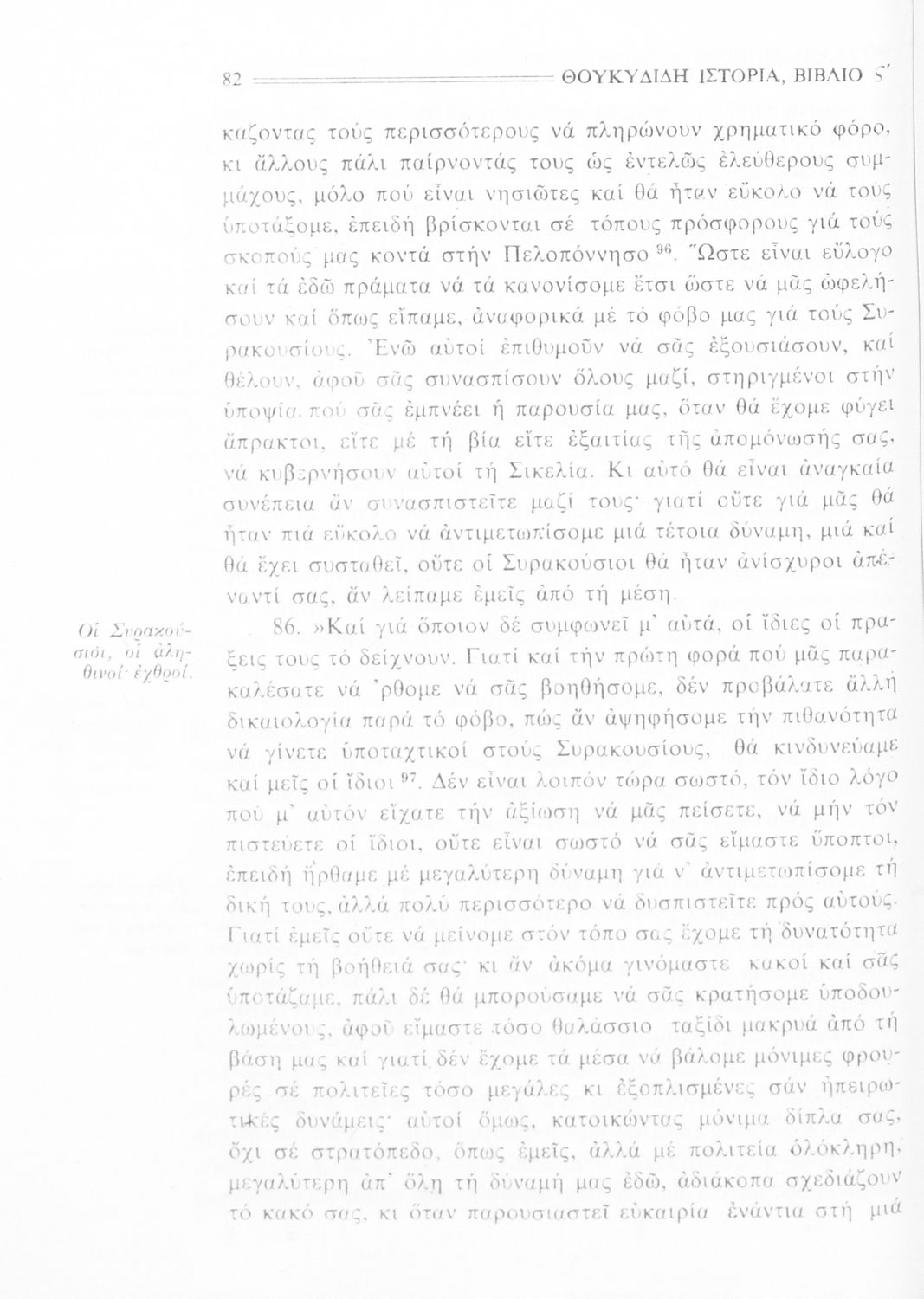 Σχολικό εγχειρίδιο Αρχαίων Ελληνικών Β΄ Γυμνασίου που περιλαμβάνει την μετάφραση των βιβλίων ΣΤ΄ και Ζ΄ της Ιστορίας του Θουκυδίδη, εισαγωγή στη ζωή και το έργο του, και ερμηνευτικά και πραγματολογικά σχόλια.