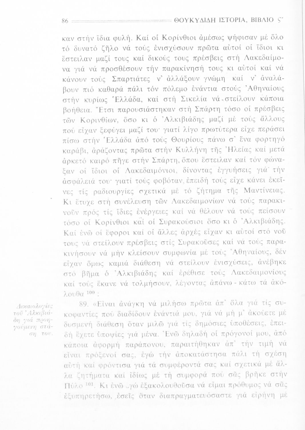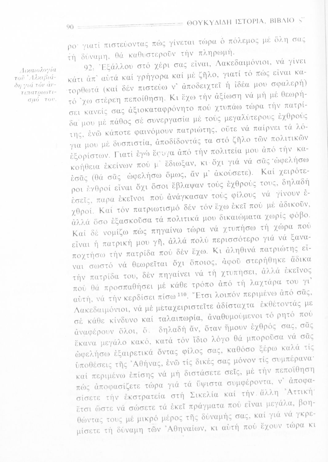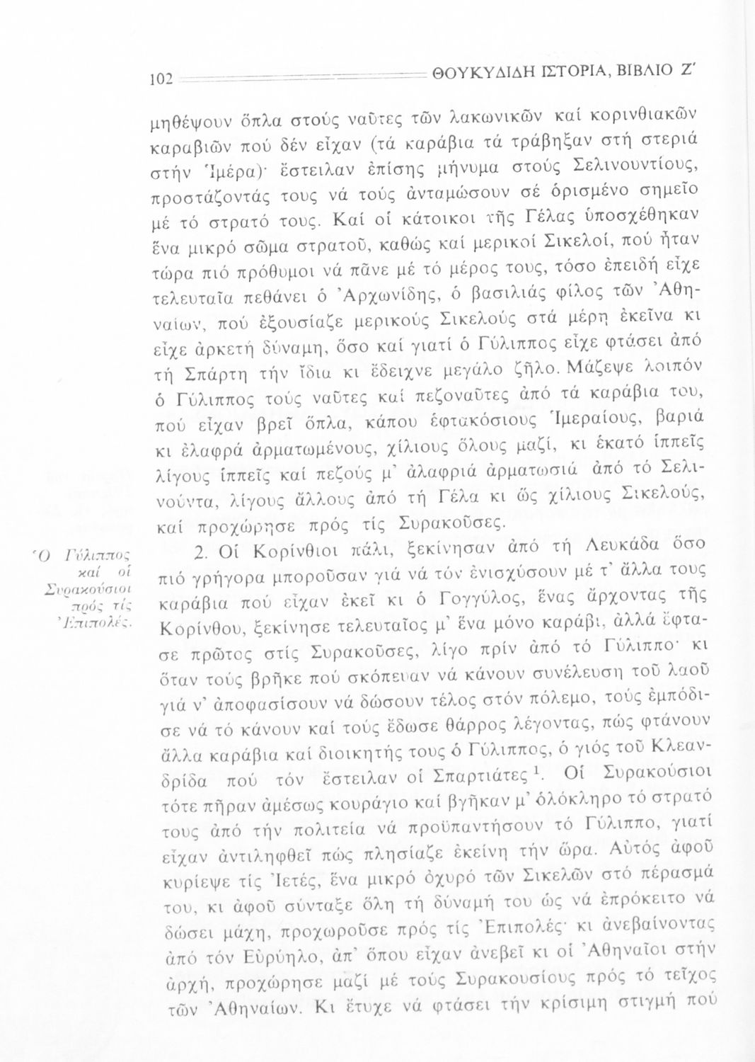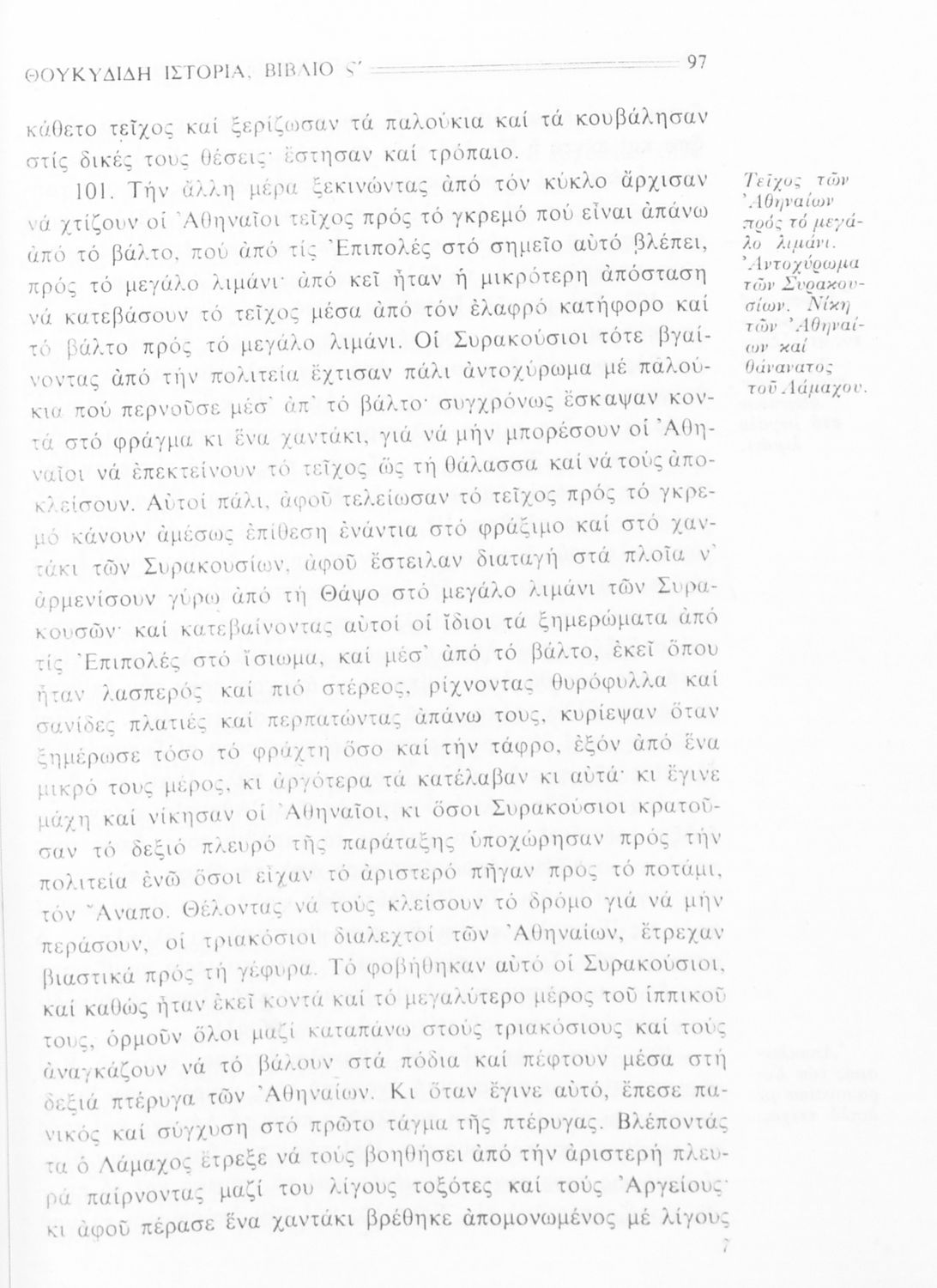 Σχολικό εγχειρίδιο Αρχαίων Ελληνικών Β΄ Γυμνασίου που περιλαμβάνει την μετάφραση των βιβλίων ΣΤ΄ και Ζ΄ της Ιστορίας του Θουκυδίδη, εισαγωγή στη ζωή και το έργο του, και ερμηνευτικά και πραγματολογικά σχόλια.