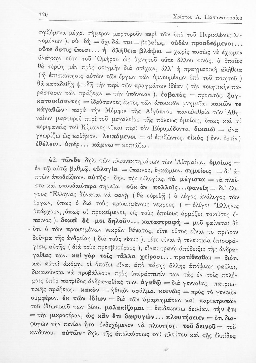 Θουκυδίδης, Χρισ. Παπαναστασίου (σχόλια)