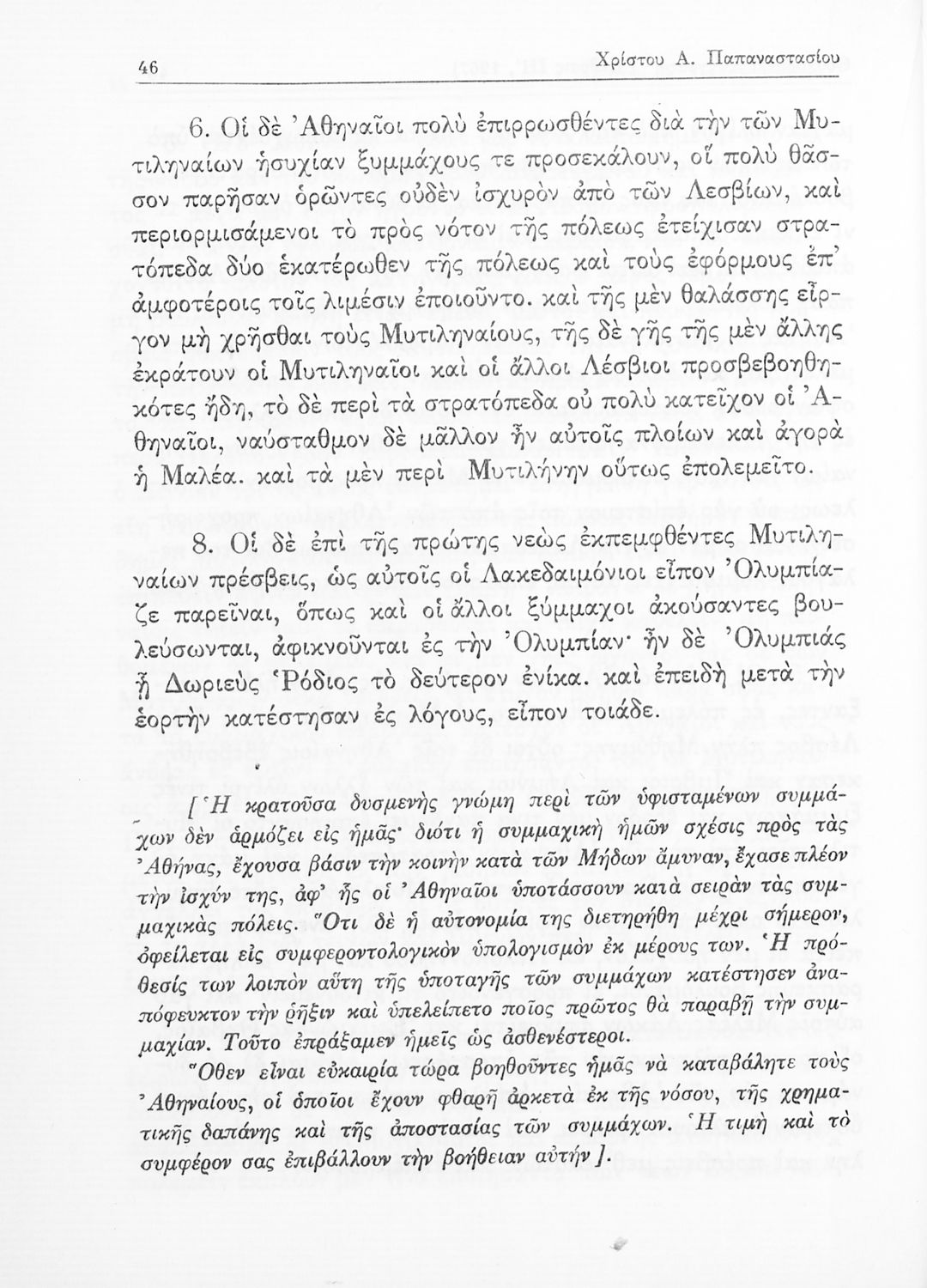 Θουκυδίδης, Χρισ. Παπαναστασίου (σχόλια)