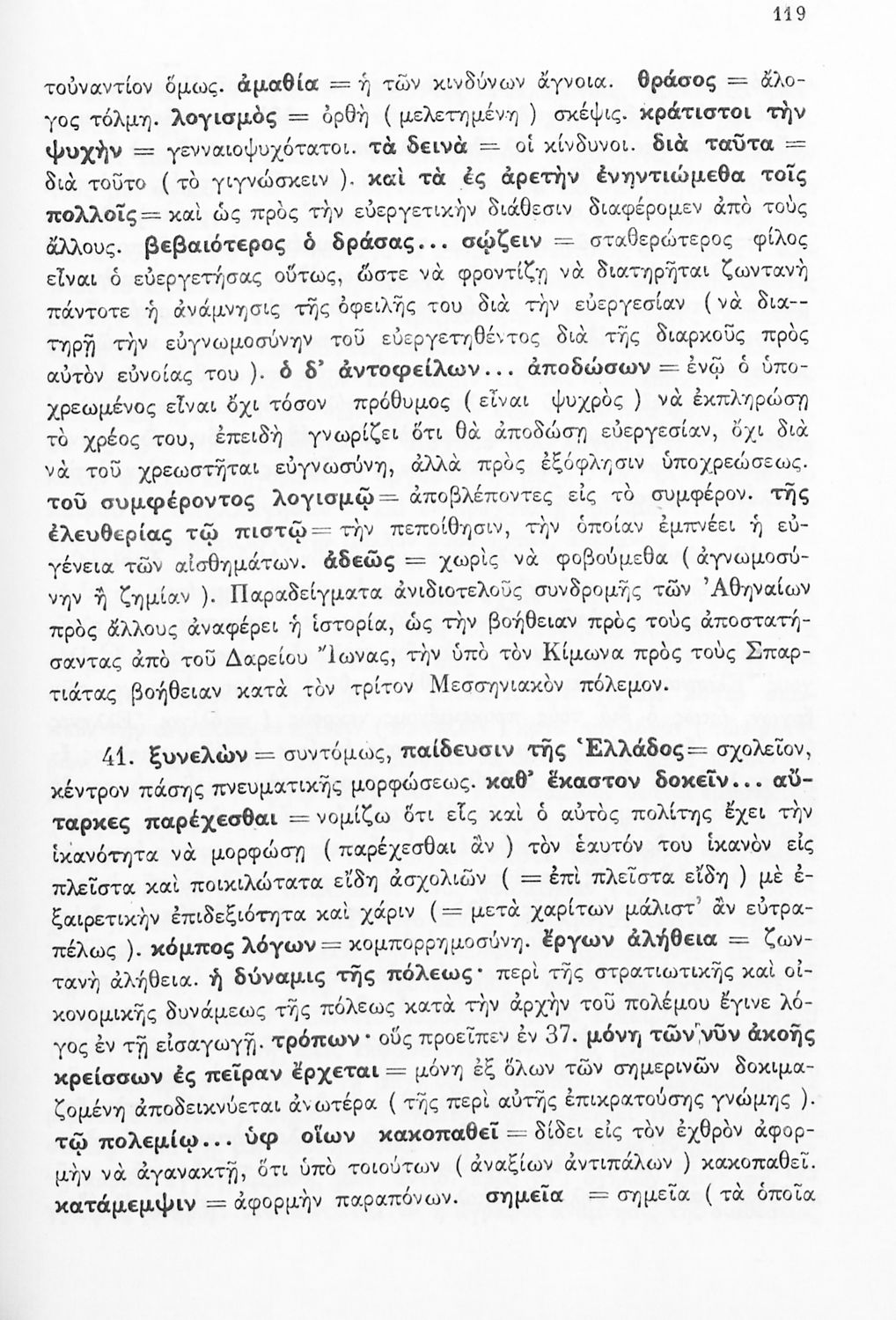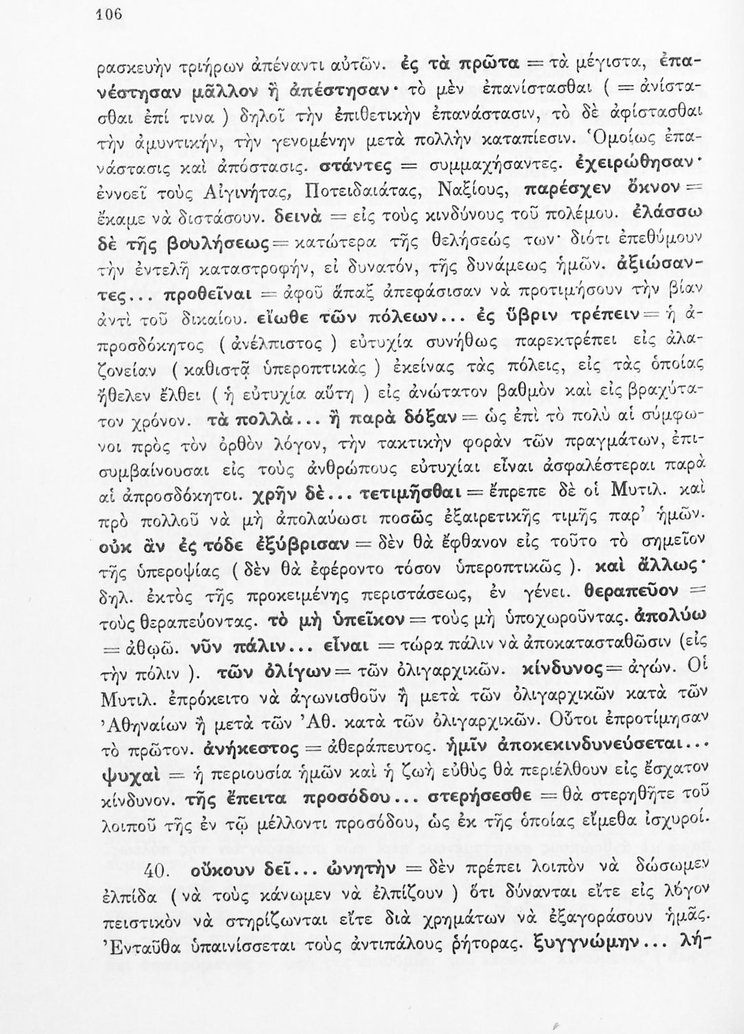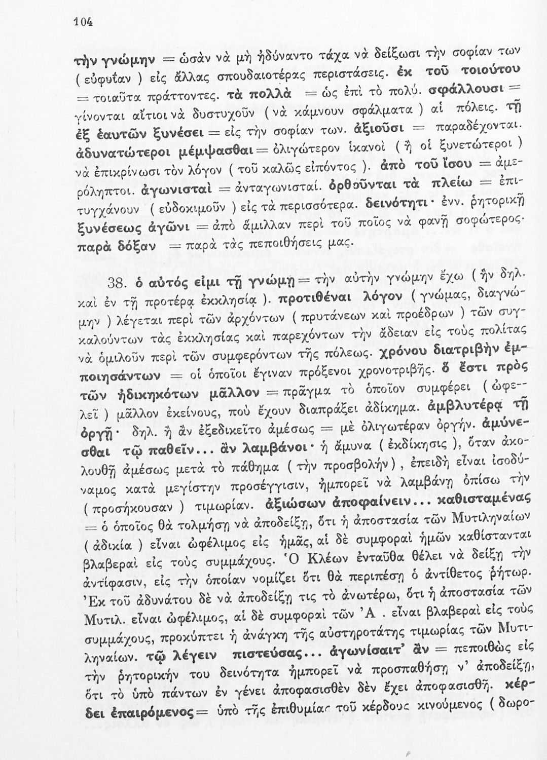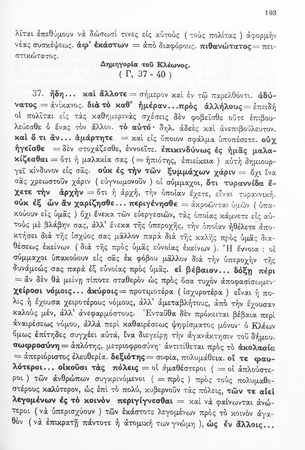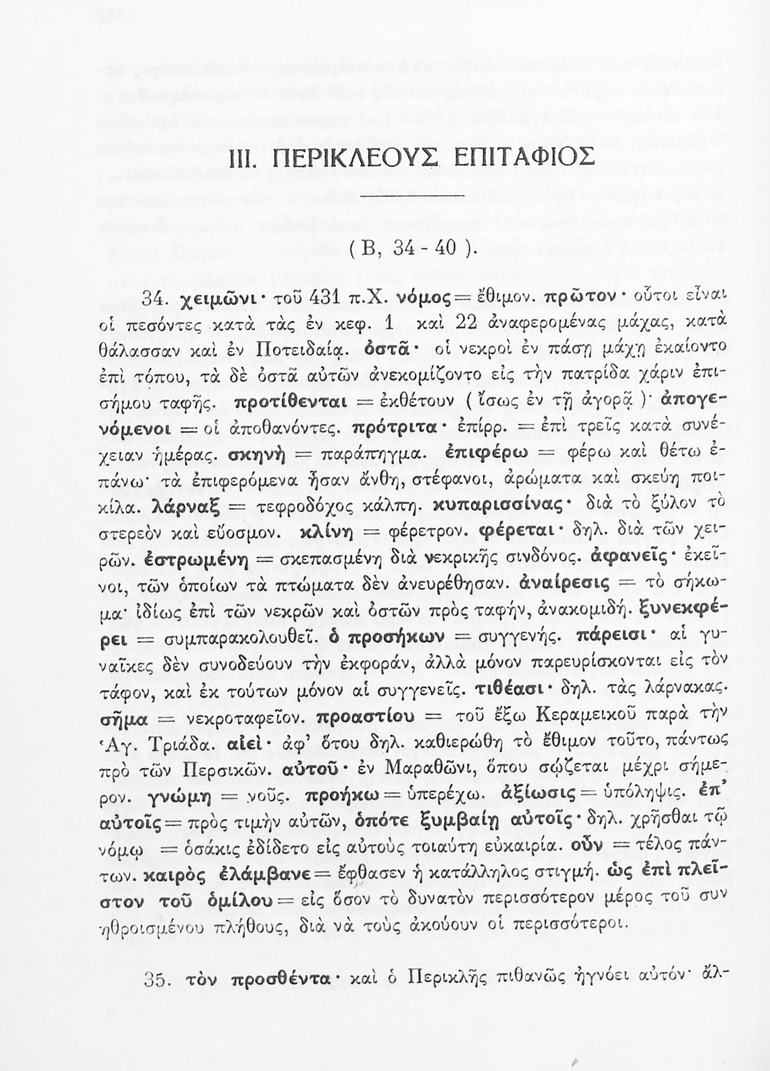 Σχολικό εγχειρίδιο Αρχαίων Ελληνικών Δ΄ Γυμνασίου που περιέχει εισαγωγή στη ζωή και το έργο του Θουκυδίδη, αποσπάσματα από τα Πλαταιϊκά, τα Λεσβιακά και τον Επιτάφιο του Περικλή και ερμηνευτικές σημειώσεις. Φέρει το σύμβολο της δικτατορίας.