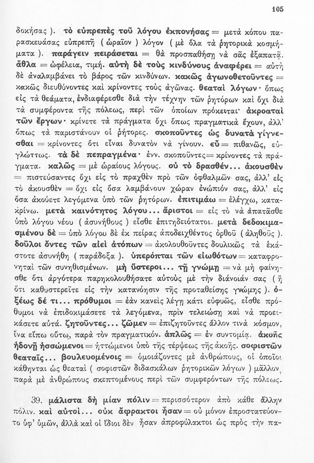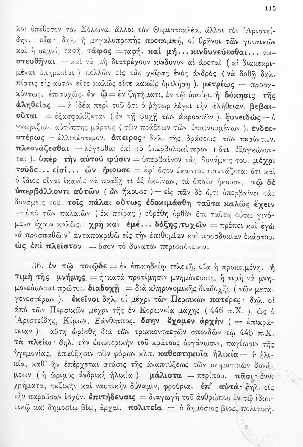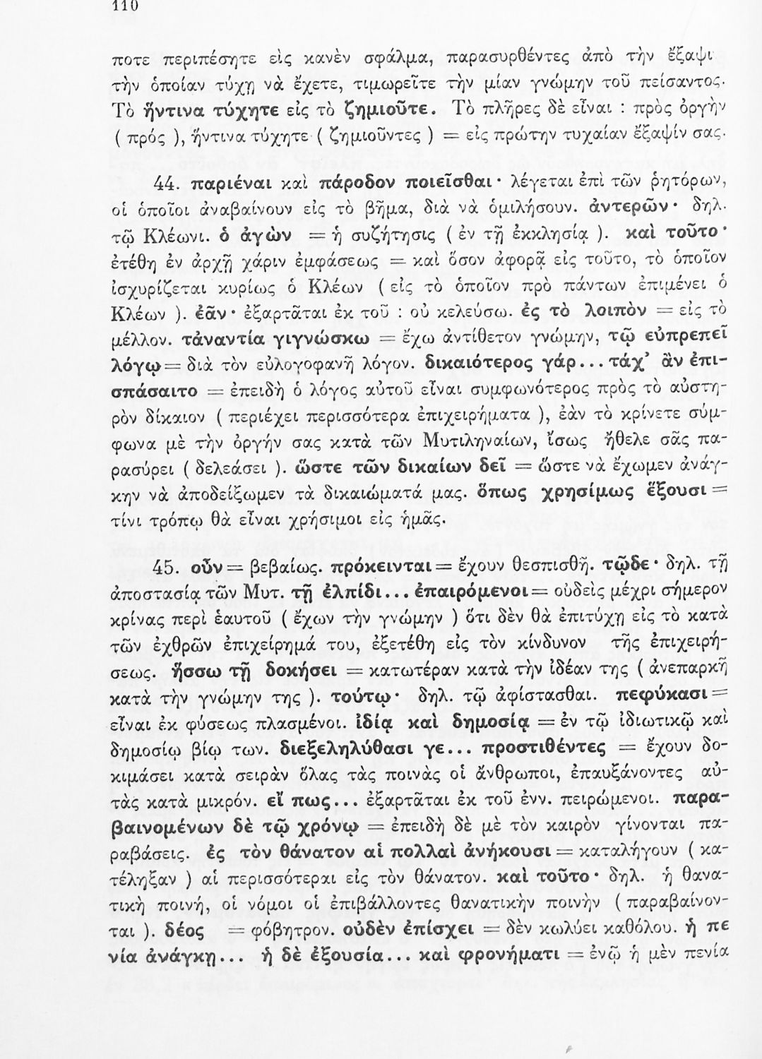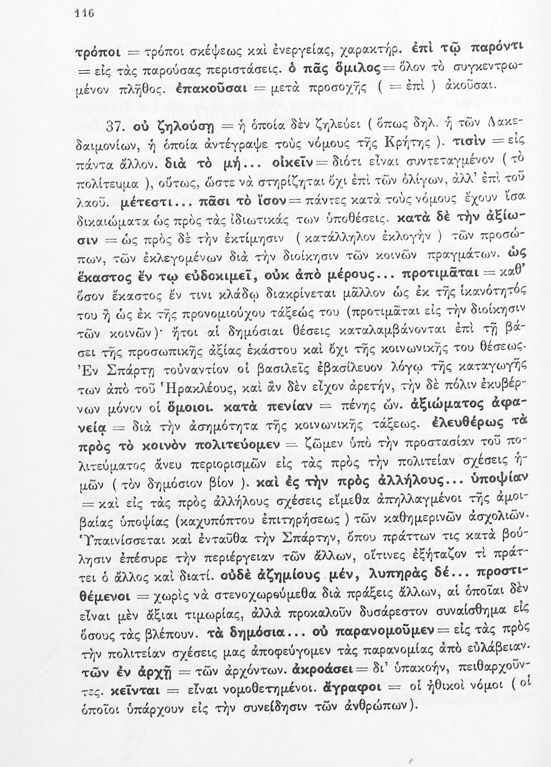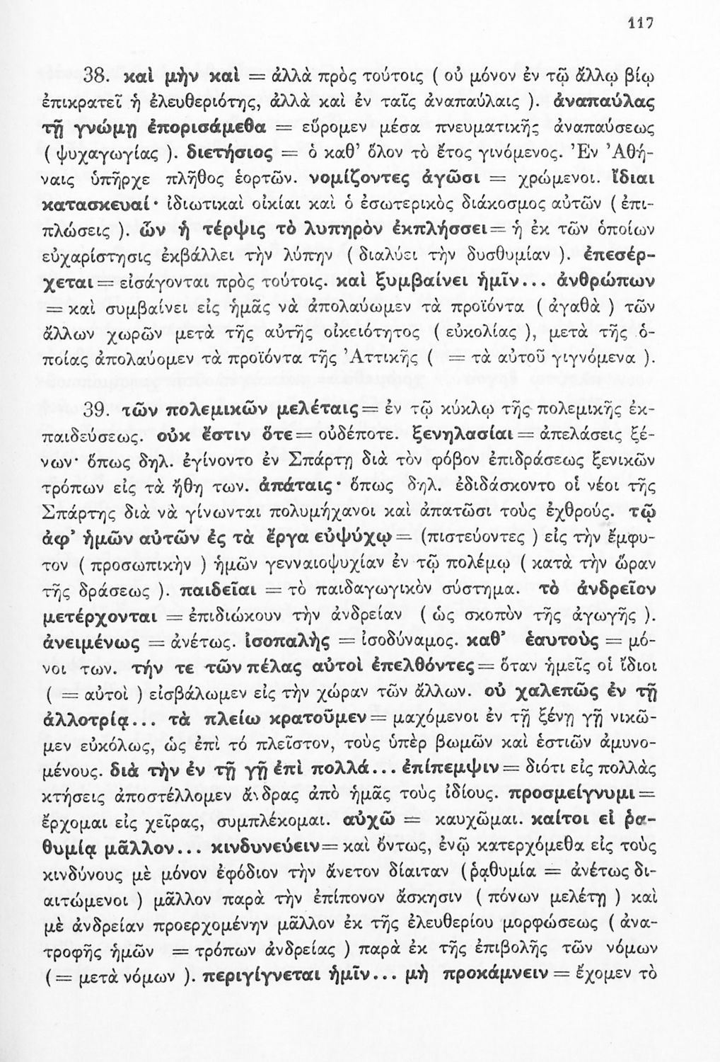 Σχολικό εγχειρίδιο Αρχαίων Ελληνικών Δ΄ Γυμνασίου που περιέχει εισαγωγή στη ζωή και το έργο του Θουκυδίδη, αποσπάσματα από τα Πλαταιϊκά, τα Λεσβιακά και τον Επιτάφιο του Περικλή και ερμηνευτικές σημειώσεις. Φέρει το σύμβολο της δικτατορίας.