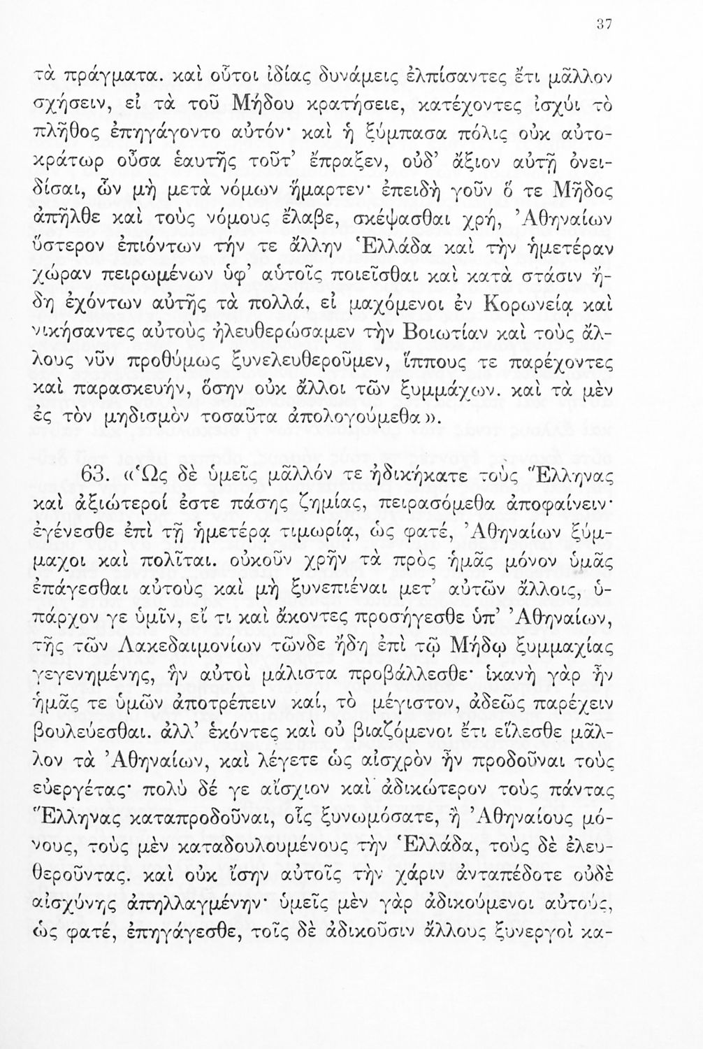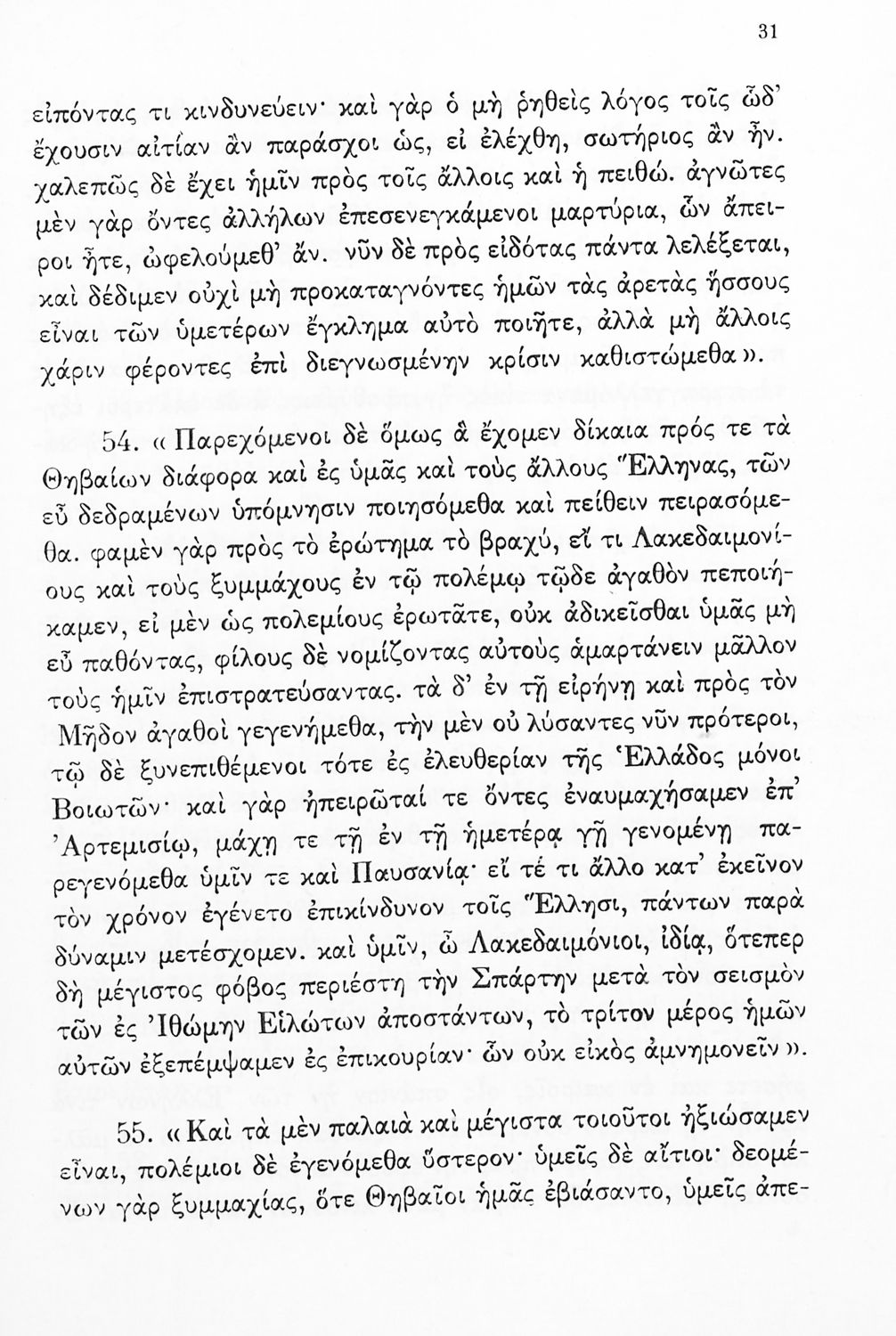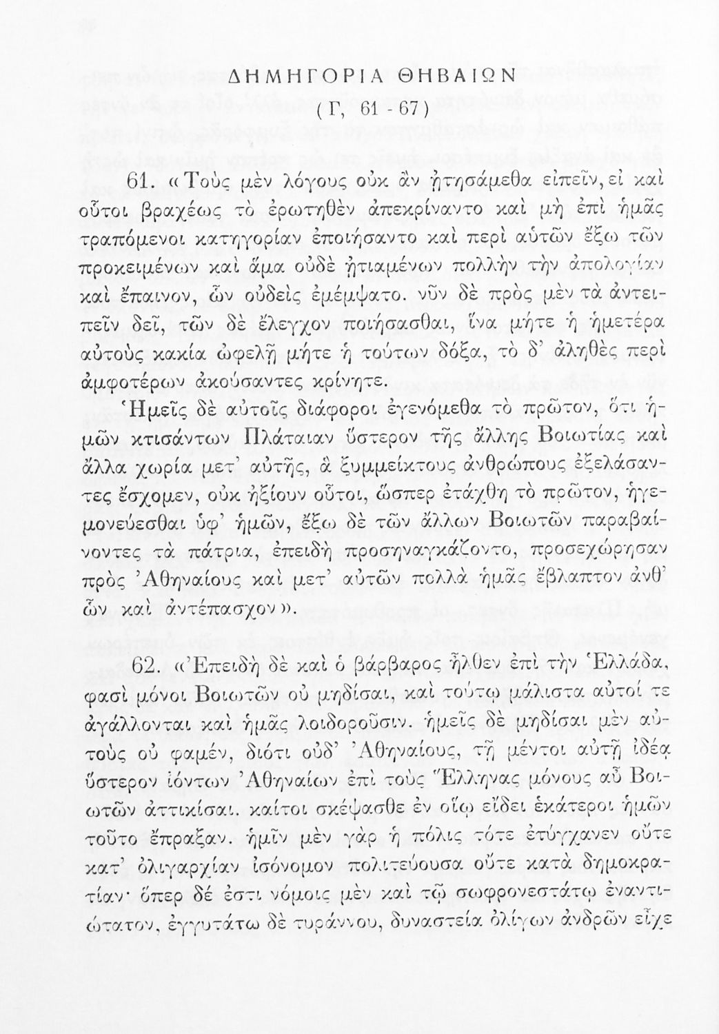 Σχολικό εγχειρίδιο Αρχαίων Ελληνικών Δ΄ Γυμνασίου που περιέχει εισαγωγή στη ζωή και το έργο του Θουκυδίδη, αποσπάσματα από τα Πλαταιϊκά, τα Λεσβιακά και τον Επιτάφιο του Περικλή και ερμηνευτικές σημειώσεις. Φέρει το σύμβολο της δικτατορίας.