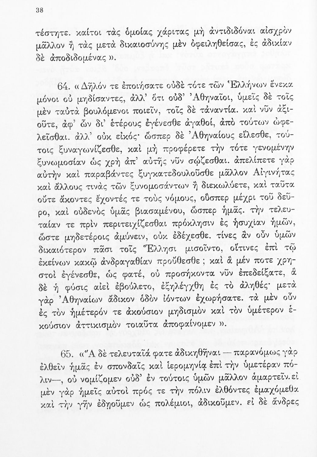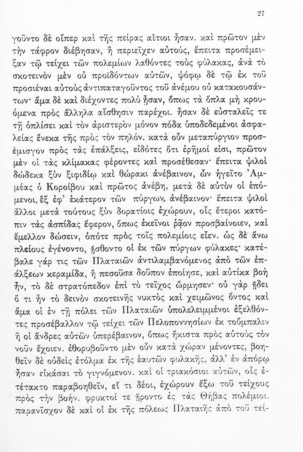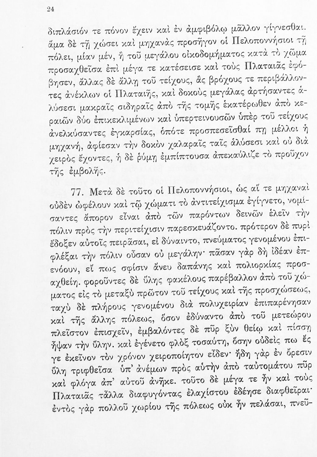 Σχολικό εγχειρίδιο Αρχαίων Ελληνικών Δ΄ Γυμνασίου που περιέχει εισαγωγή στη ζωή και το έργο του Θουκυδίδη, αποσπάσματα από τα Πλαταιϊκά, τα Λεσβιακά και τον Επιτάφιο του Περικλή και ερμηνευτικές σημειώσεις. Φέρει το σύμβολο της δικτατορίας.