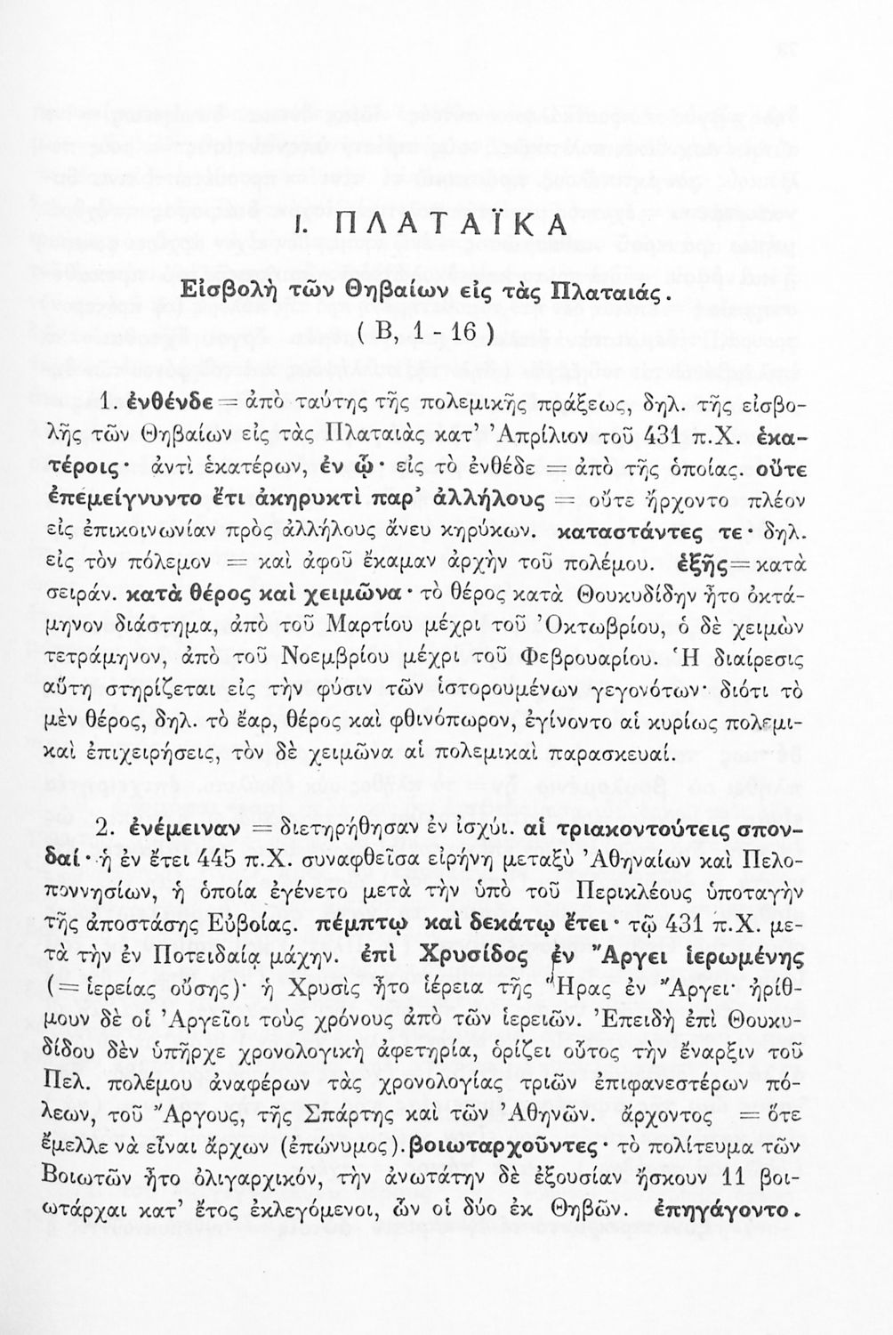 Σχολικό εγχειρίδιο Αρχαίων Ελληνικών για τις Δ΄, Ε΄ και ΣΤ΄ Γυμνασίου παλαιού τύπου που περιλαμβάνει σύντομο βιογραφικό σημείωμα του Θουκυδίδη, περιγραφή του ιστορικού πλαισίου, αποσπάσματα από τα Πλαταϊκά, τα
