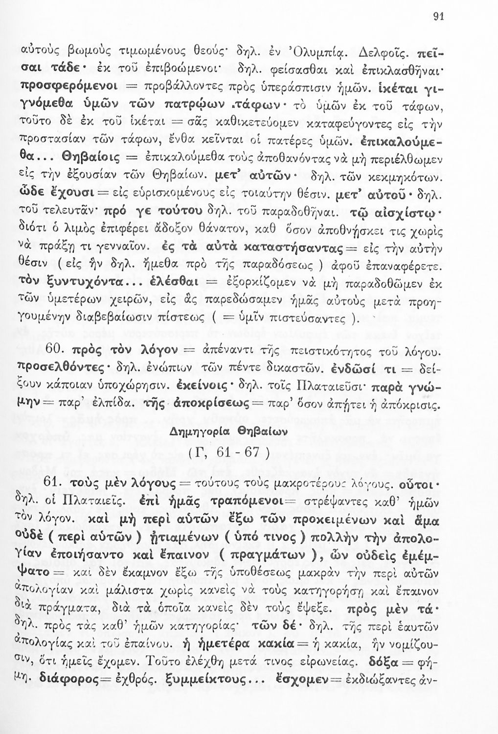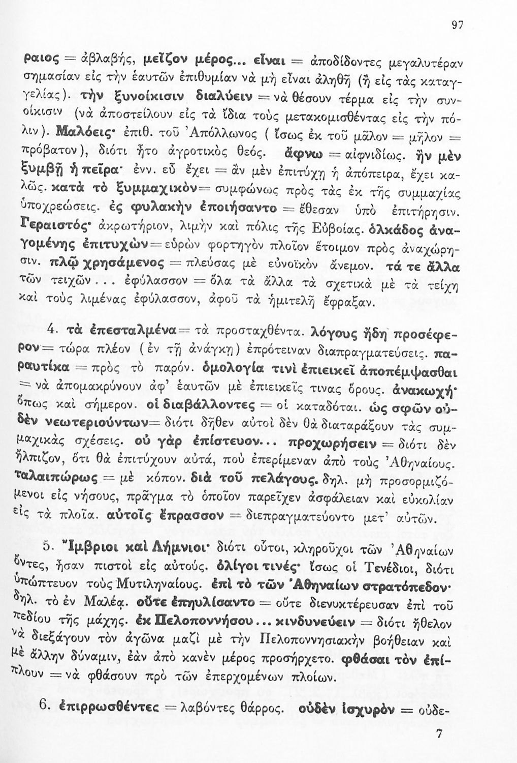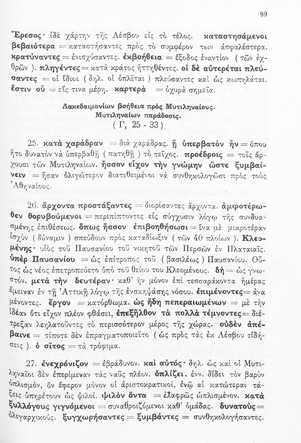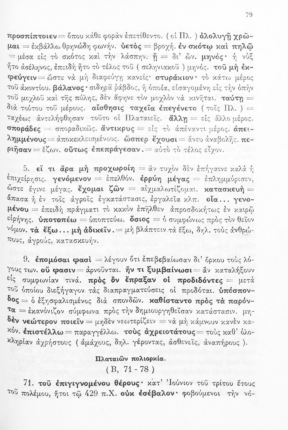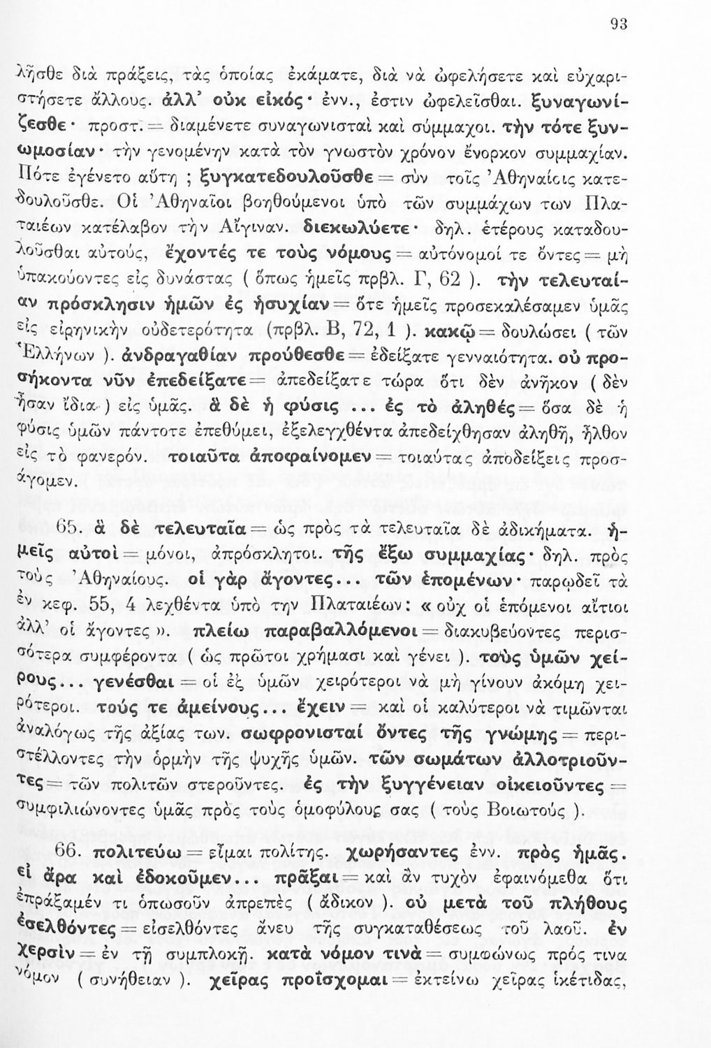 Σχολικό εγχειρίδιο Αρχαίων Ελληνικών Δ΄ Γυμνασίου που περιέχει εισαγωγή στη ζωή και το έργο του Θουκυδίδη, αποσπάσματα από τα Πλαταιϊκά, τα Λεσβιακά και τον Επιτάφιο του Περικλή και ερμηνευτικές σημειώσεις. Φέρει το σύμβολο της δικτατορίας.