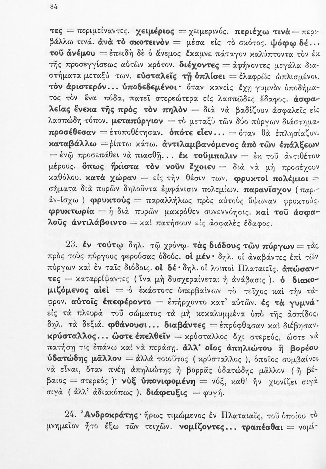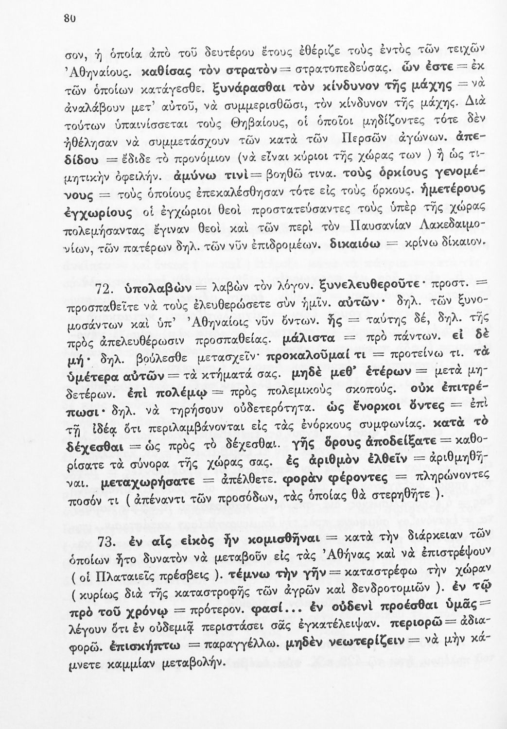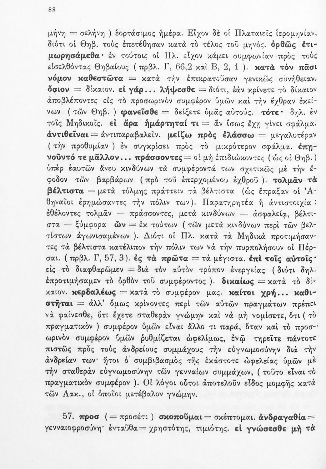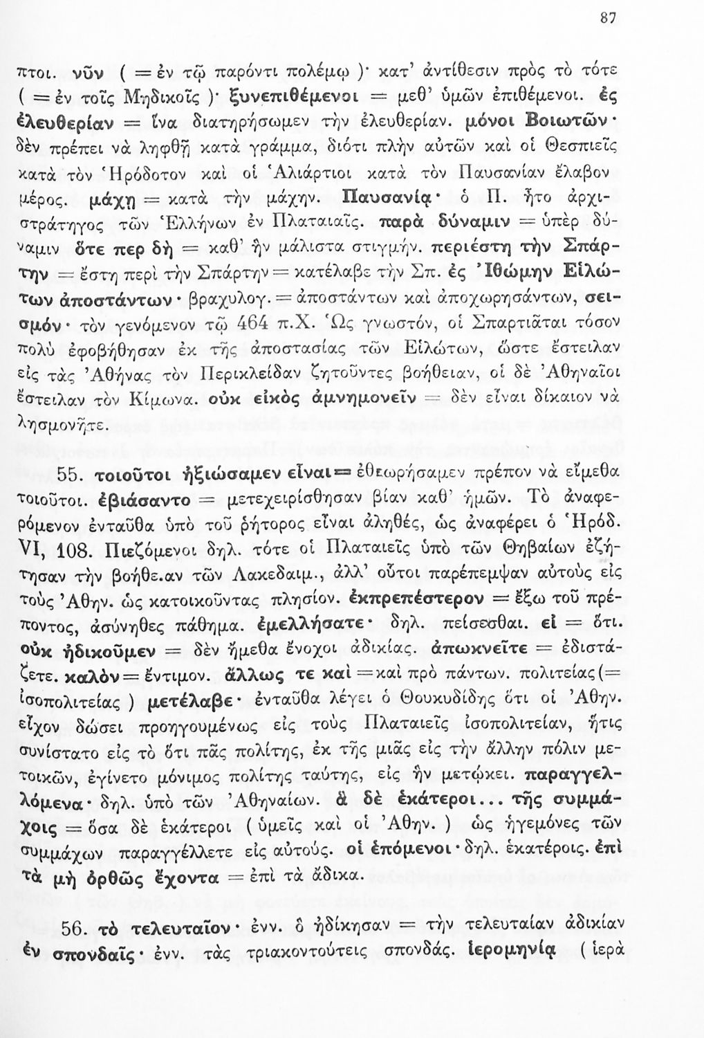 Σχολικό εγχειρίδιο Αρχαίων Ελληνικών Δ΄ Γυμνασίου που περιέχει εισαγωγή στη ζωή και το έργο του Θουκυδίδη, αποσπάσματα από τα Πλαταιϊκά, τα Λεσβιακά και τον Επιτάφιο του Περικλή και ερμηνευτικές σημειώσεις. Φέρει το σύμβολο της δικτατορίας.