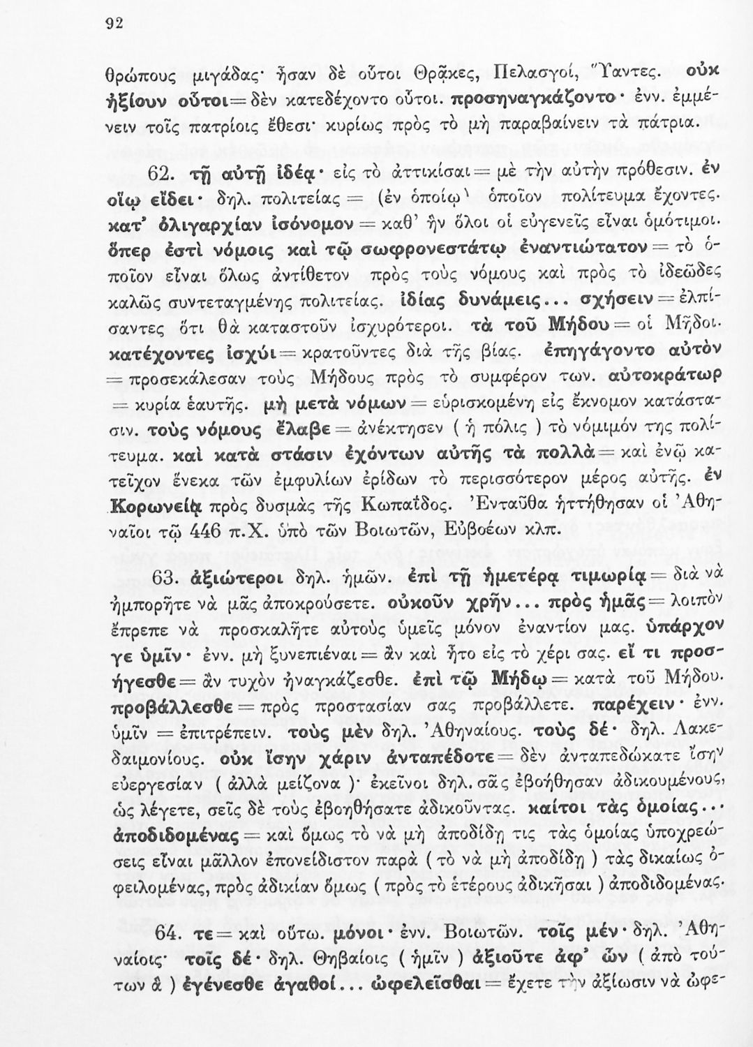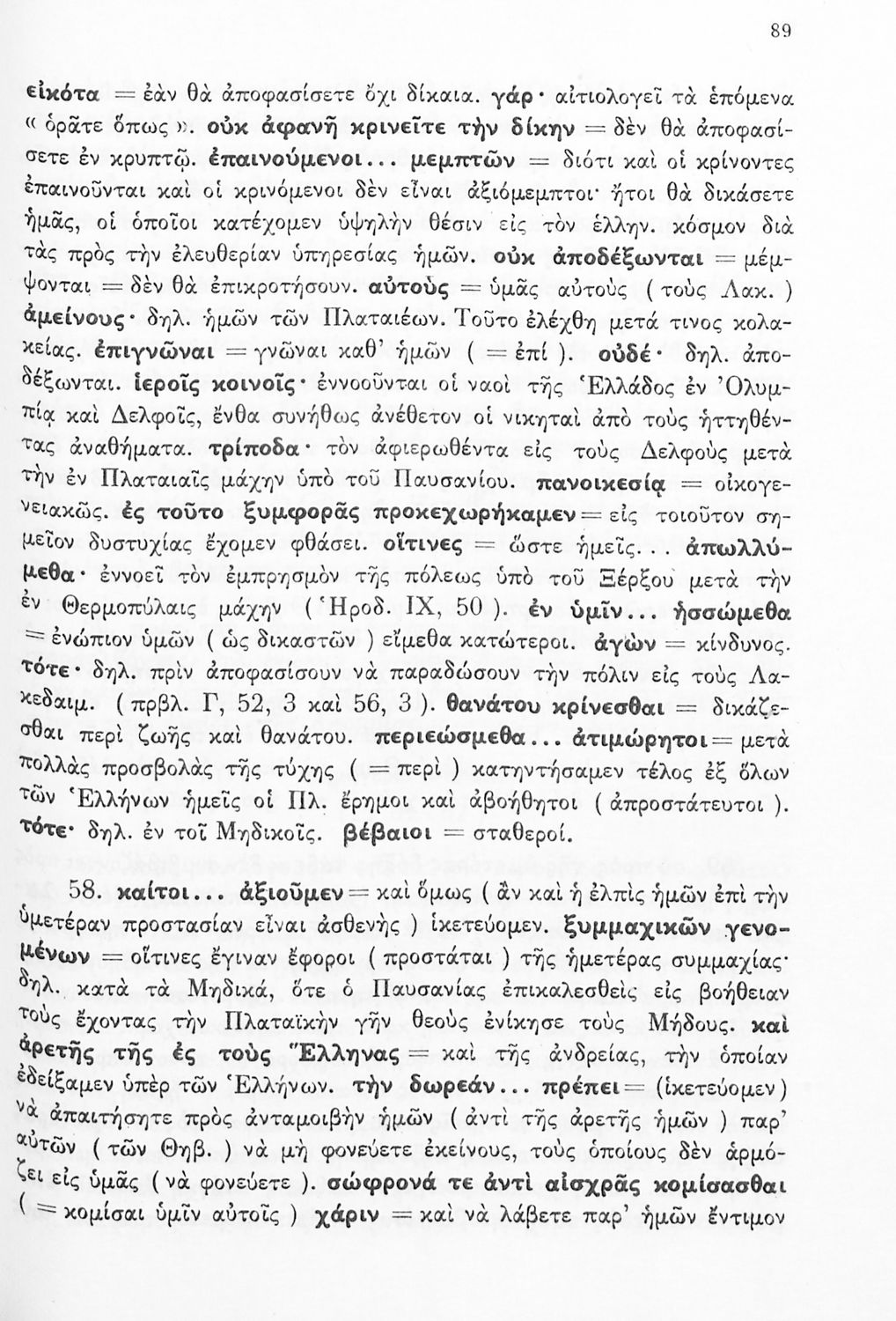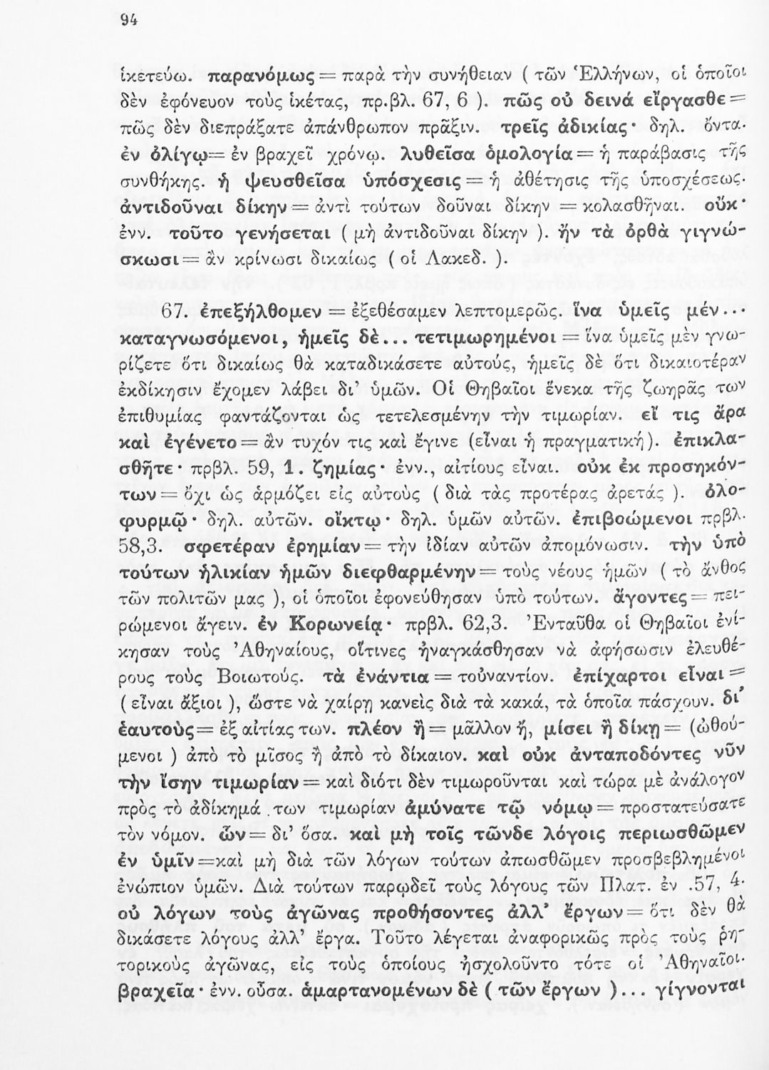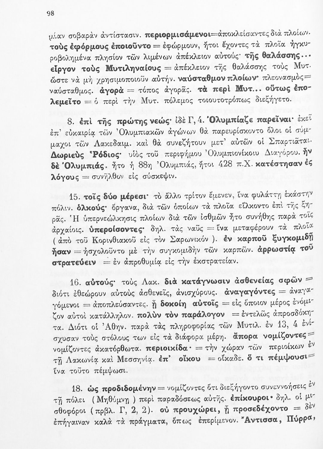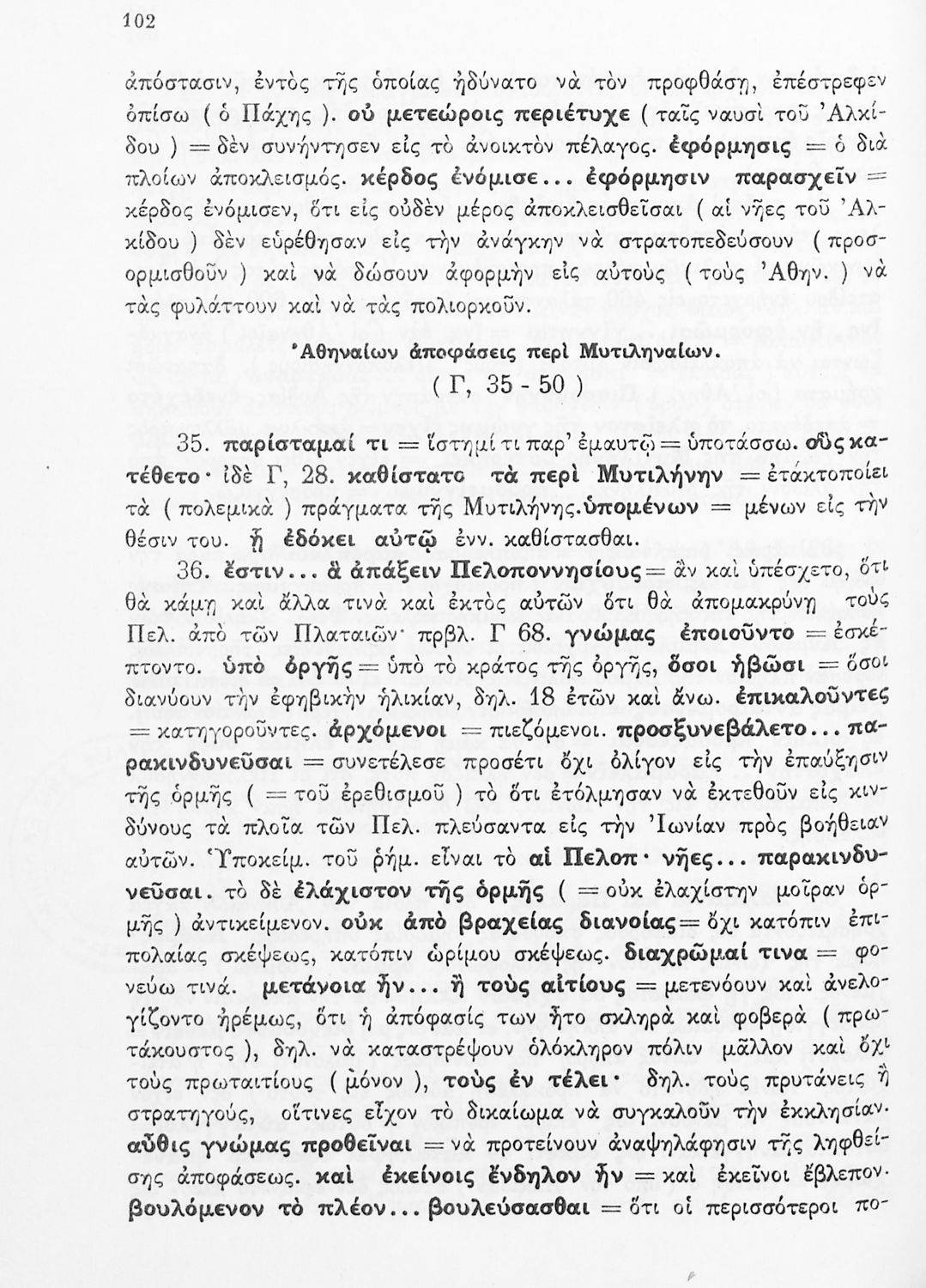Σχολικό εγχειρίδιο Αρχαίων Ελληνικών Δ΄ Γυμνασίου που περιέχει εισαγωγή στη ζωή και το έργο του Θουκυδίδη, αποσπάσματα από τα Πλαταιϊκά, τα Λεσβιακά και τον Επιτάφιο του Περικλή και ερμηνευτικές σημειώσεις. Φέρει το σύμβολο της δικτατορίας.