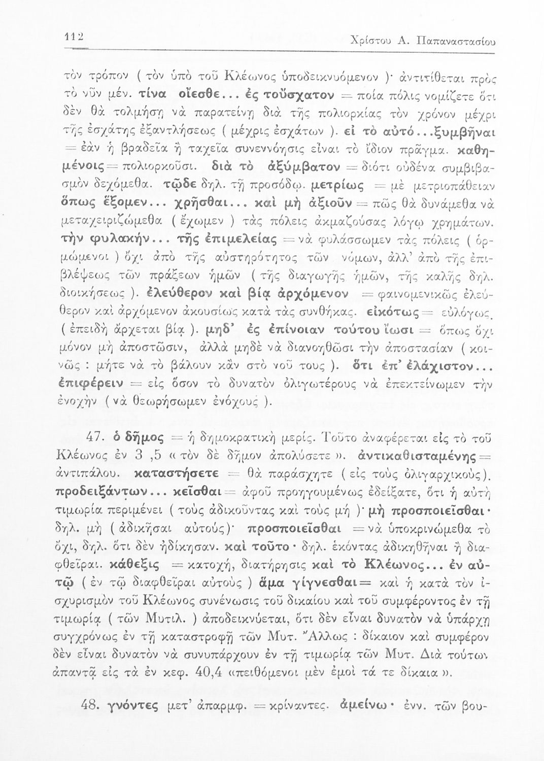 Θουκυδίδης, Χρίστος Παπαναστασίου (σχόλια)