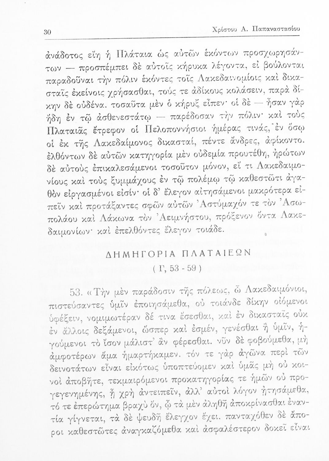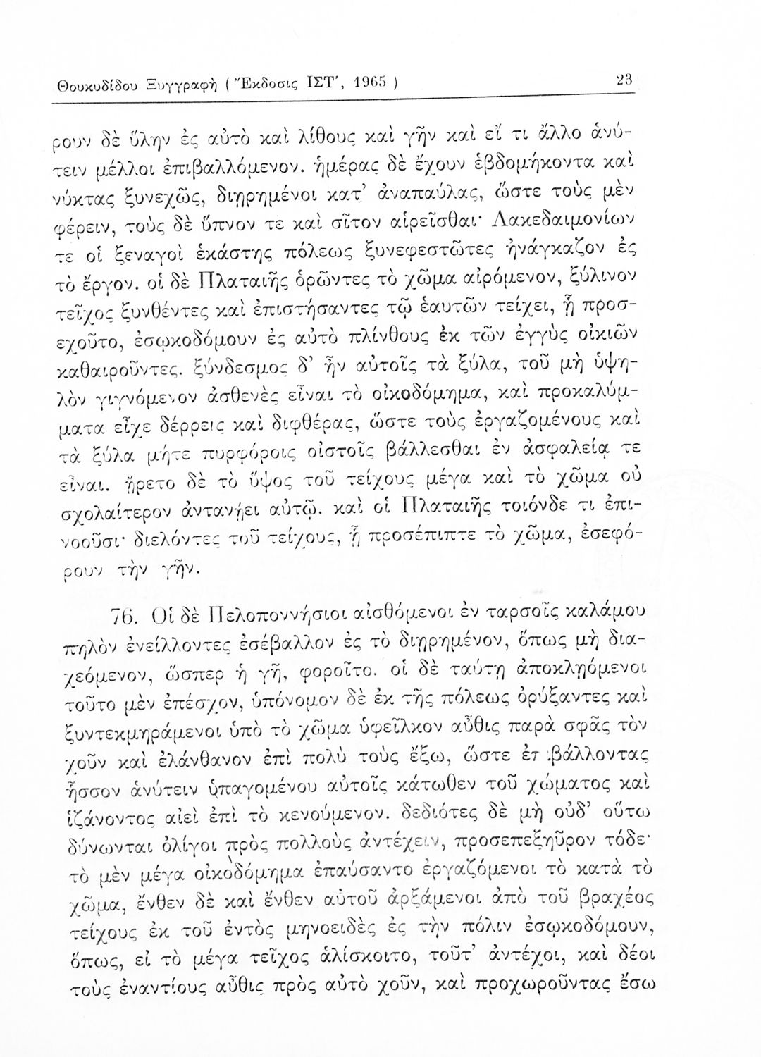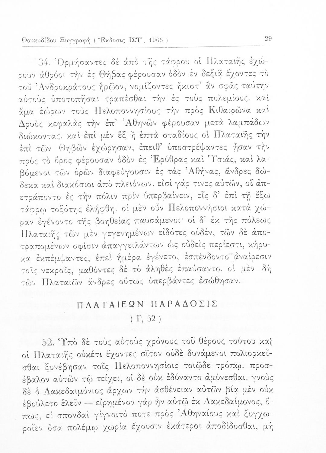 Βαθμίδα εκπαίδευσης: Δευτεροβάθμια Τάξη: Δ' Γυμνασίου Μάθημα: Αρχαία Ελληνικά Γλώσσα: Καθαρεύουσα Παρουσίαση περιεχομένου: Σχολικό εγχειρίδιο Αρχαίων Ελληνικών Δ΄ Γυμνασίου που περιέχει εισαγωγή στη ζωή και το έργο του Θουκυδίδη, αποσπάσματα από τα Πλαταιϊκά, τα Λεσβιακά και τον Επιτάφιο του Περικλή και ερμηνευτικές σημειώσεις |