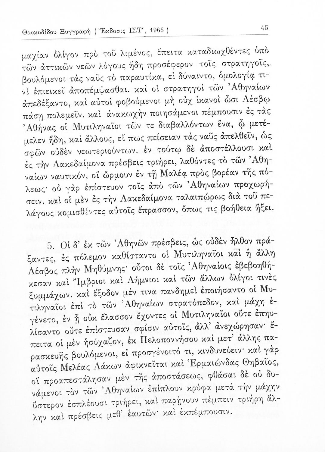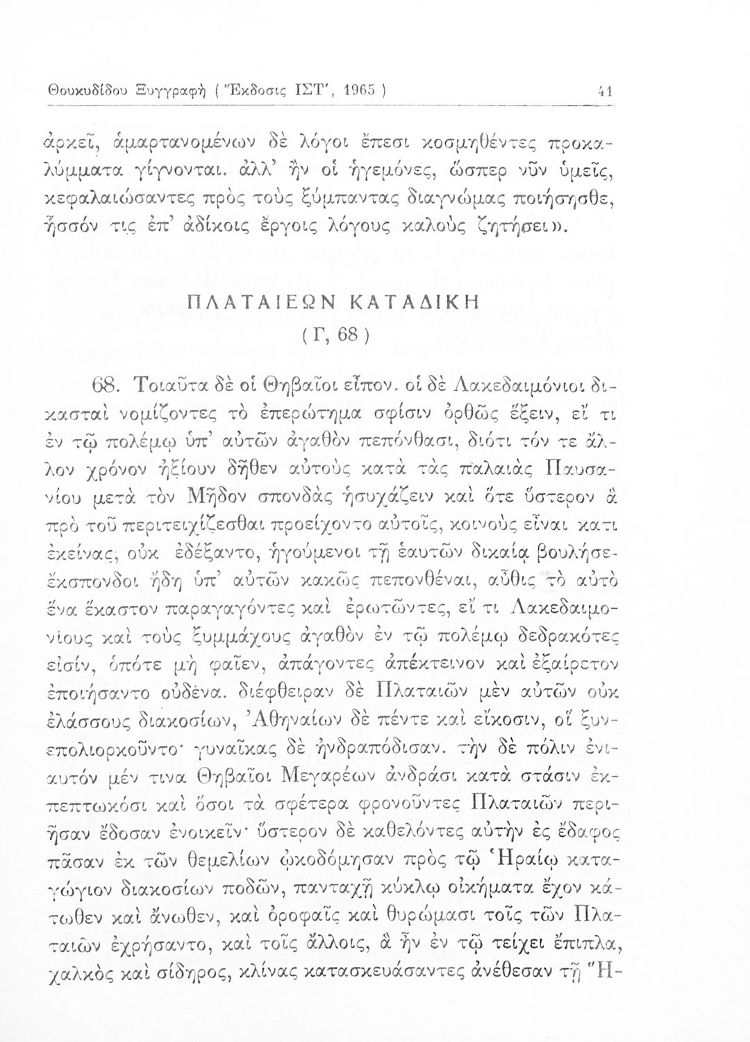 Σχολικό εγχειρίδιο Αρχαίων Ελληνικών για τις Δ΄, Ε΄ και ΣΤ΄ Γυμνασίου παλαιού τύπου που περιλαμβάνει σύντομο βιογραφικό σημείωμα του Θουκυδίδη, περιγραφή του ιστορικού πλαισίου, αποσπάσματα από τα Πλαταϊκά, τα