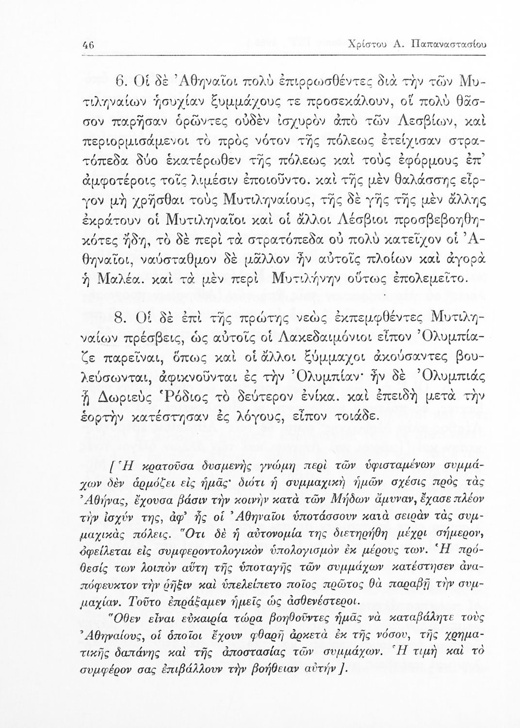 Θουκυδίδης, Χρίστος Παπαναστασίου (σχόλια)