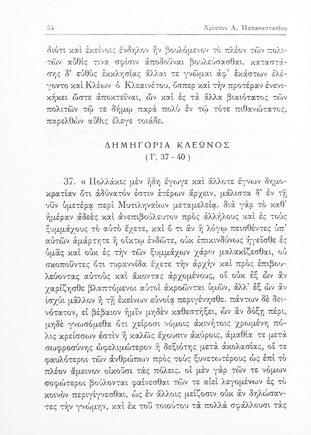 Θουκυδίδης, Χρίστος Παπαναστασίου (εισαγωγή, ερμηνευτικές σημειώσεις)
