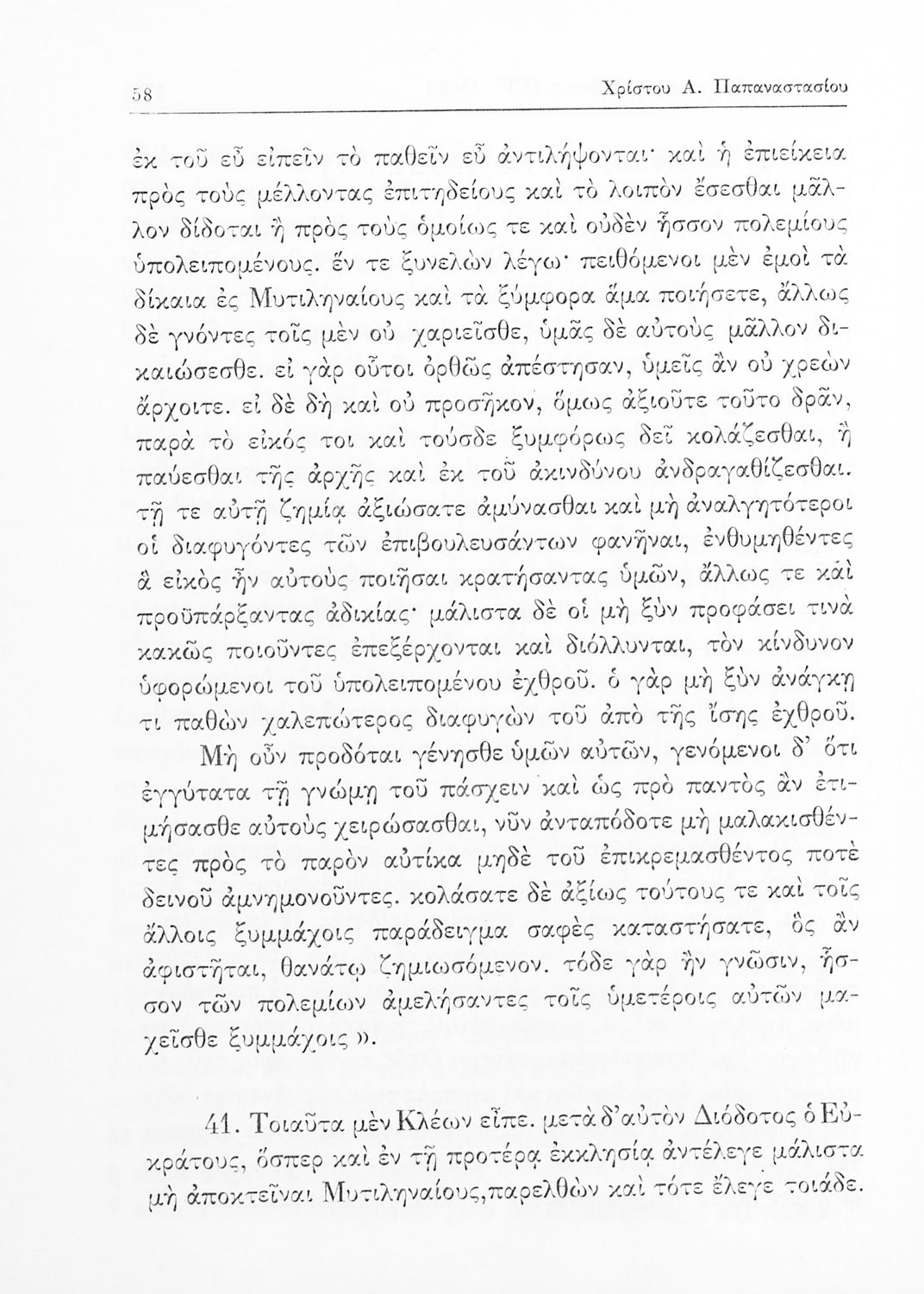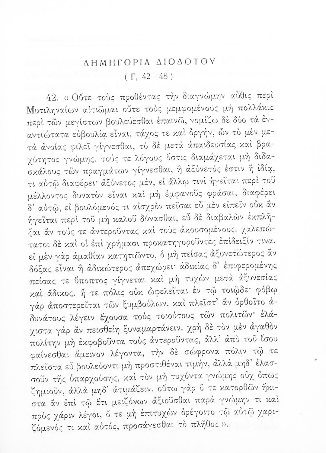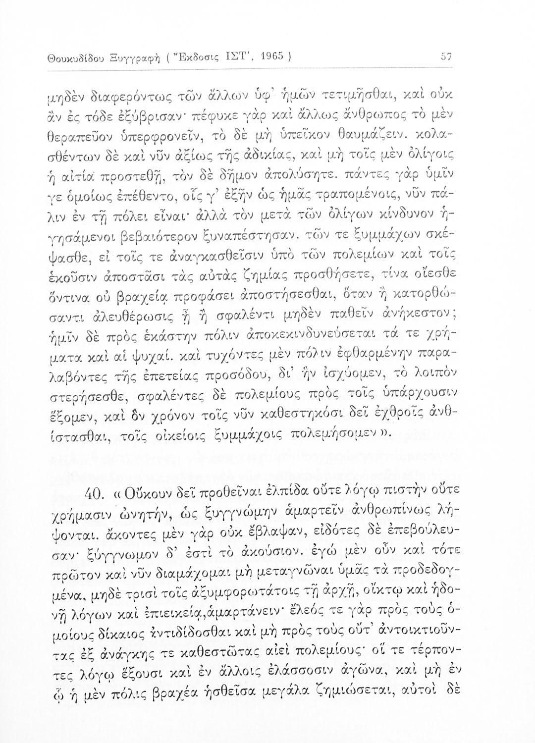 Σχολικό εγχειρίδιο Αρχαίων Ελληνικών Δ΄ Γυμνασίου που περιέχει εισαγωγή στη ζωή και το έργο του Θουκυδίδη, αποσπάσματα από τα Πλαταιϊκά, τα Λεσβιακά και τον Επιτάφιο του Περικλή και ερμηνευτικές σημειώσεις
