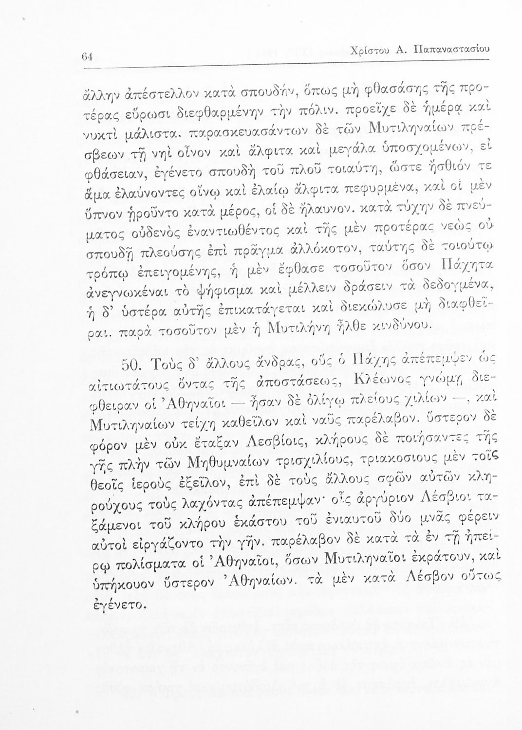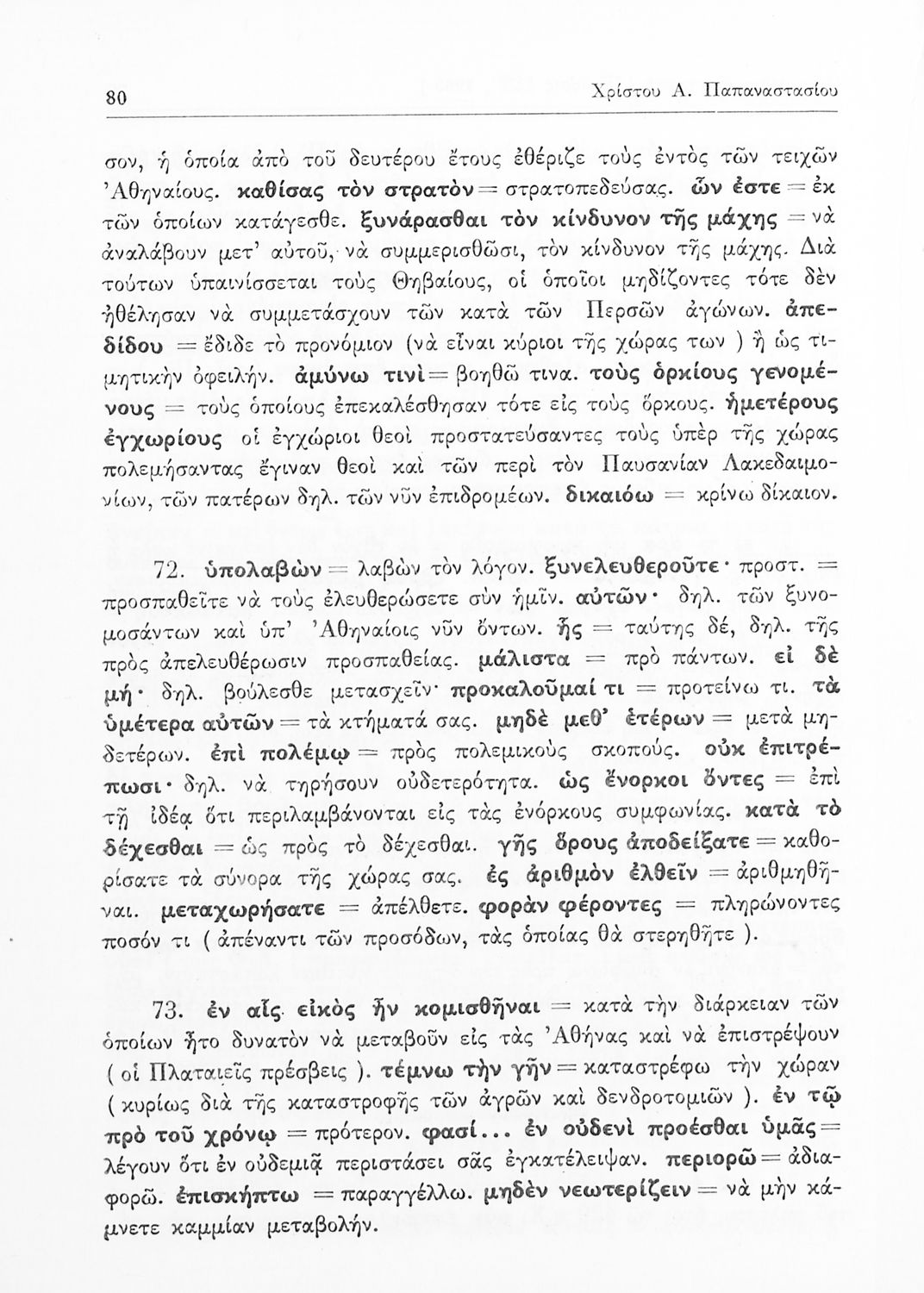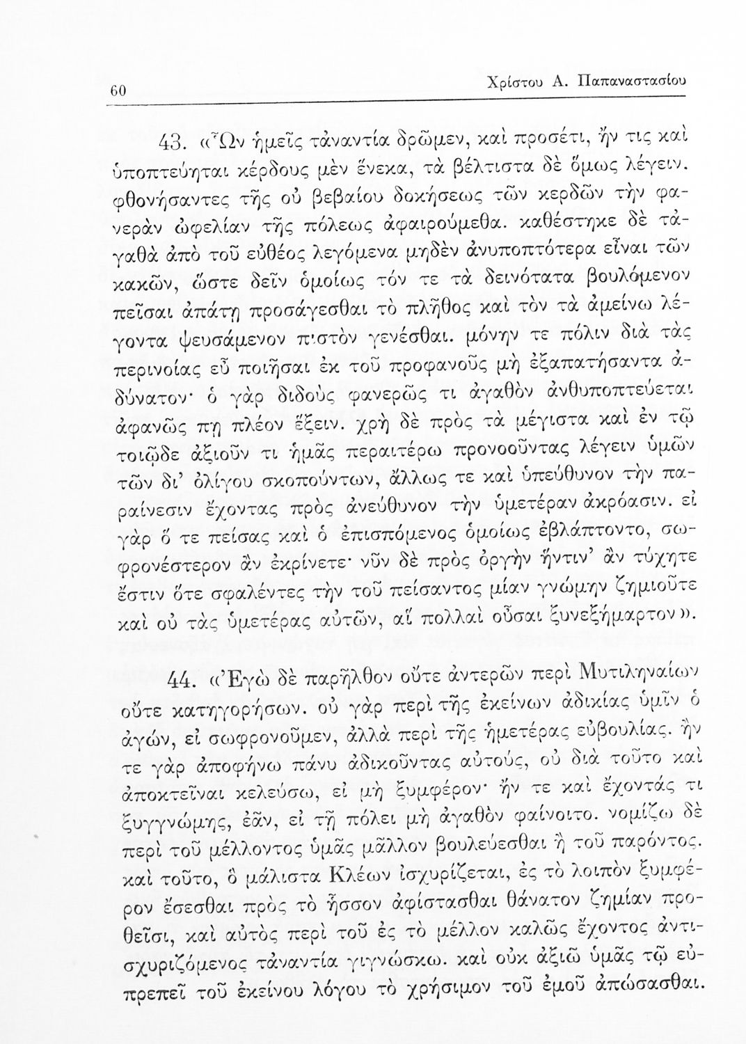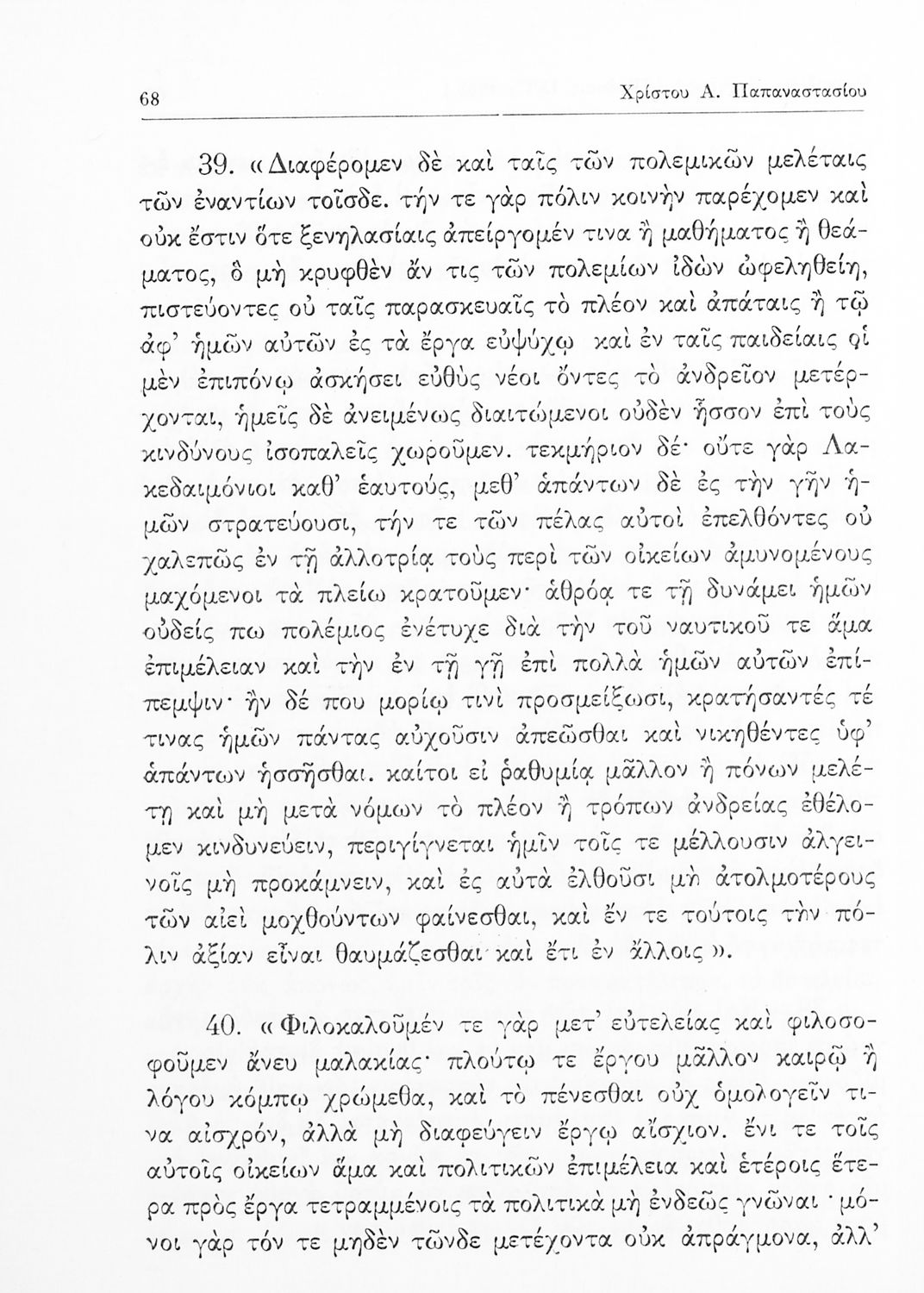 Βαθμίδα εκπαίδευσης: Δευτεροβάθμια Τάξη: Δ' Γυμνασίου Μάθημα: Αρχαία Ελληνικά Γλώσσα: Καθαρεύουσα Παρουσίαση περιεχομένου: Σχολικό εγχειρίδιο Αρχαίων Ελληνικών Δ΄ Γυμνασίου που περιέχει εισαγωγή στη ζωή και το έργο του Θουκυδίδη, αποσπάσματα από τα Πλαταιϊκά, τα Λεσβιακά και τον Επιτάφιο του Περικλή και ερμηνευτικές σημειώσεις |