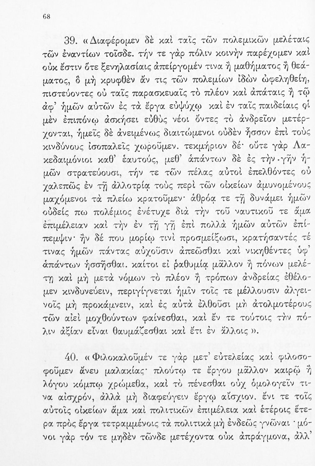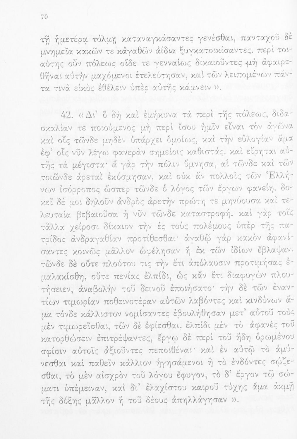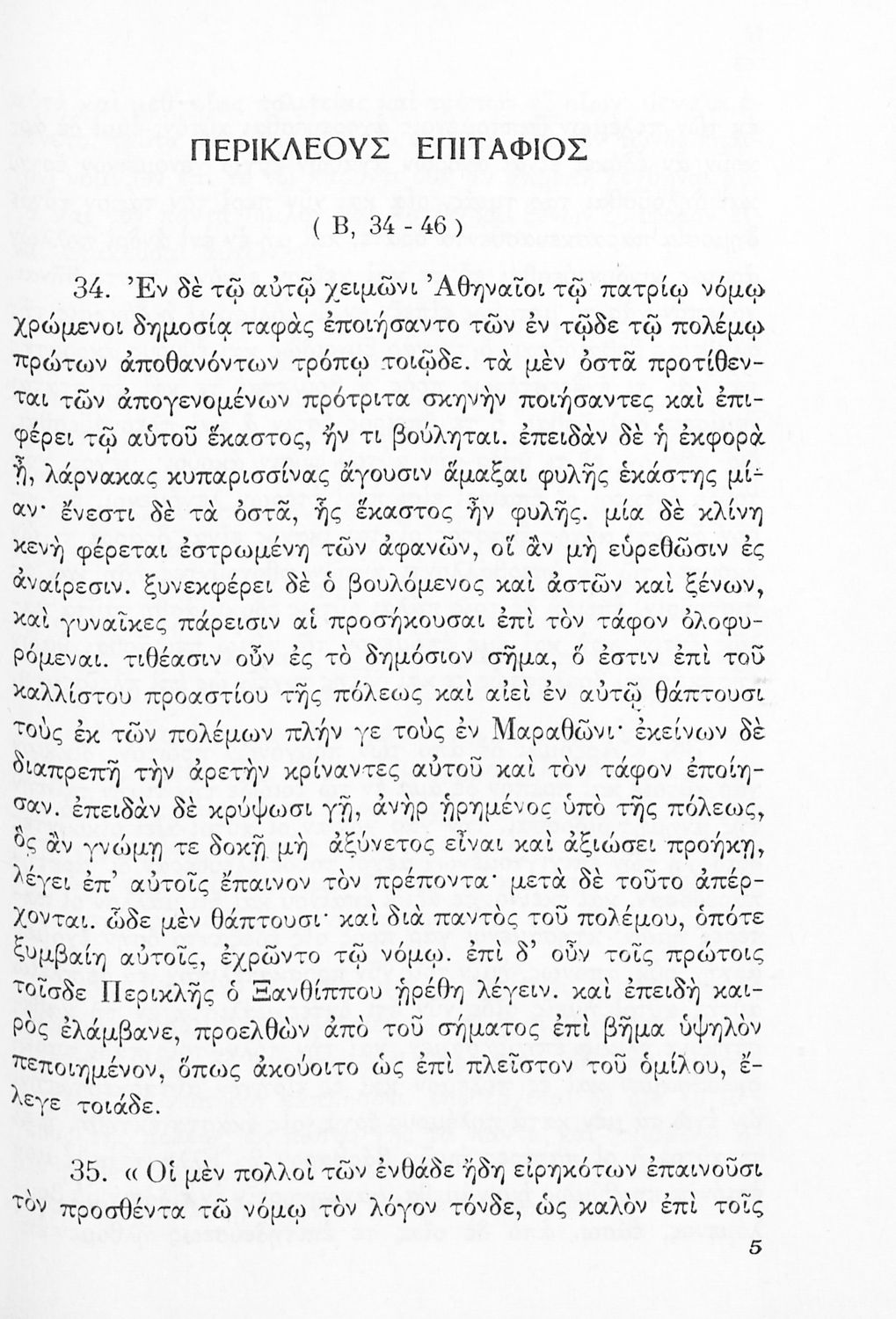 Σχολικό εγχειρίδιο Αρχαίων Ελληνικών Δ΄, Ε΄ και ΣΤ΄ Γυμνασίου που περιέχει εισαγωγή στη ζωή και το έργο του Θουκυδίδη, αποσπάσματα από τα Πλαταιϊκά, τα Λεσβιακά και τον Επιτάφιο του Περικλή και ερμηνευτικές σημειώσεις. Φέρει το σύμβολο της δικτατορίας.