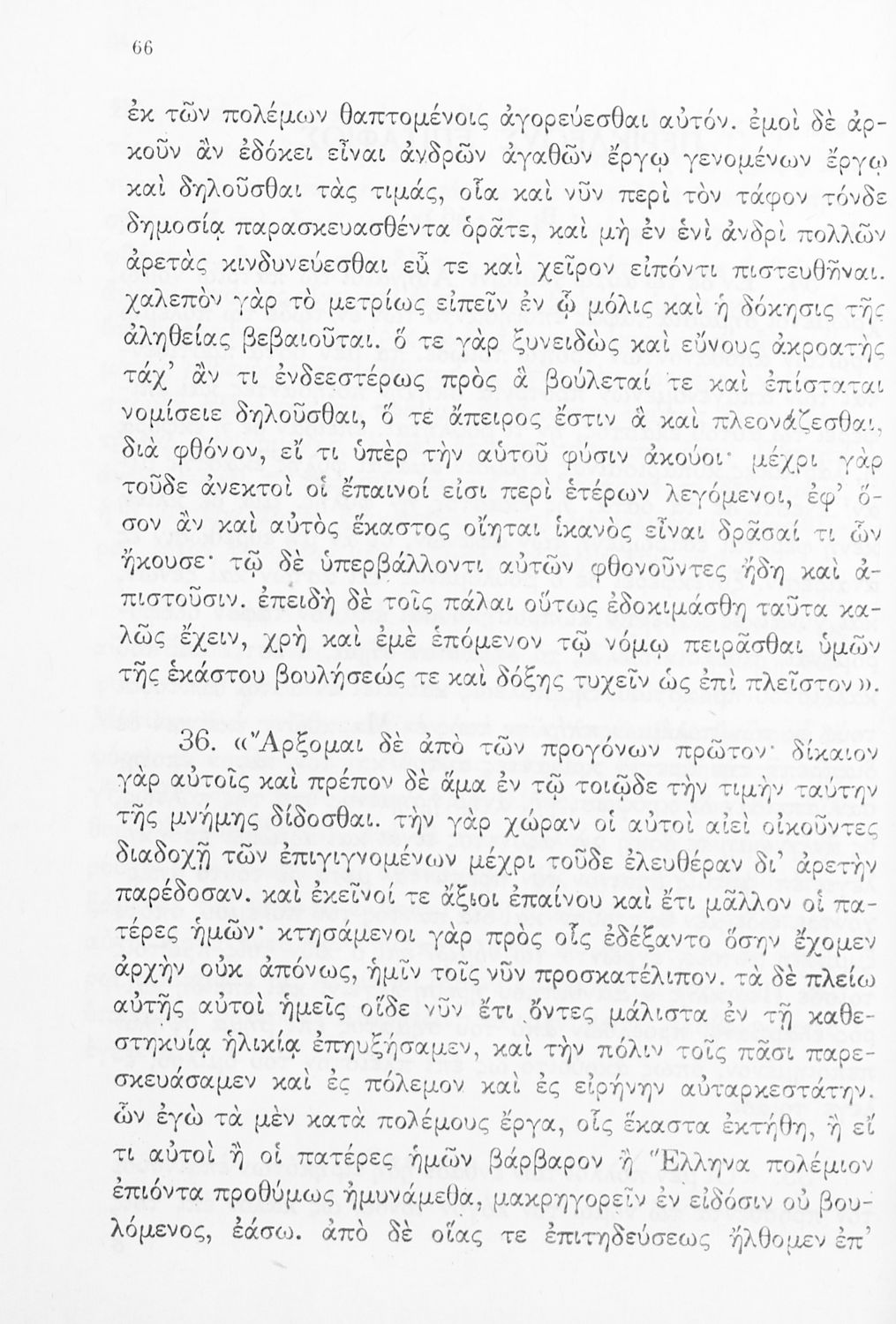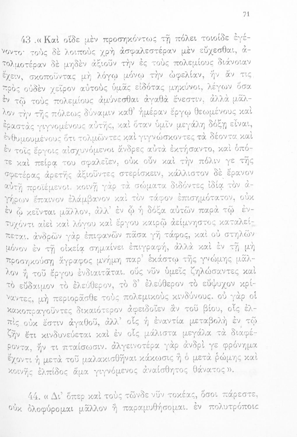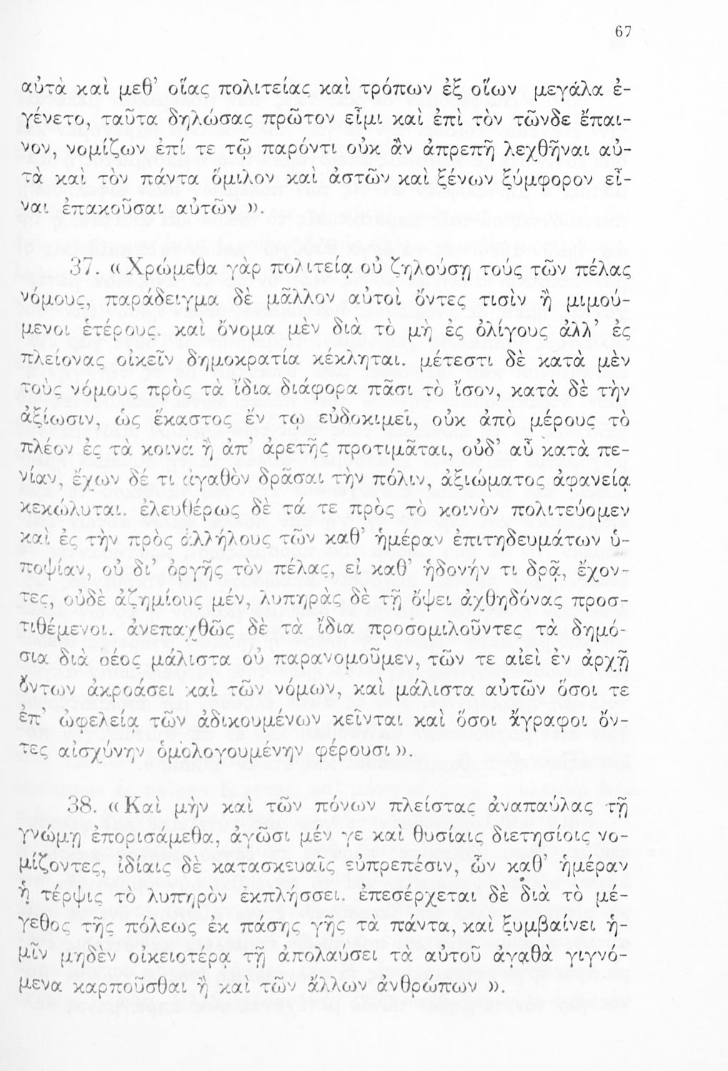 Σχολικό εγχειρίδιο Αρχαίων Ελληνικών Δ΄, Ε΄ και ΣΤ΄ Γυμνασίου που περιέχει εισαγωγή στη ζωή και το έργο του Θουκυδίδη, αποσπάσματα από τα Πλαταιϊκά, τα Λεσβιακά και τον Επιτάφιο του Περικλή και ερμηνευτικές σημειώσεις. Φέρει το σύμβολο της δικτατορίας.