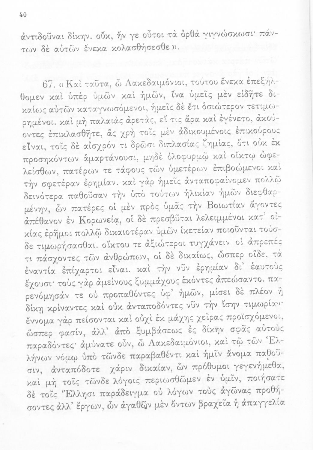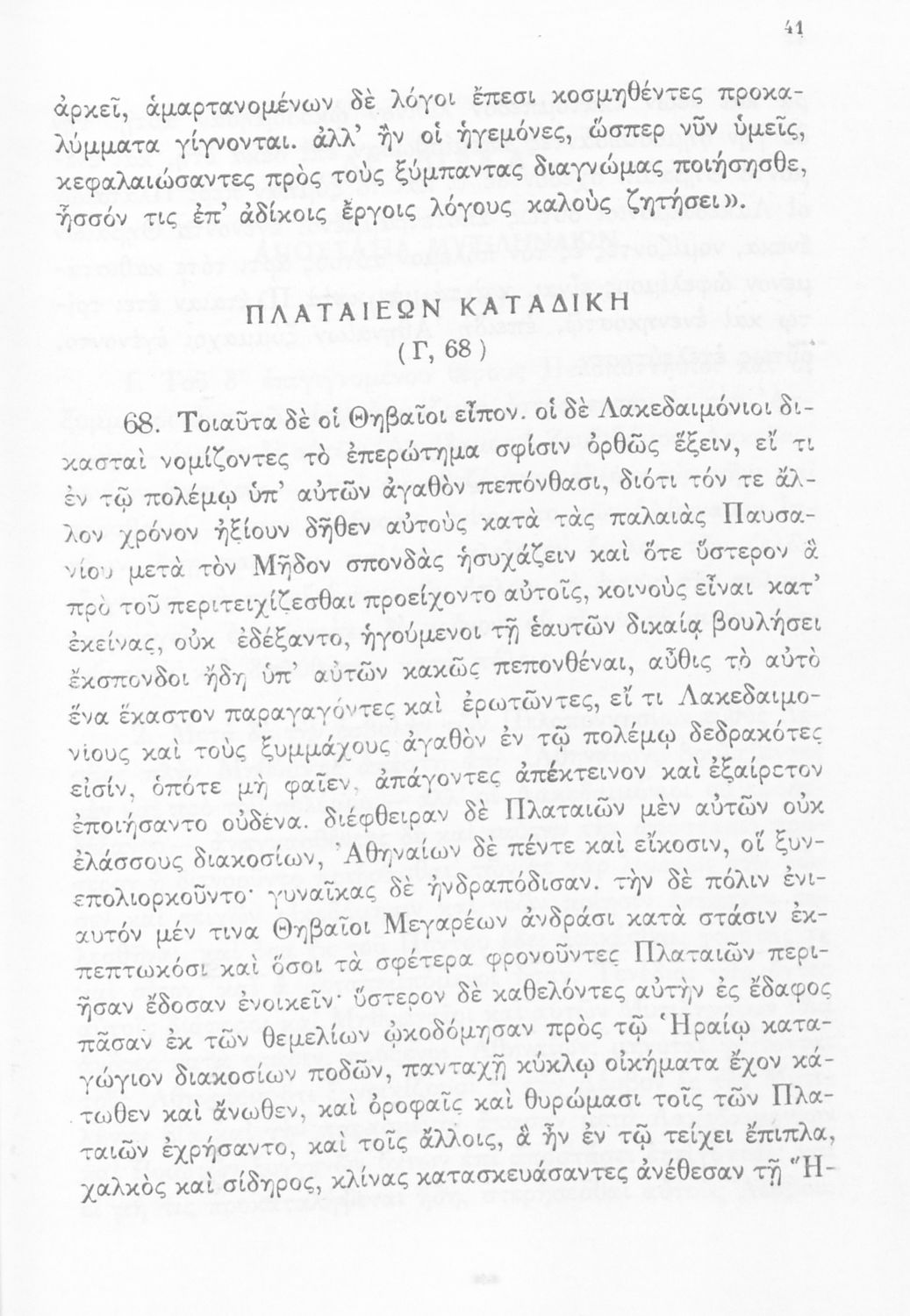 Σχολικό εγχειρίδιο Αρχαίων Ελληνικών για τις Δ΄, Ε΄ και ΣΤ΄ Γυμνασίου παλαιού τύπου που περιλαμβάνει σύντομο βιογραφικό σημείωμα του Θουκυδίδη, περιγραφή του ιστορικού πλαισίου, αποσπάσματα από τα Πλαταϊκά, τα