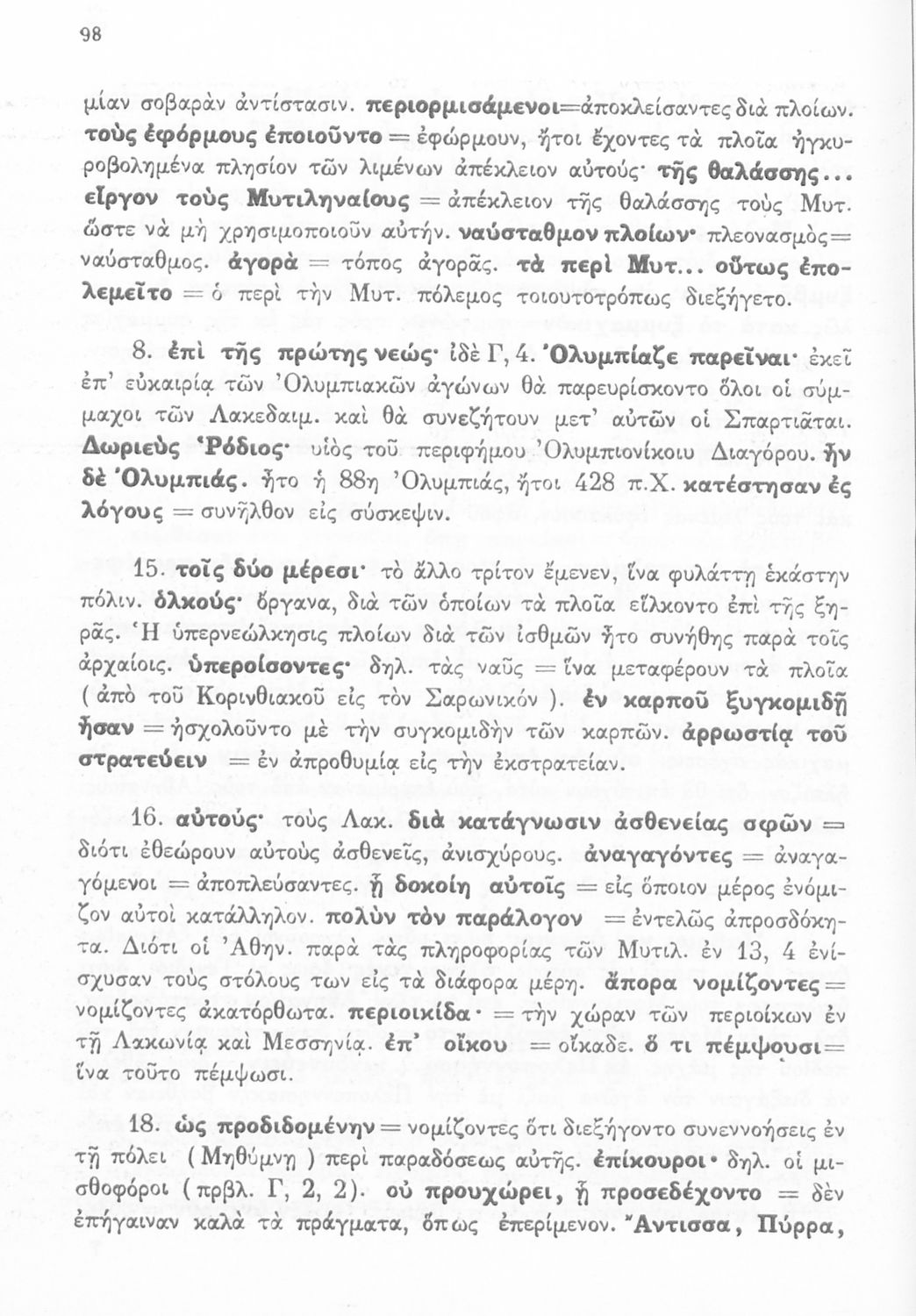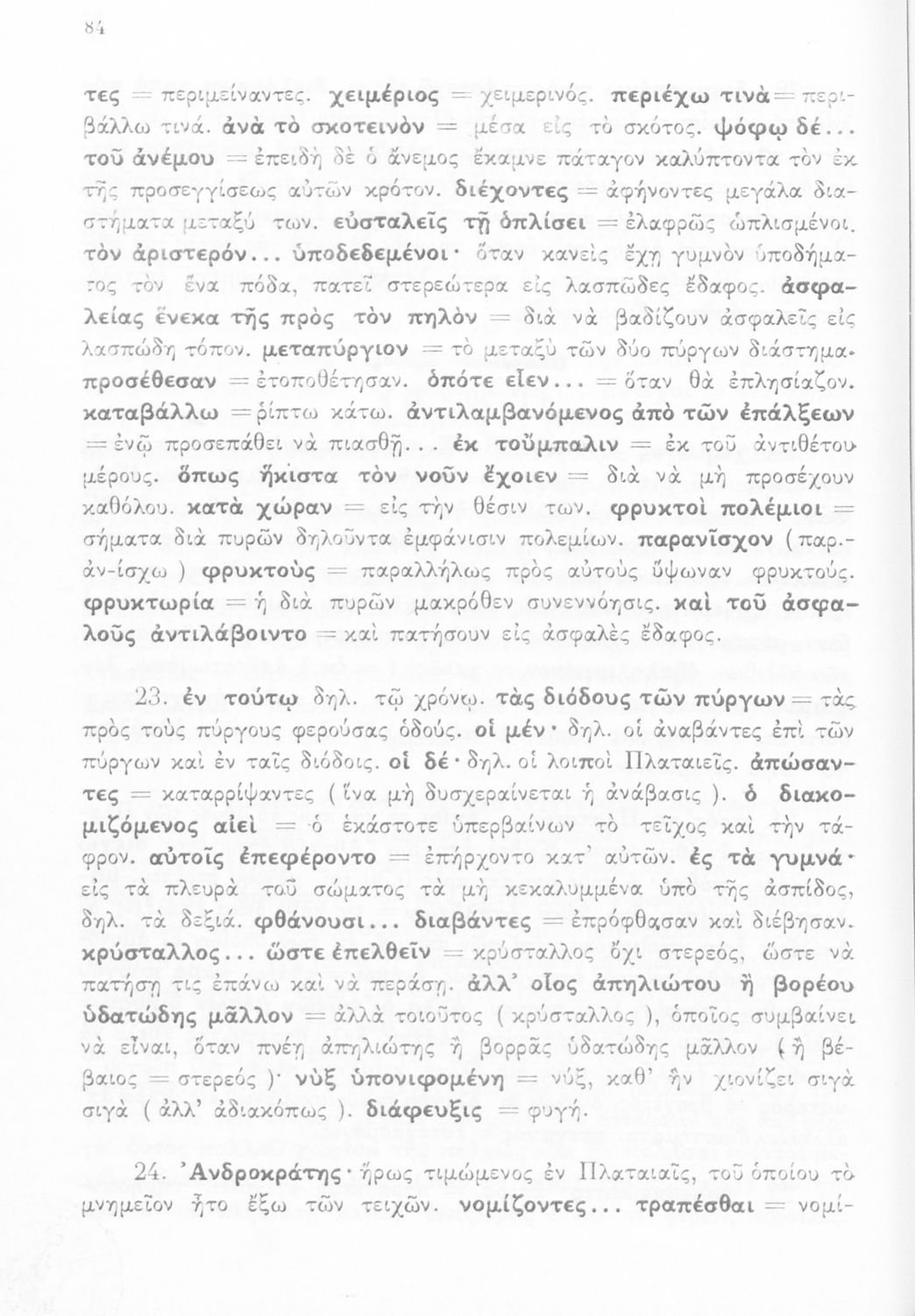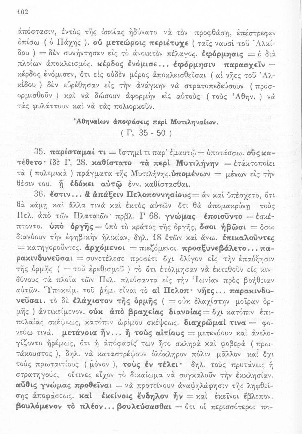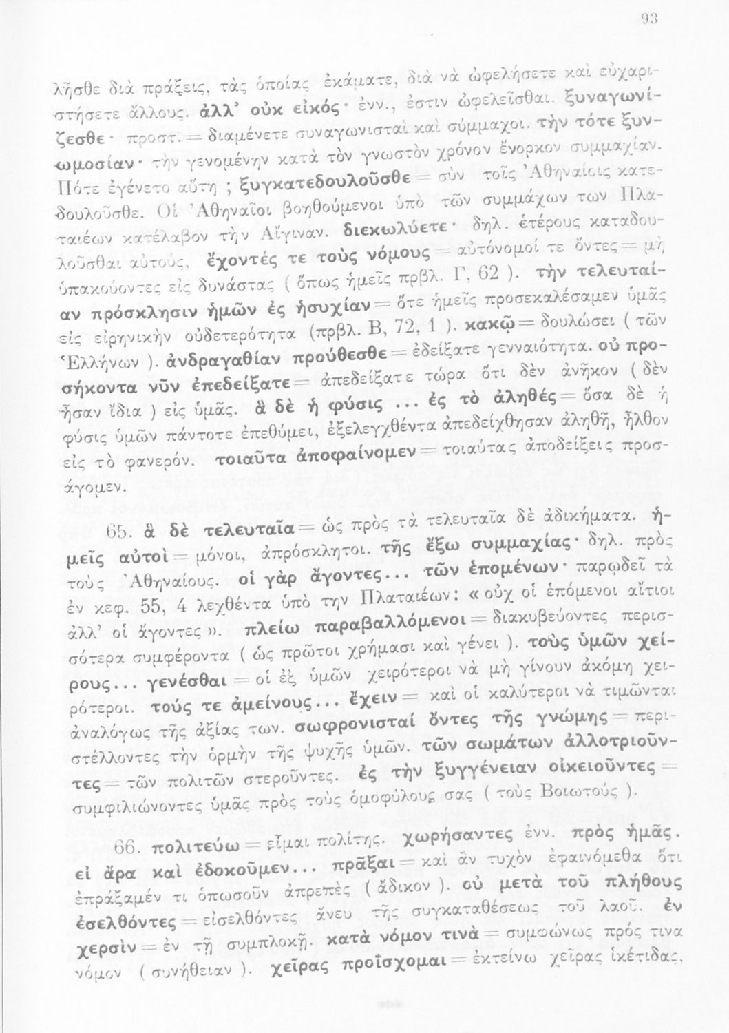 Σχολικό εγχειρίδιο Αρχαίων Ελληνικών Δ΄, Ε΄ και ΣΤ΄ Γυμνασίου που περιέχει εισαγωγή στη ζωή και το έργο του Θουκυδίδη, αποσπάσματα από τα Πλαταιϊκά, τα Λεσβιακά και τον Επιτάφιο του Περικλή και ερμηνευτικές σημειώσεις.