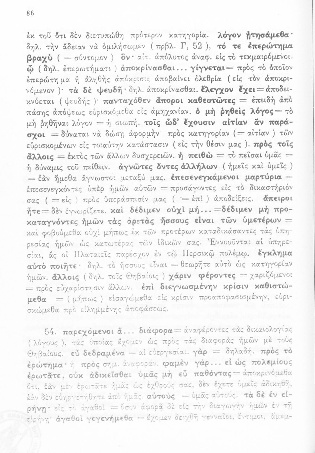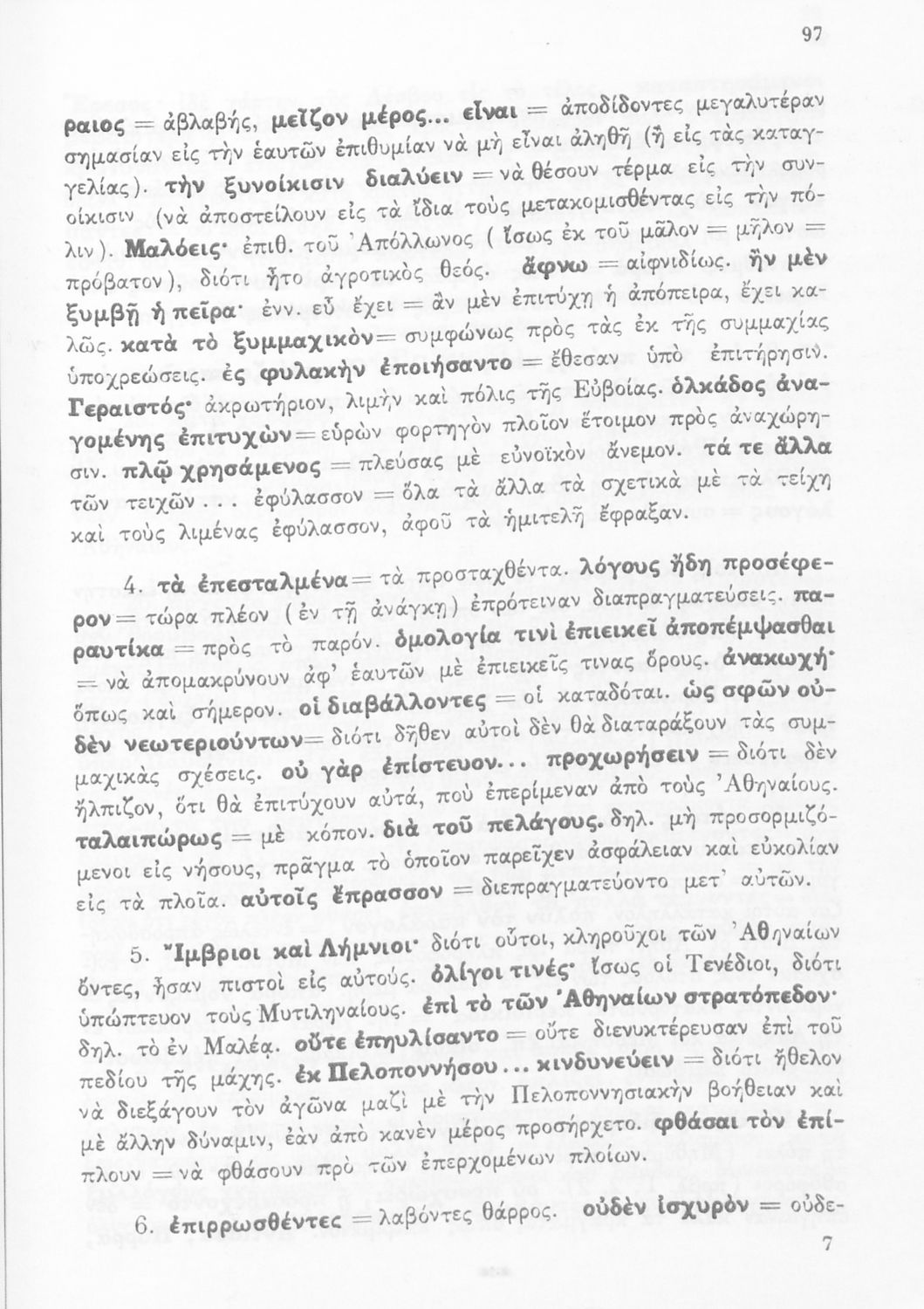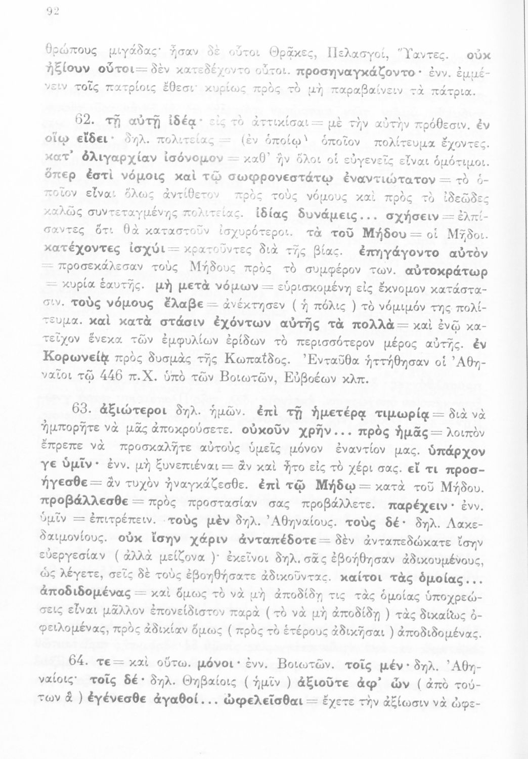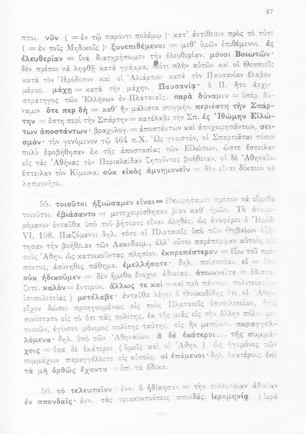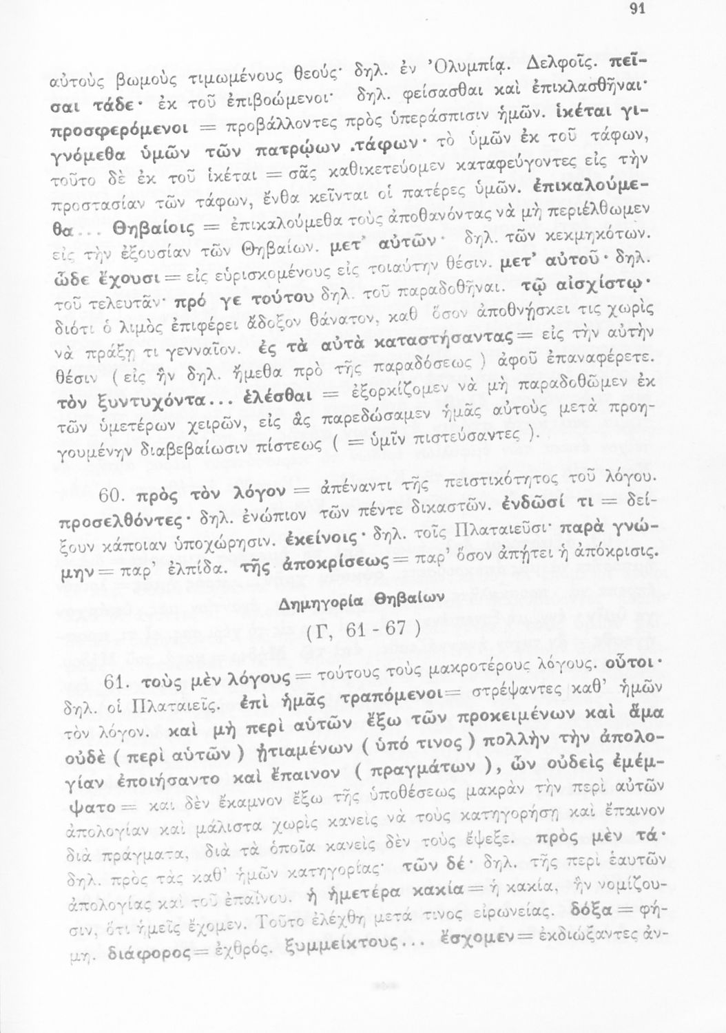 Σχολικό εγχειρίδιο Αρχαίων Ελληνικών Δ΄, Ε΄ και ΣΤ΄ Γυμνασίου που περιέχει εισαγωγή στη ζωή και το έργο του Θουκυδίδη, αποσπάσματα από τα Πλαταιϊκά, τα Λεσβιακά και τον Επιτάφιο του Περικλή και ερμηνευτικές σημειώσεις.