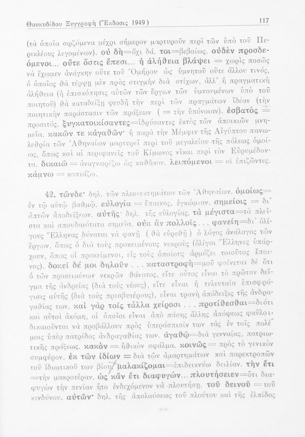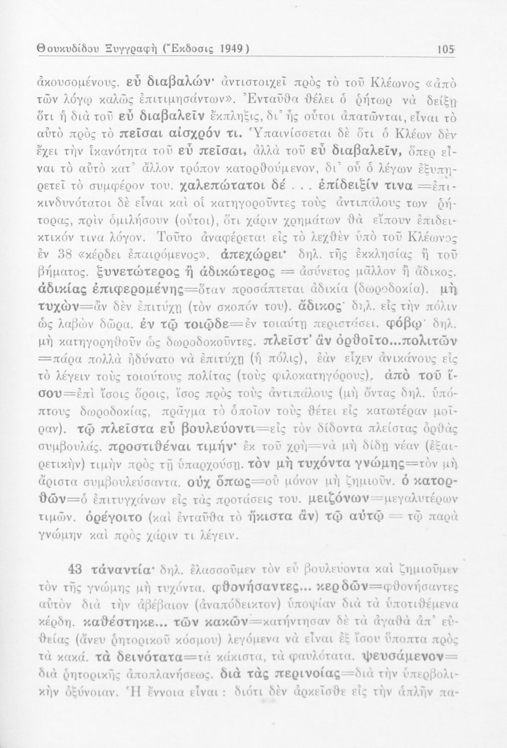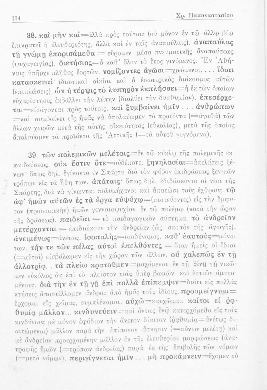 Θουκυδίδης, Χρισ. Παπαναστασίου (σχόλια)